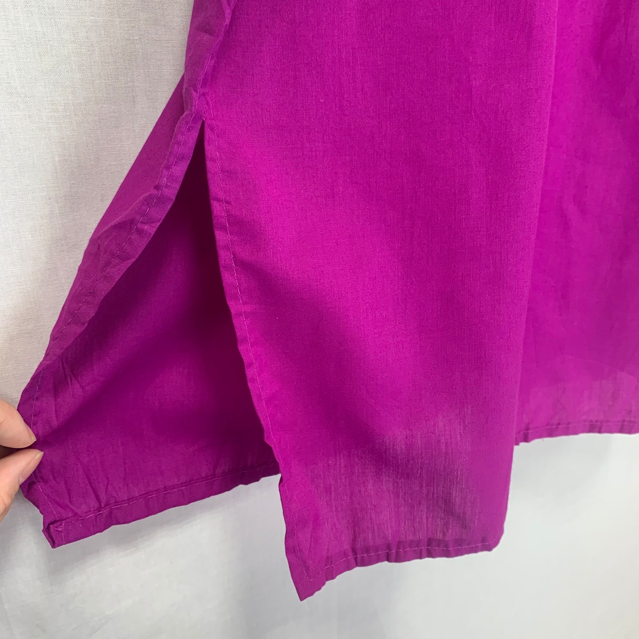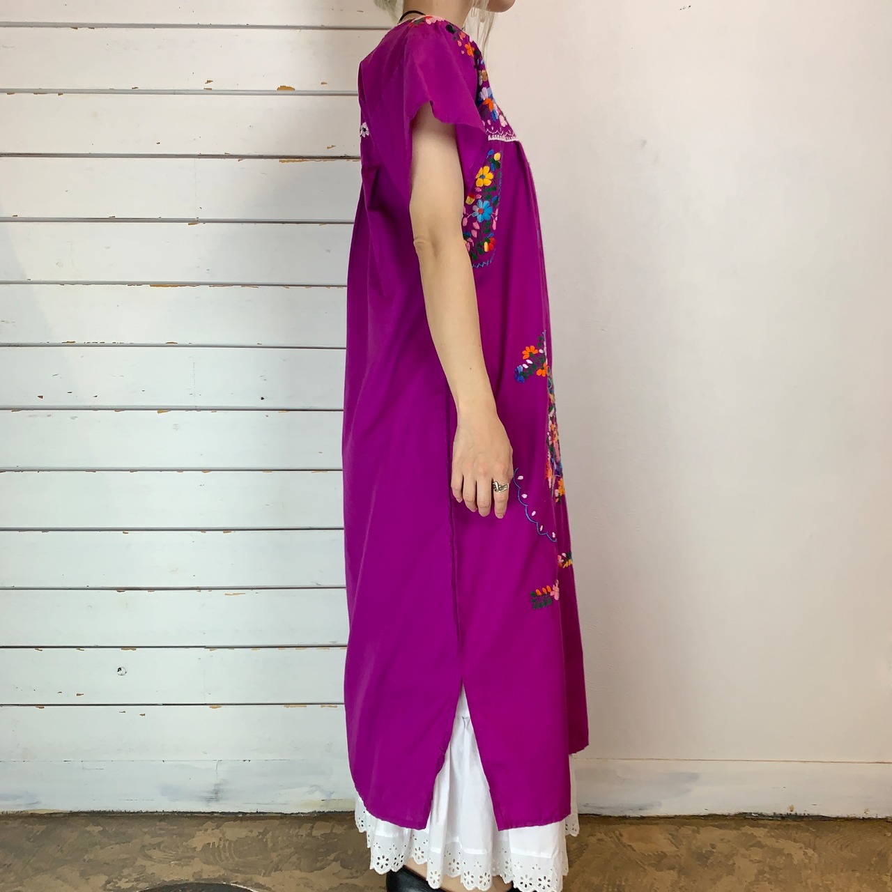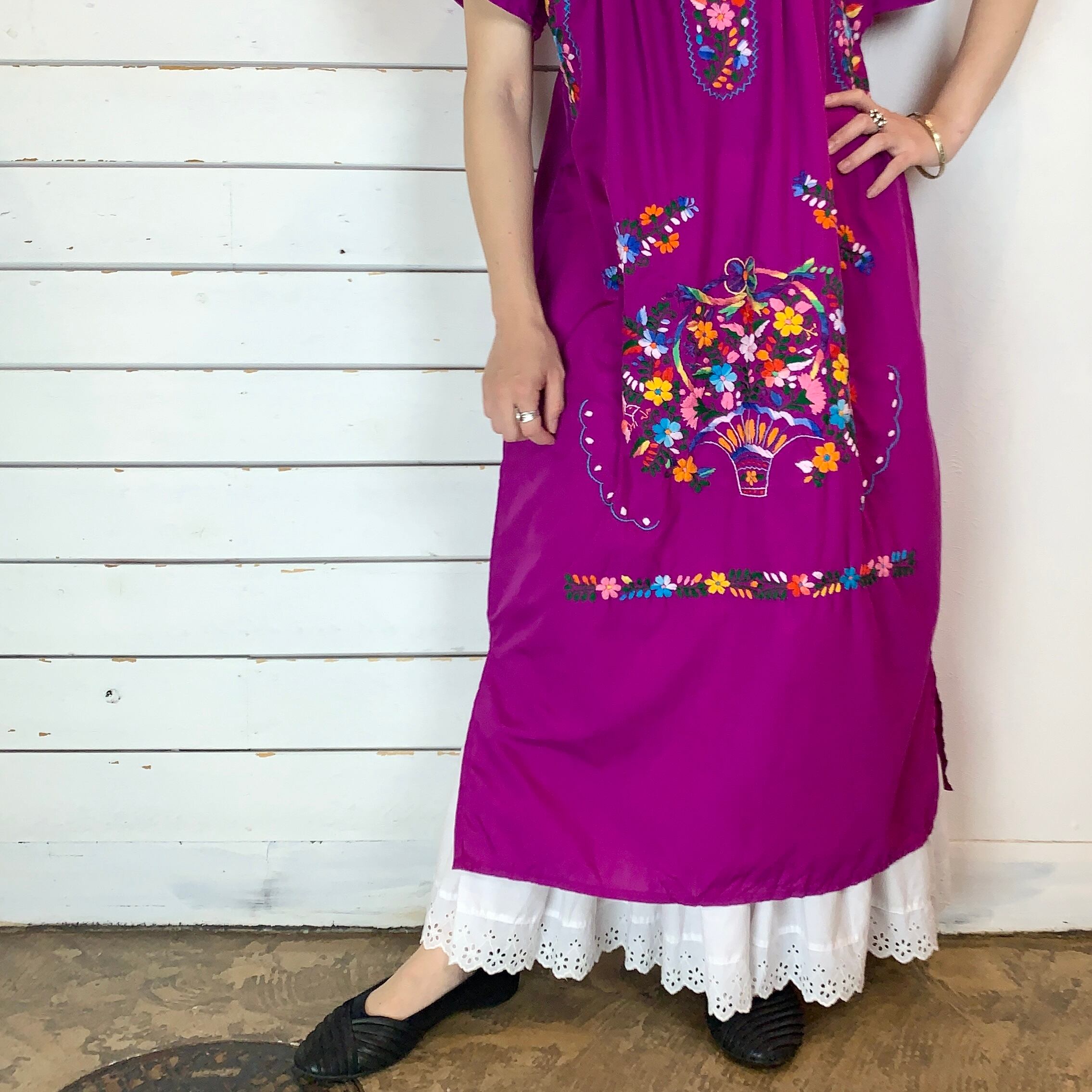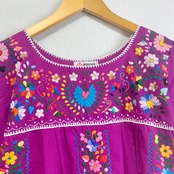 紫っぽいピンク、少し大人びたマゼンタカラーのメキシカンワンピース