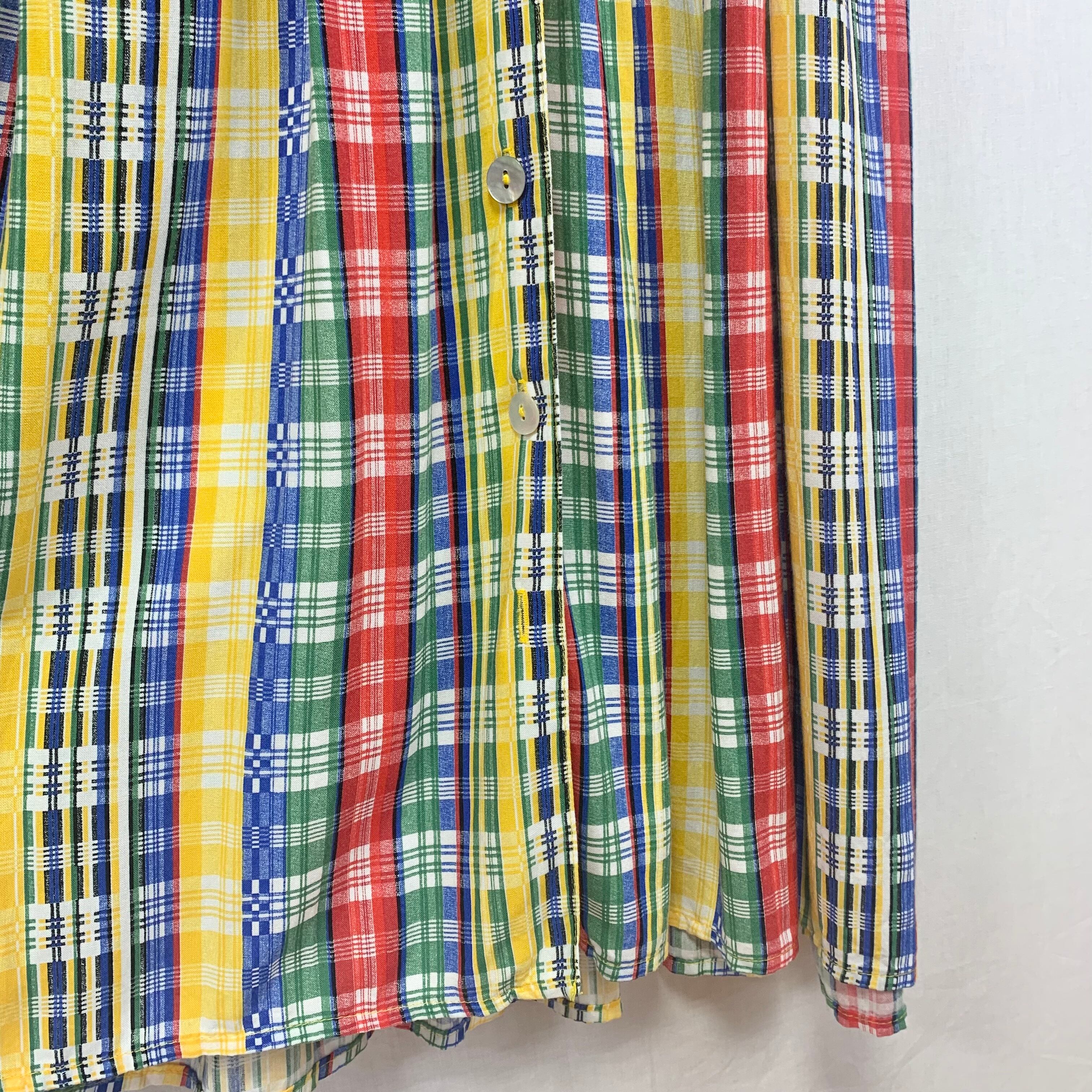 よく見るとタイダイのような上半身とチェック柄の切替がかわいいワンピース