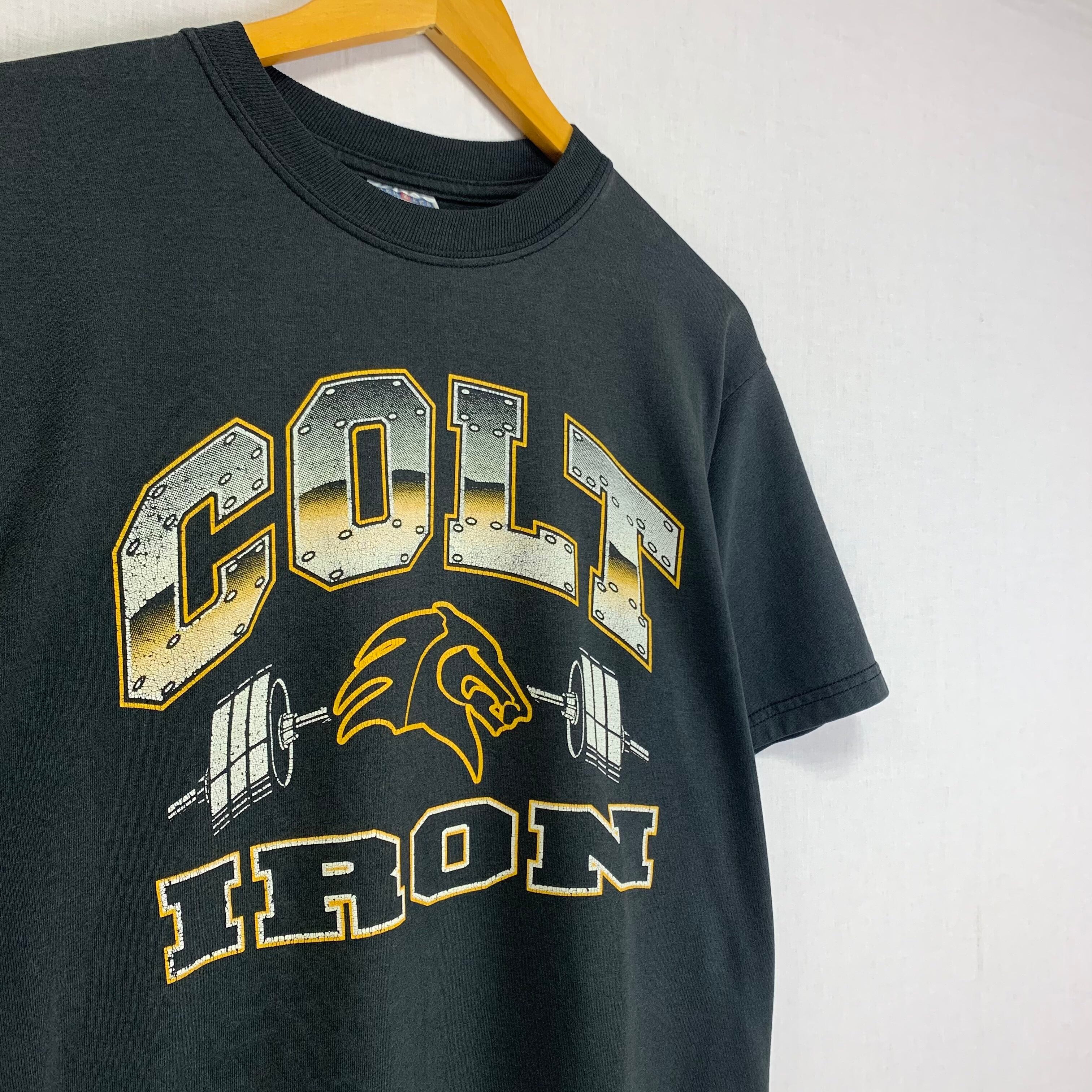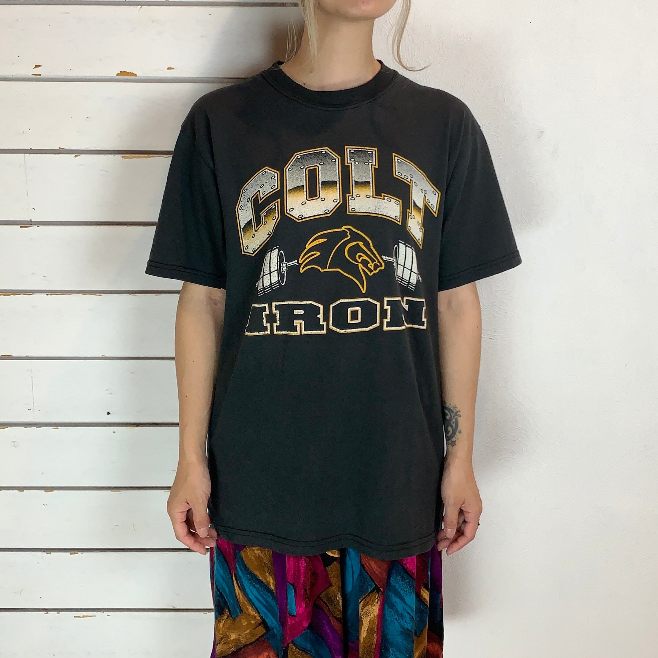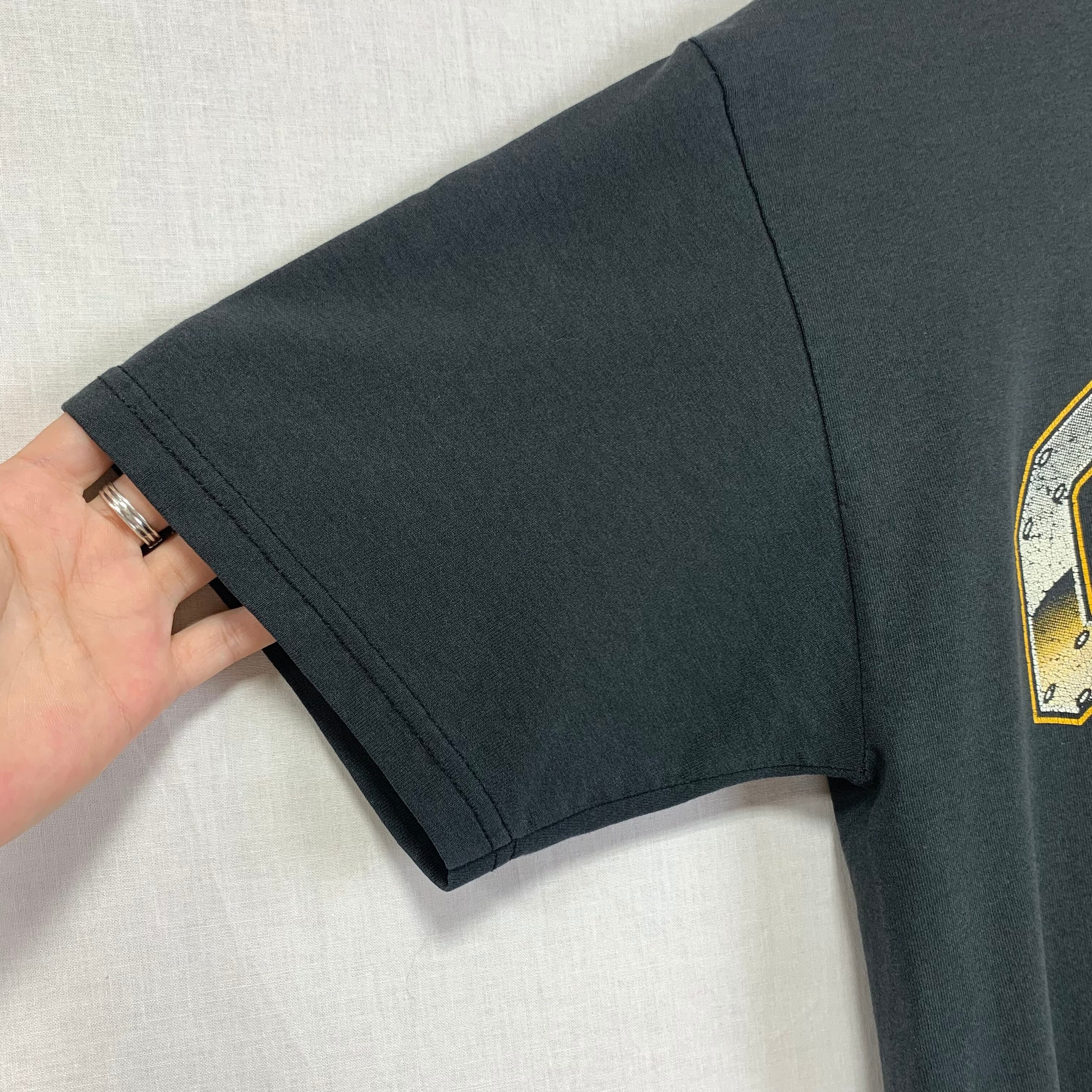 目立った汚れやダメージはありませんが使用感により白っぽく色褪せ、プリント割れがございます。(写真16枚目〜)