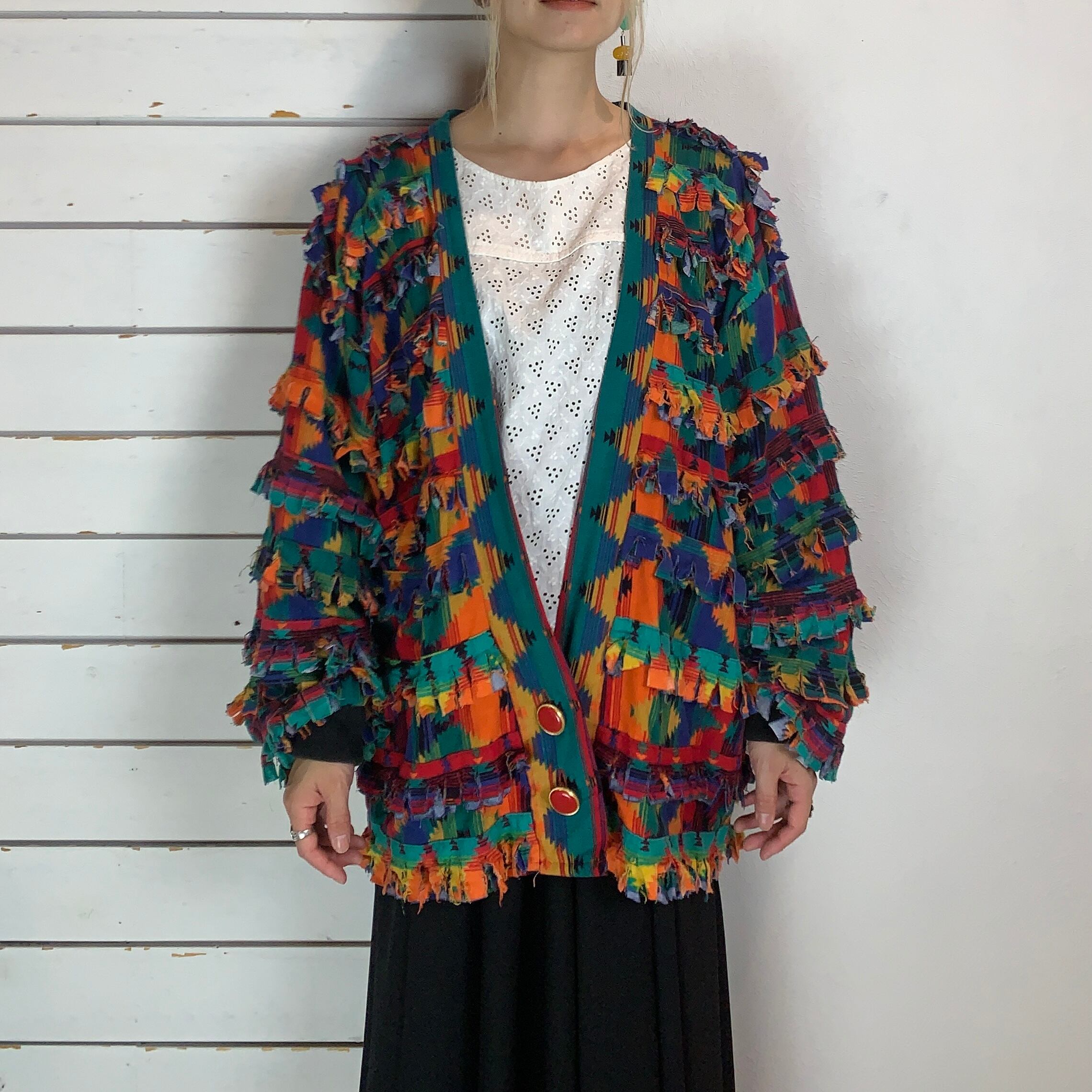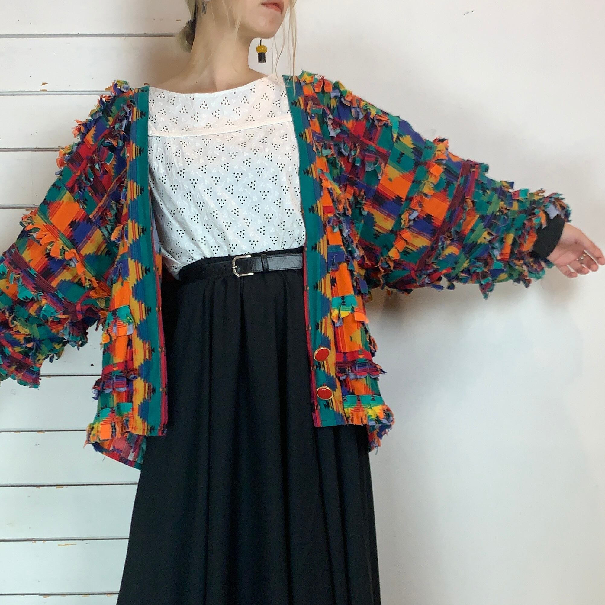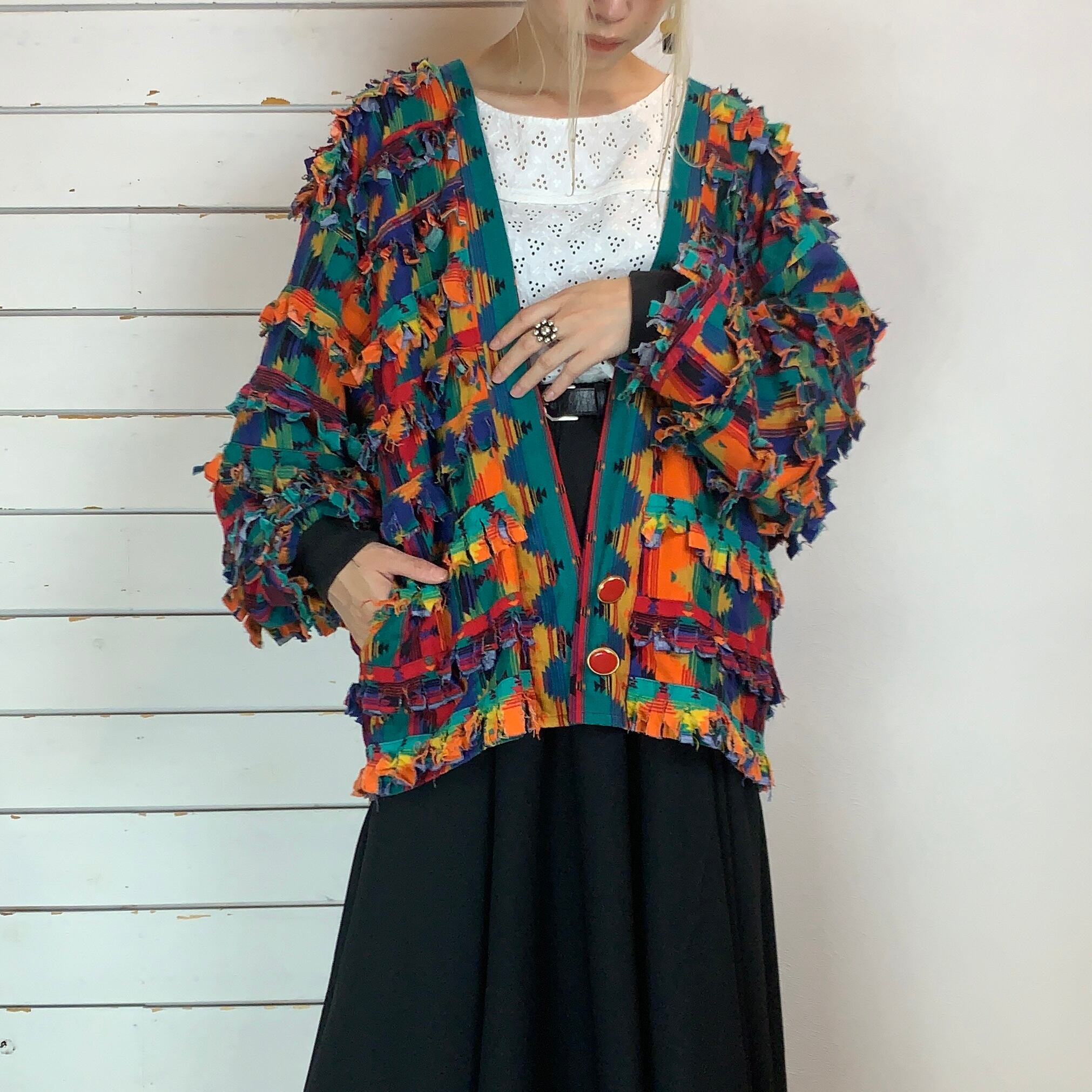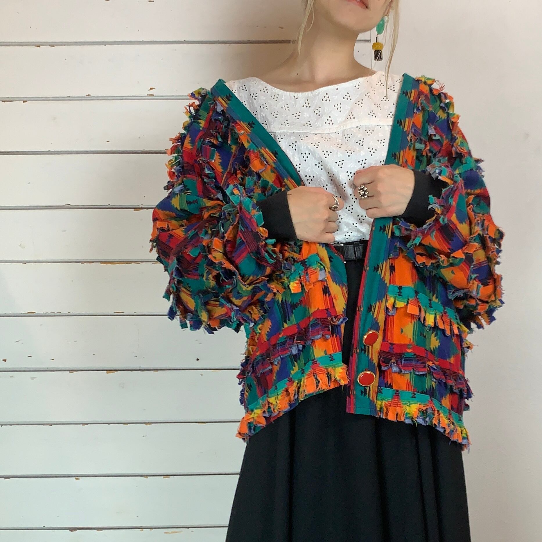 paulaらしいカラフルな色使い、こちらはネイティブ柄のフリンジジャケットになります