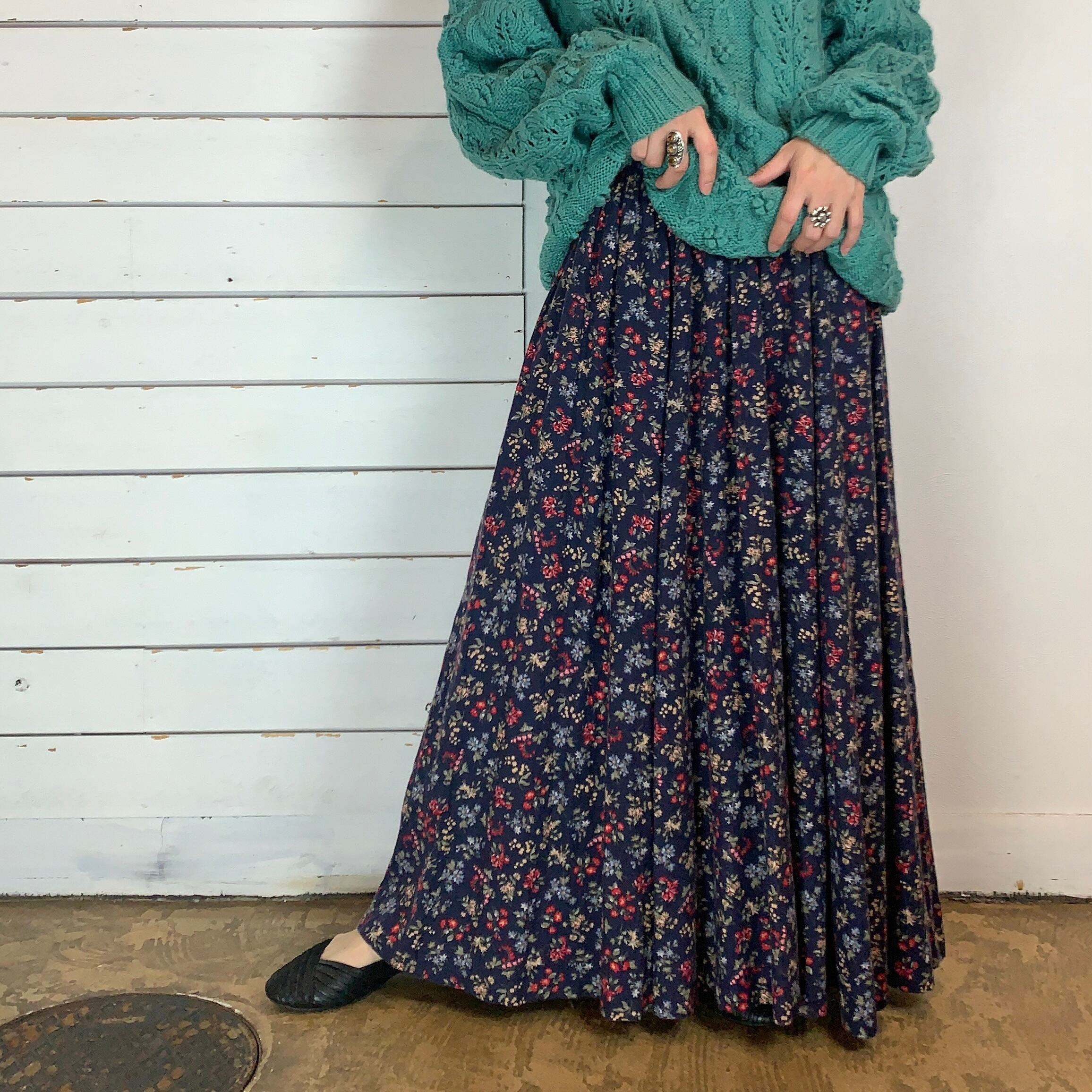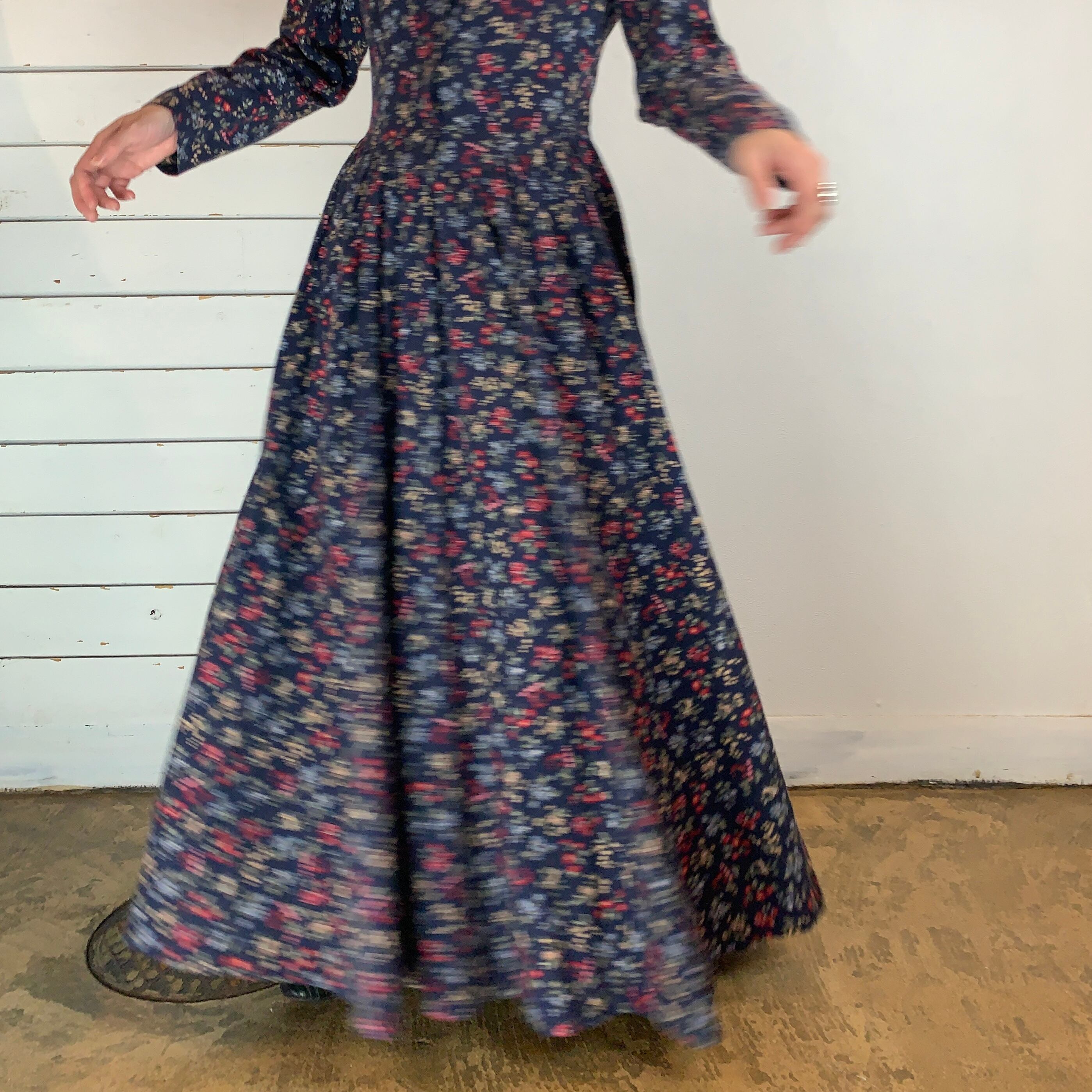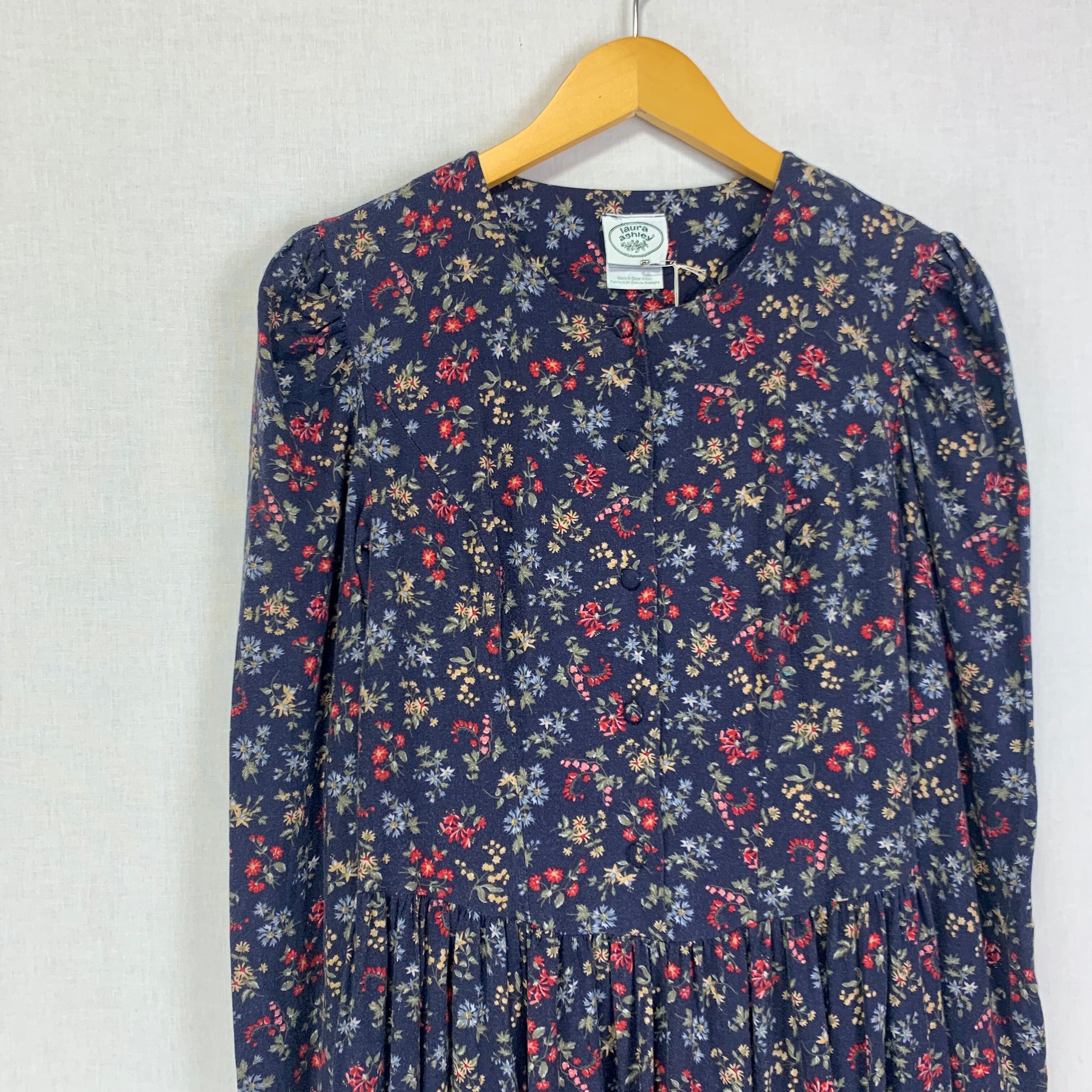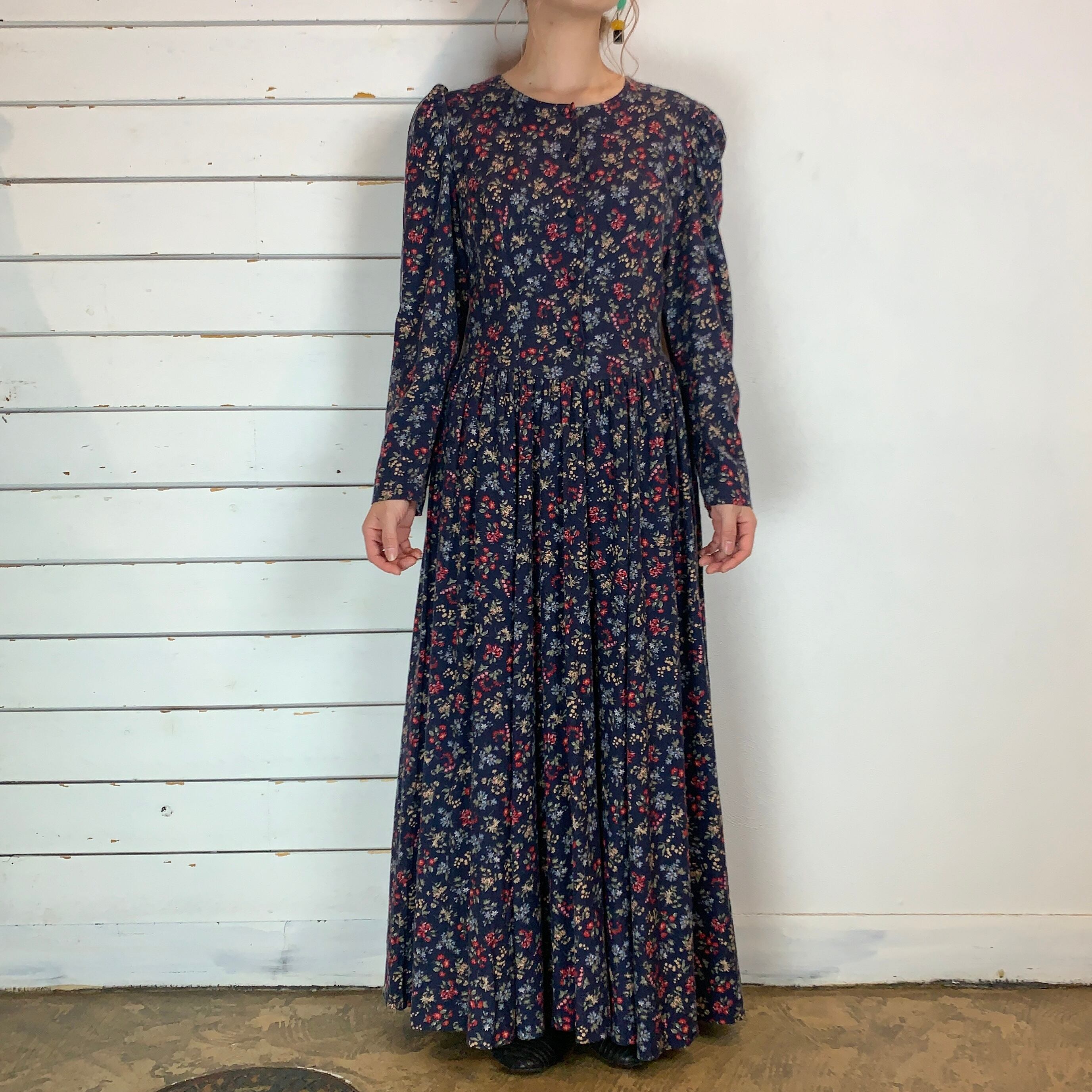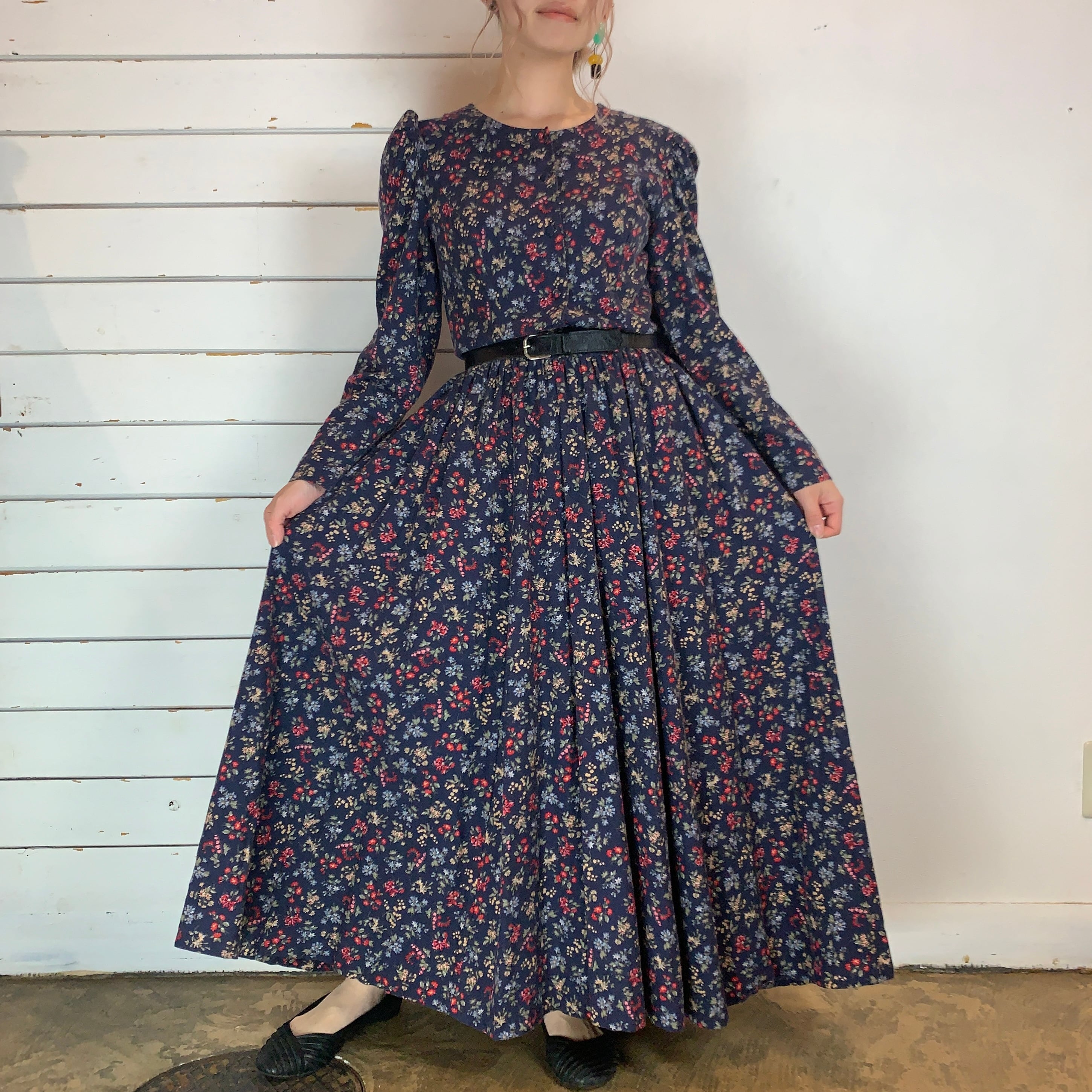 ネイビーにガーリーな花柄のローラアシュレイワンピース