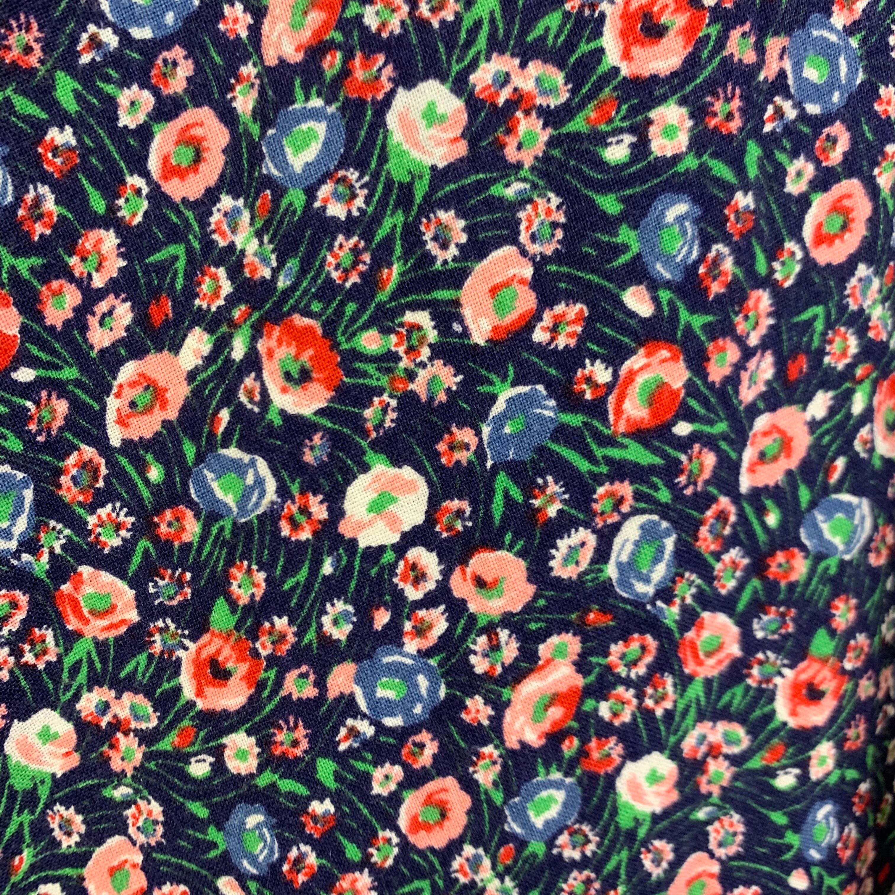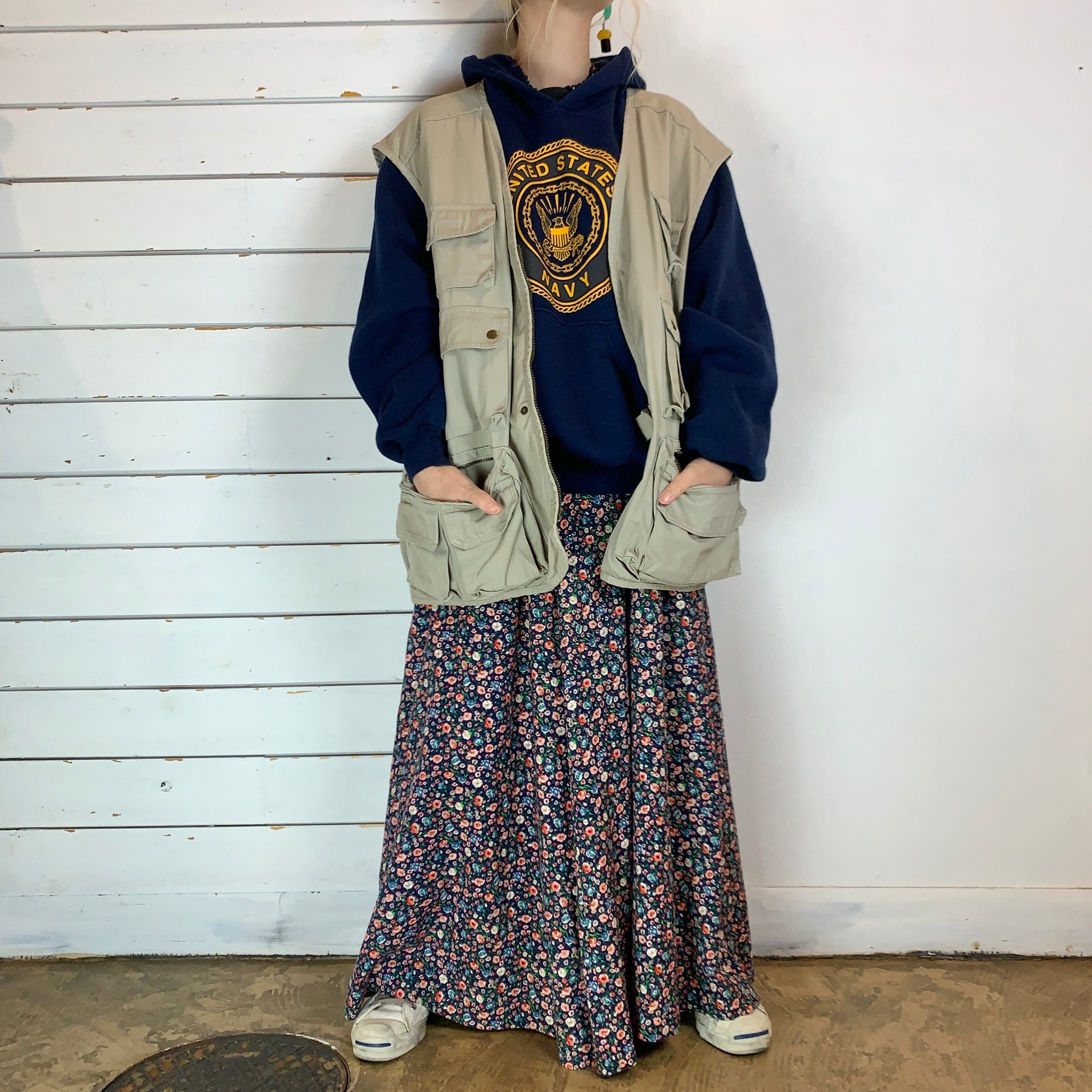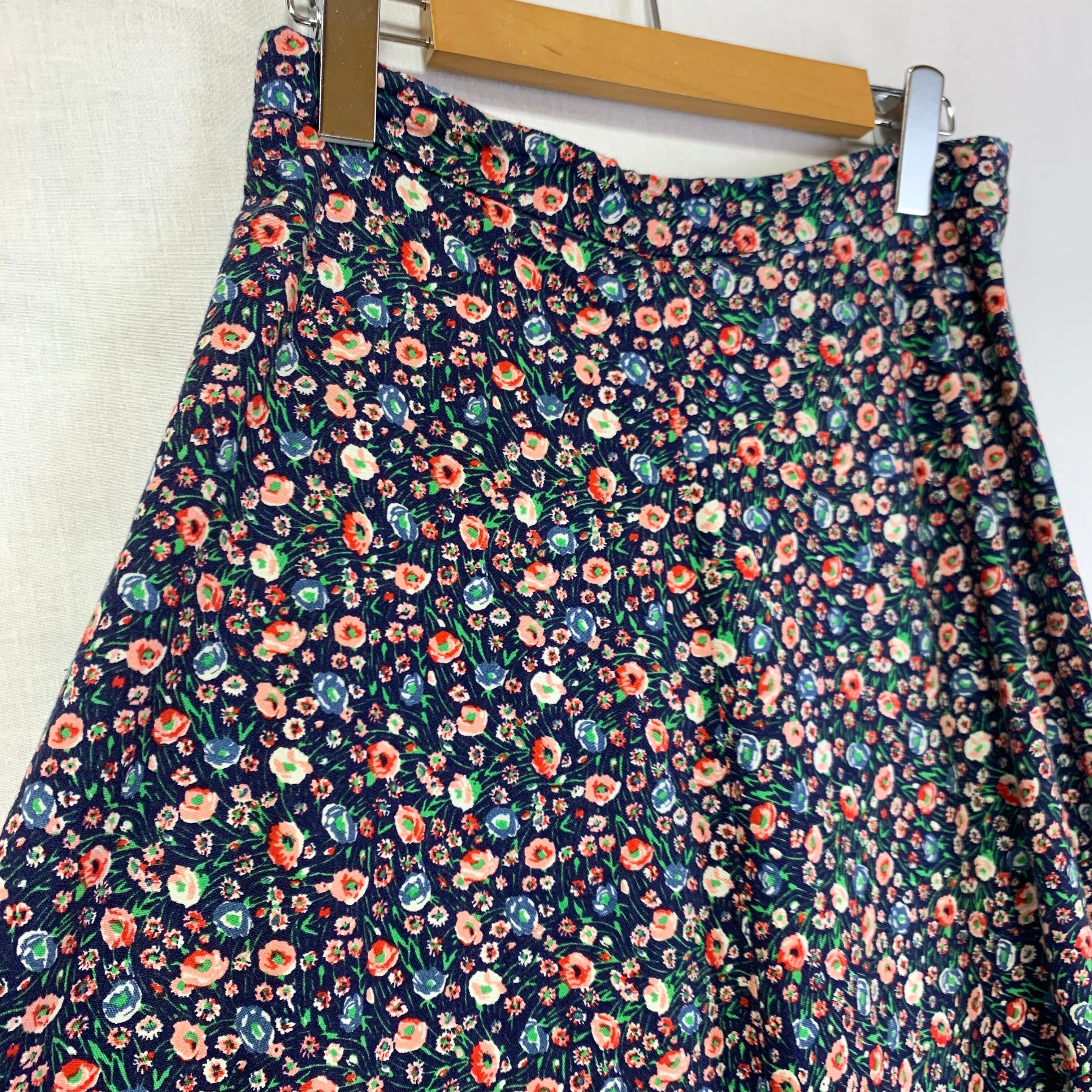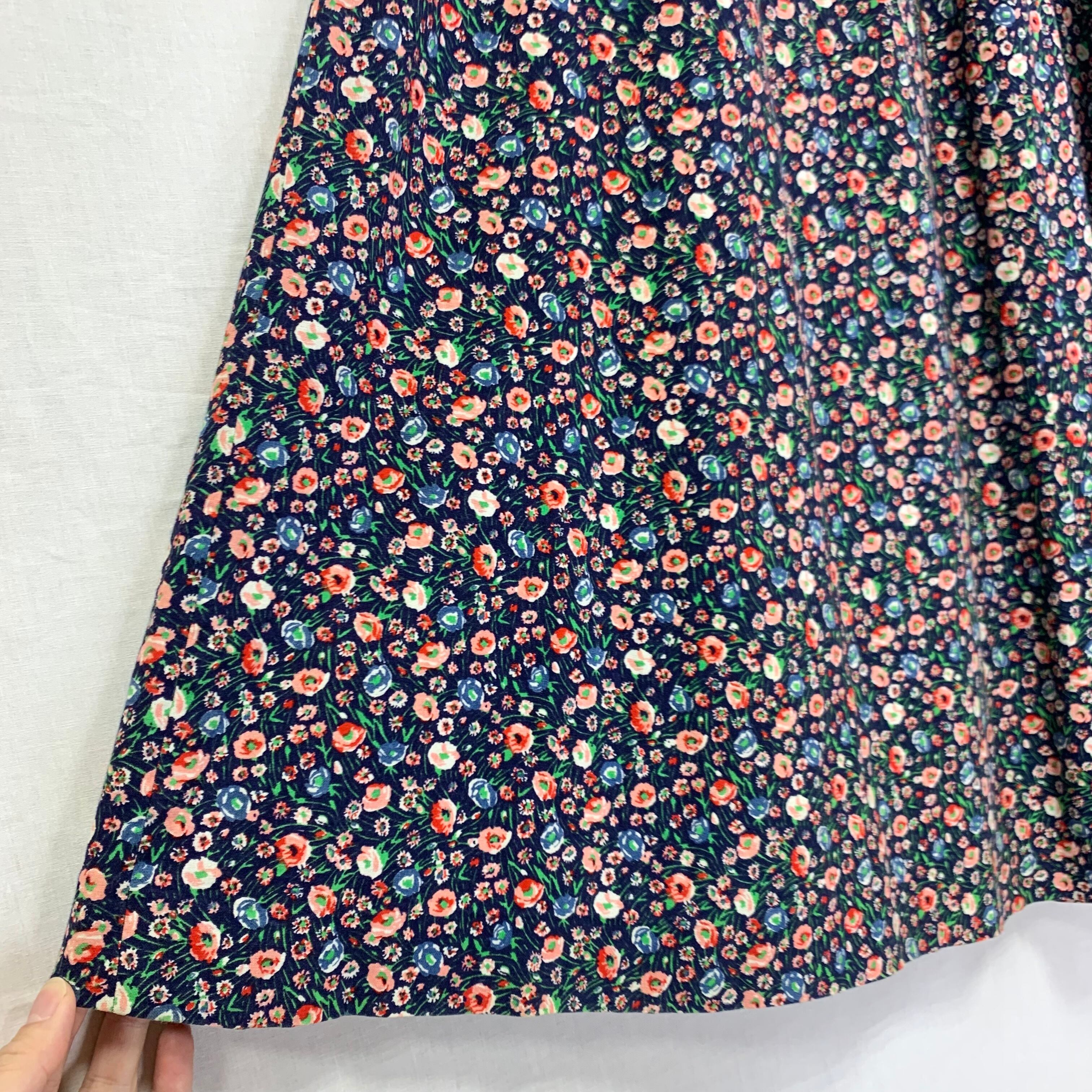 ネイビーベースにガーリーな小花柄のAラインマキシ丈スカート