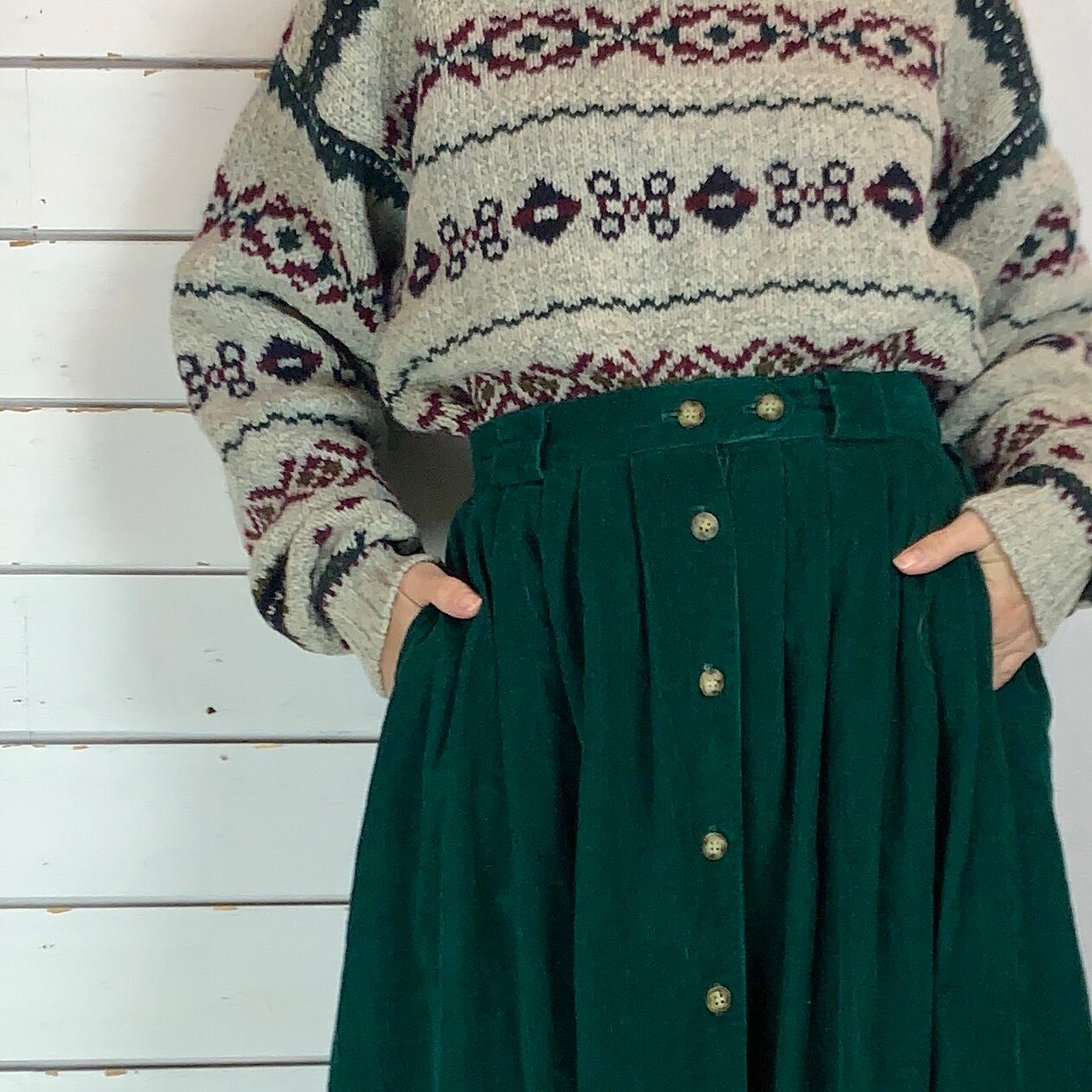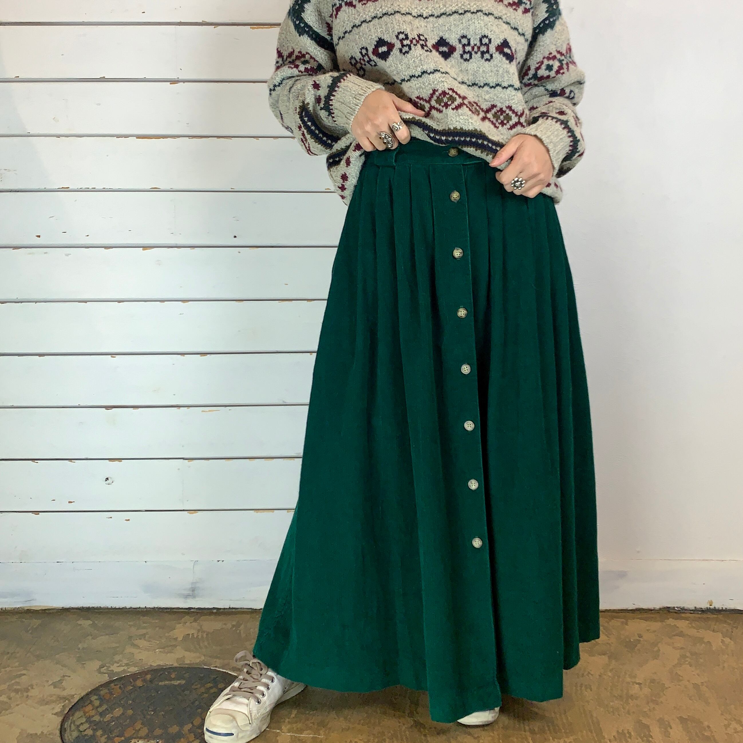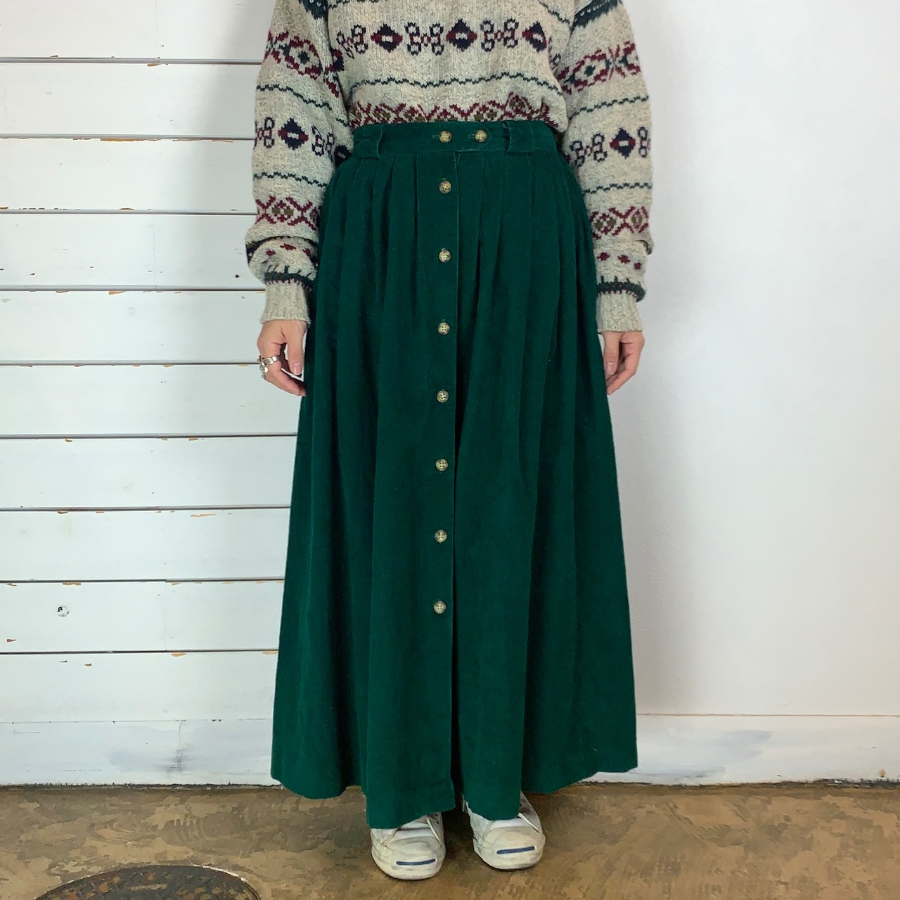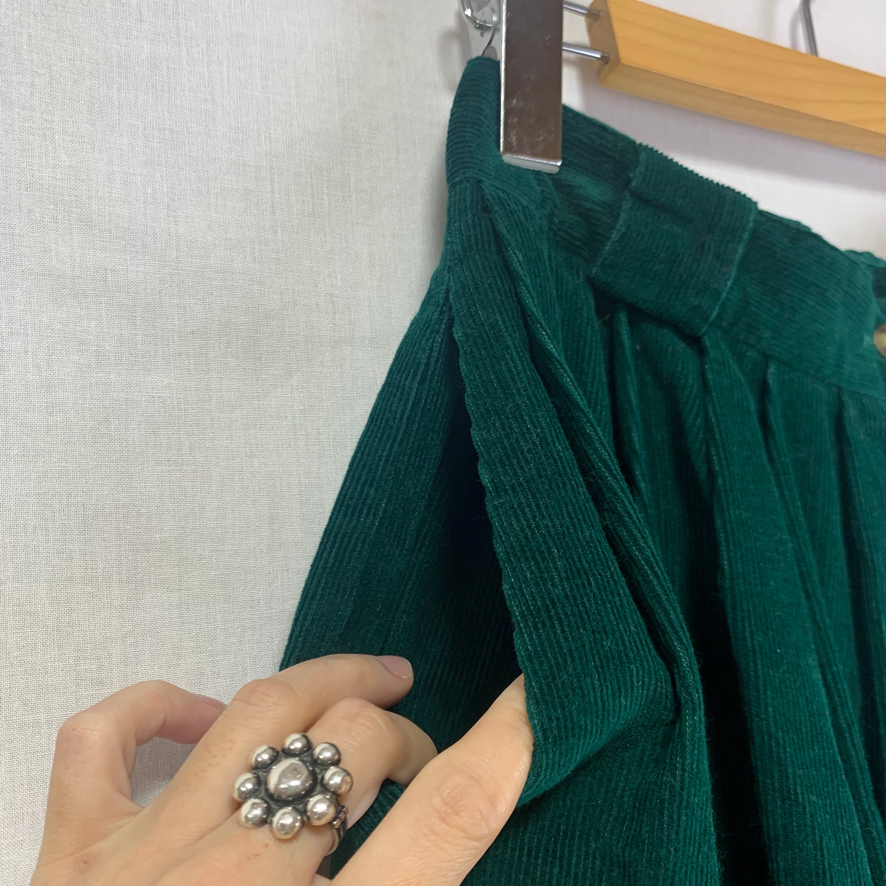 シンプルで使いやすいモスグリーンのコーデュロイスカート