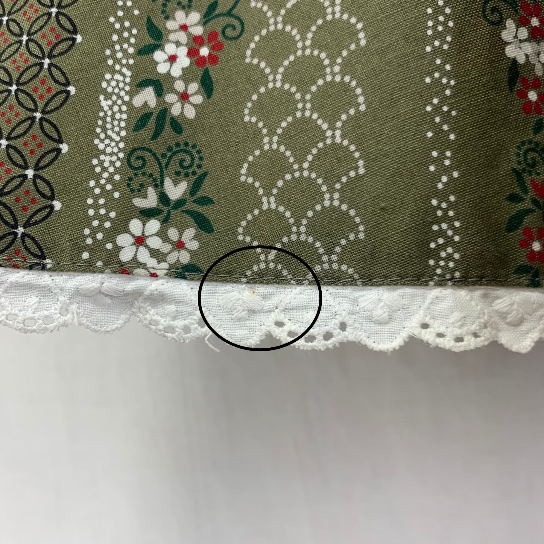 あまり目立ちませんが裾のレース部分にうっすらとシミがございます。(写真13.14枚目)