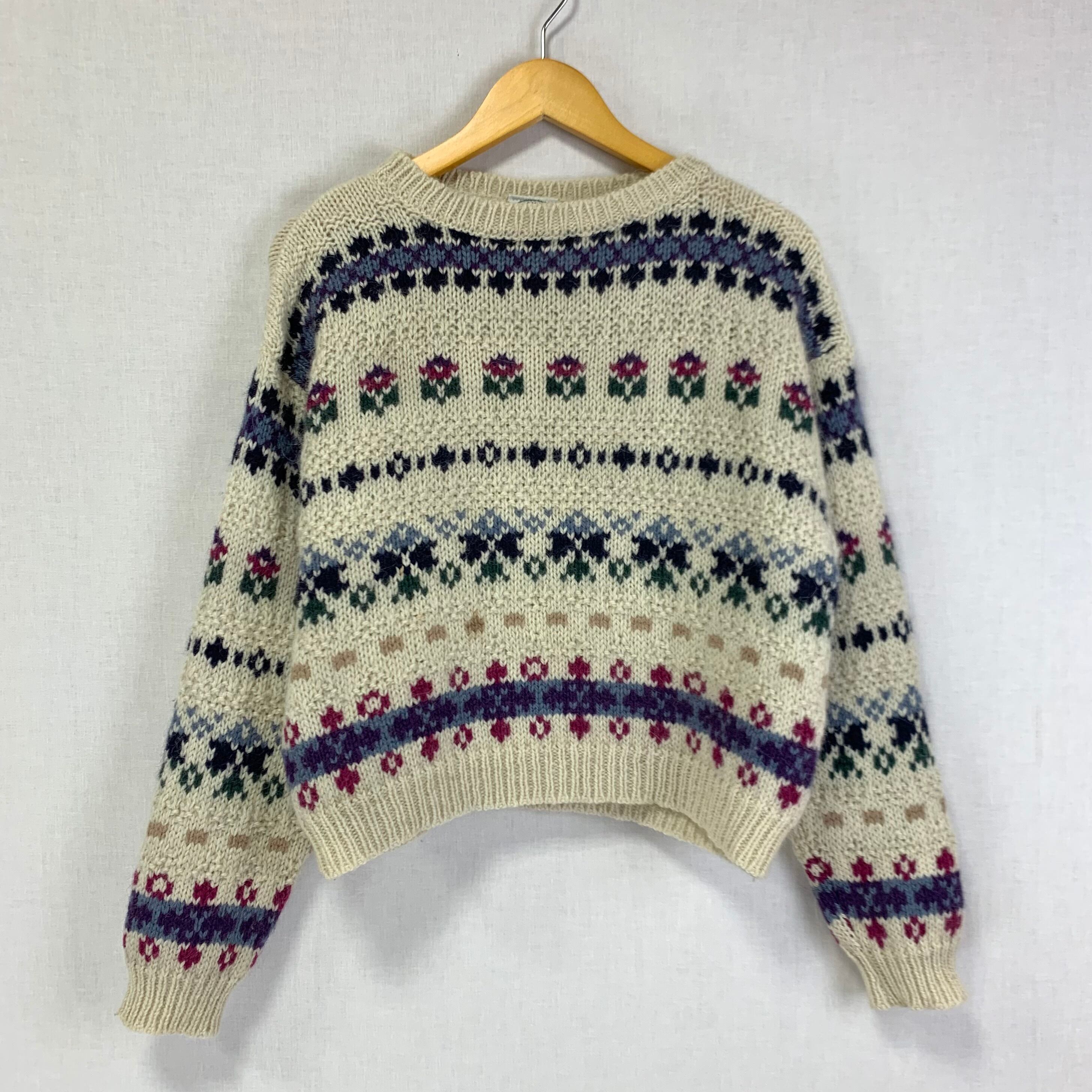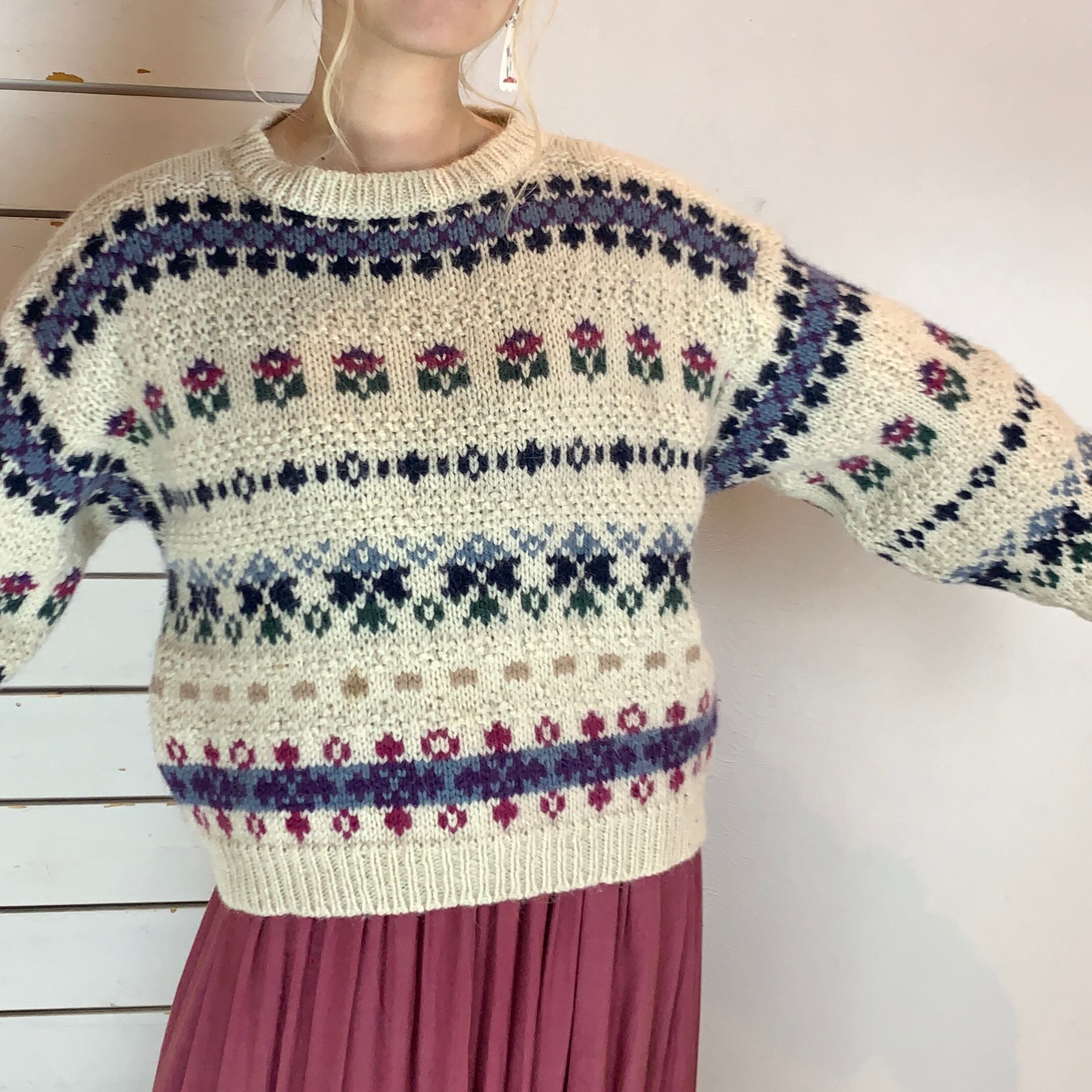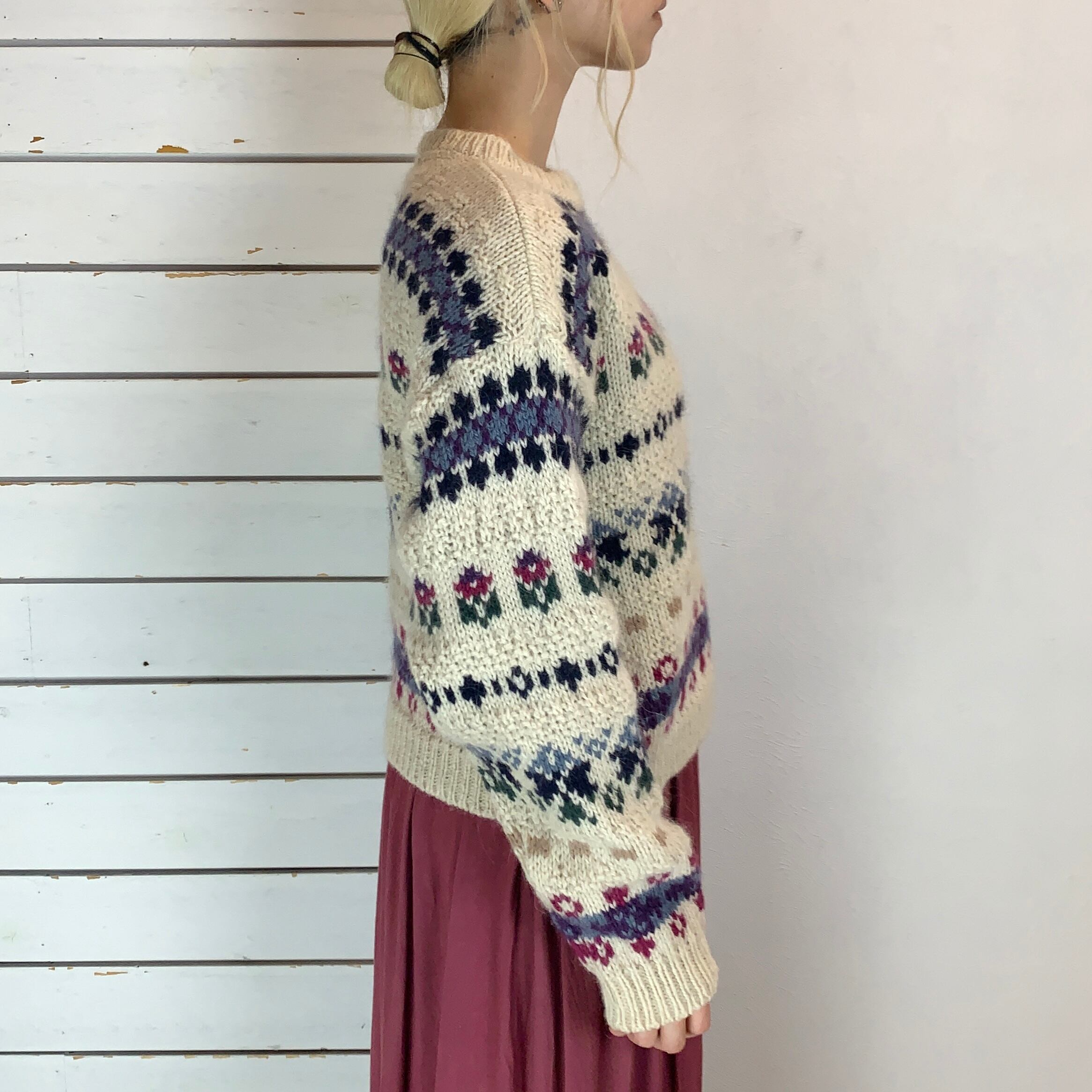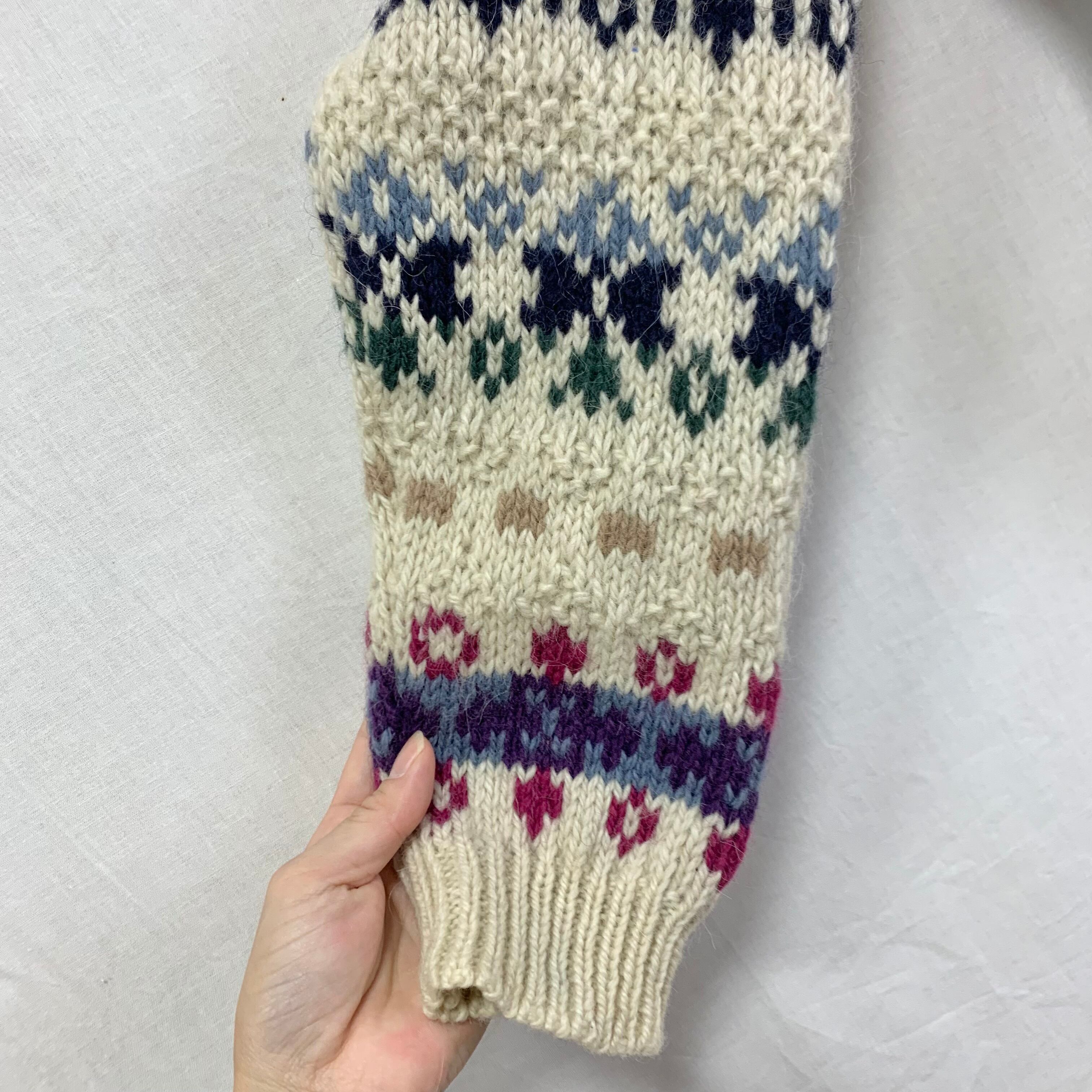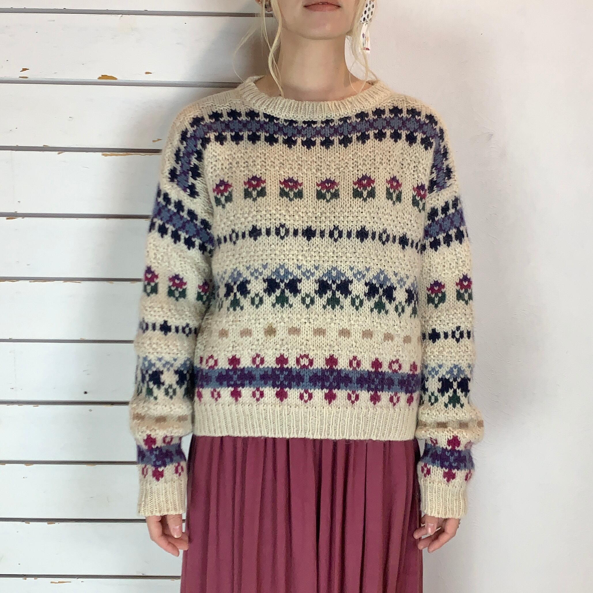 アイボリーにお花を用いたノルディック柄ニット
