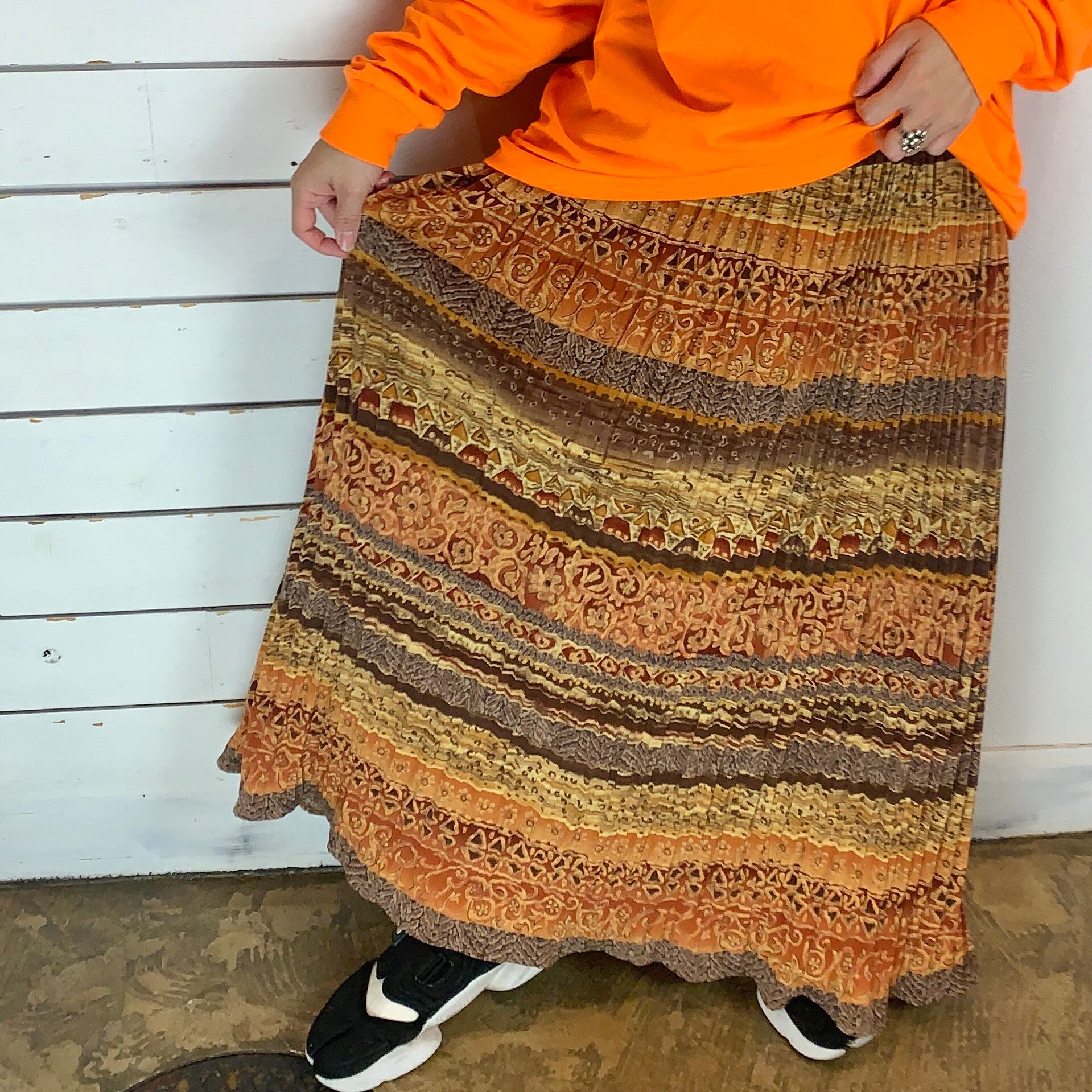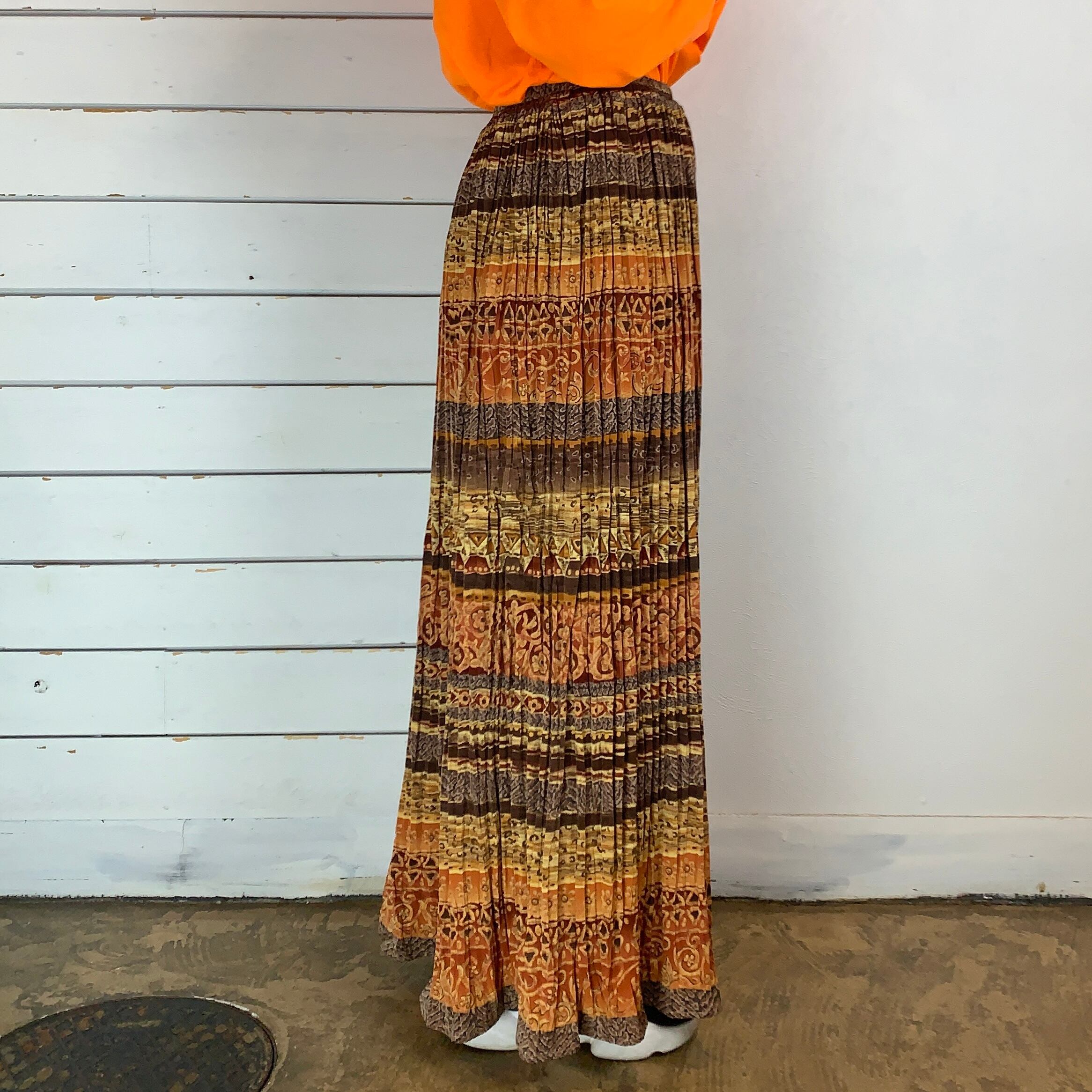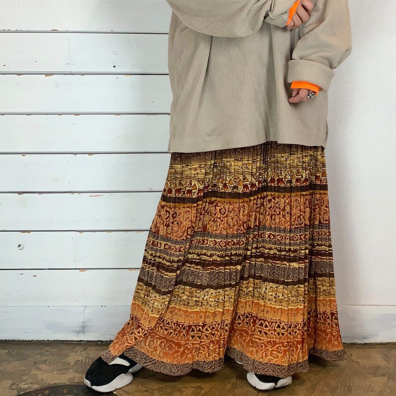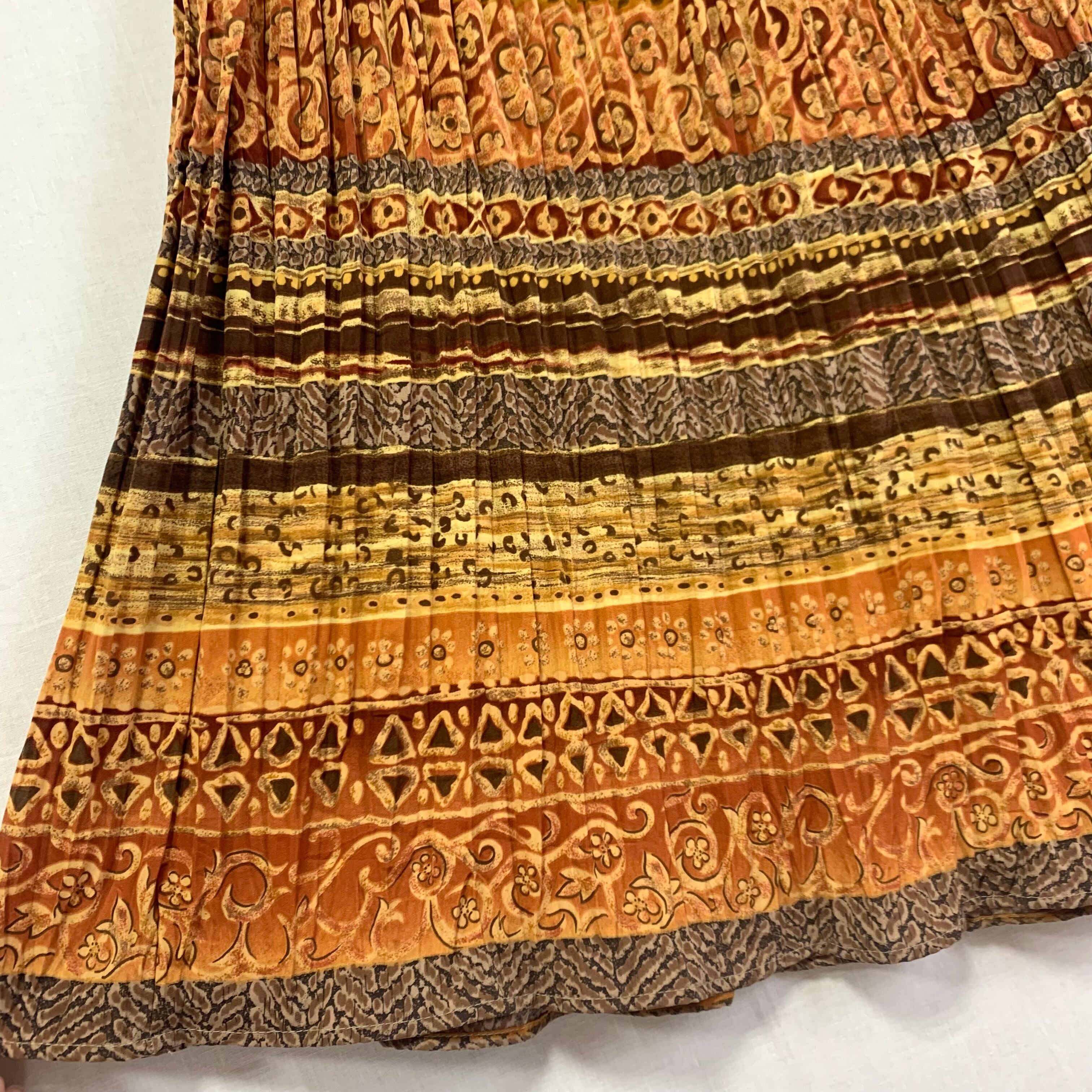ブラウン系で取り入れやすいエスニック柄スカート