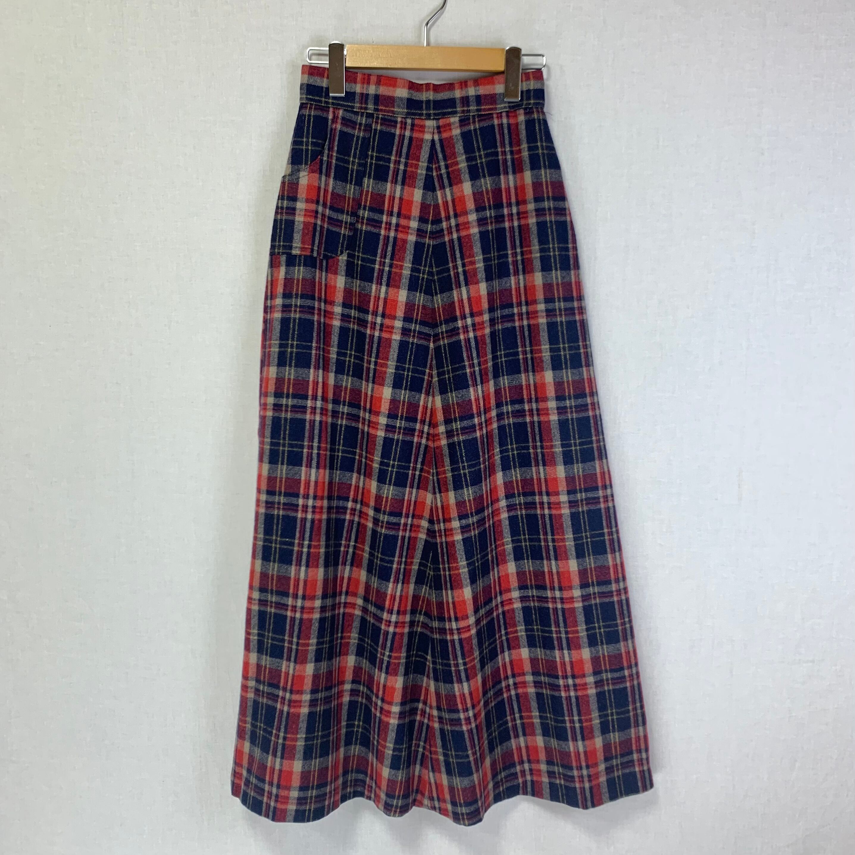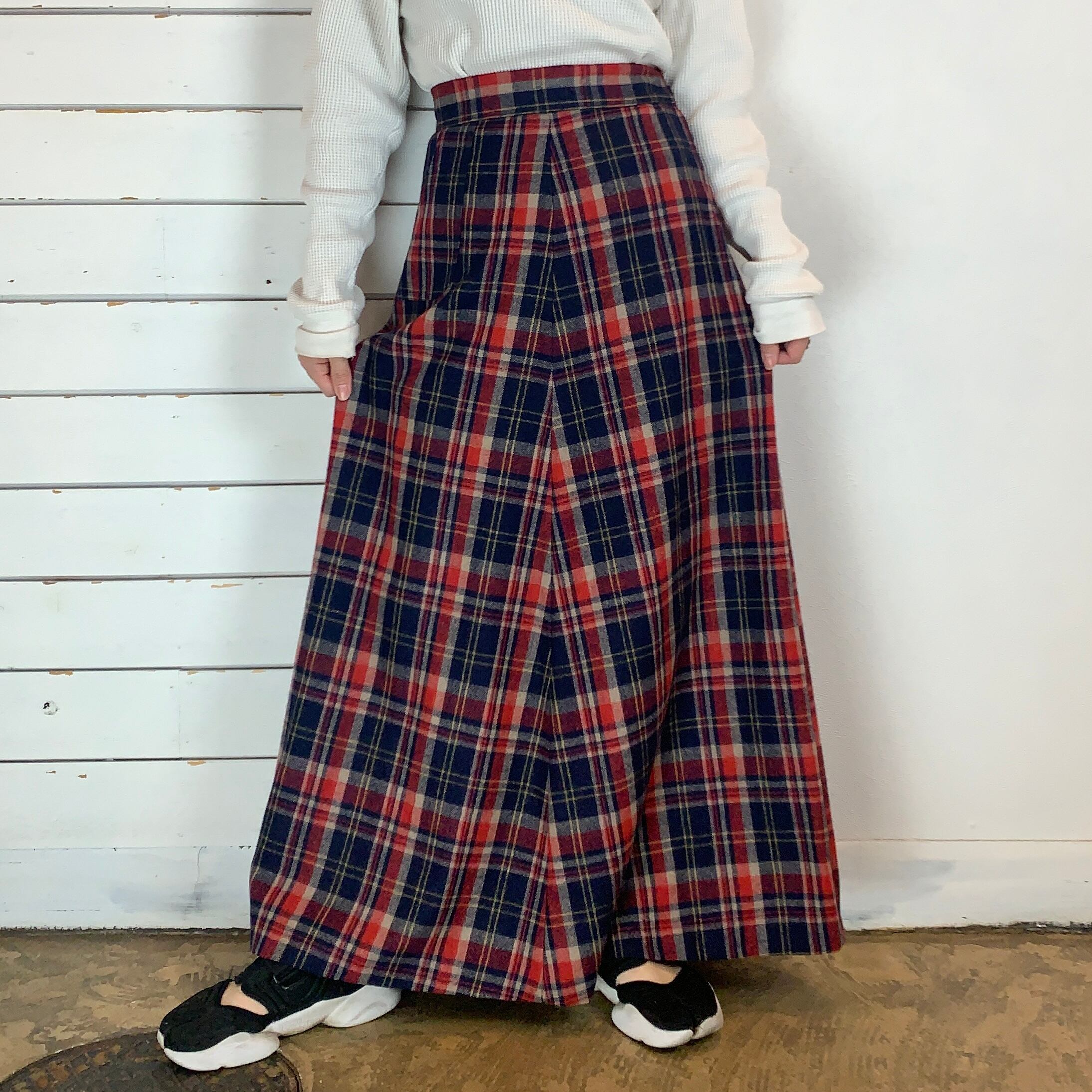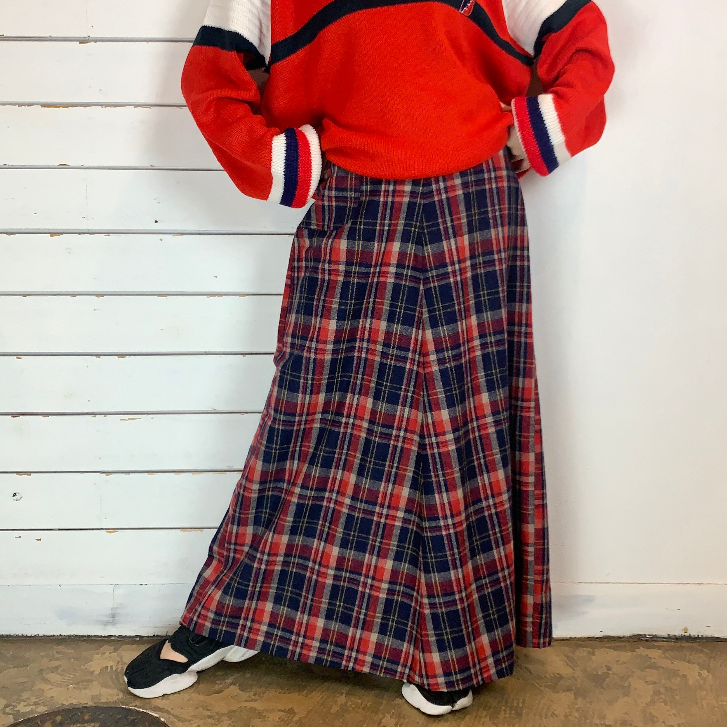 plaid A-line wool maxi skirt