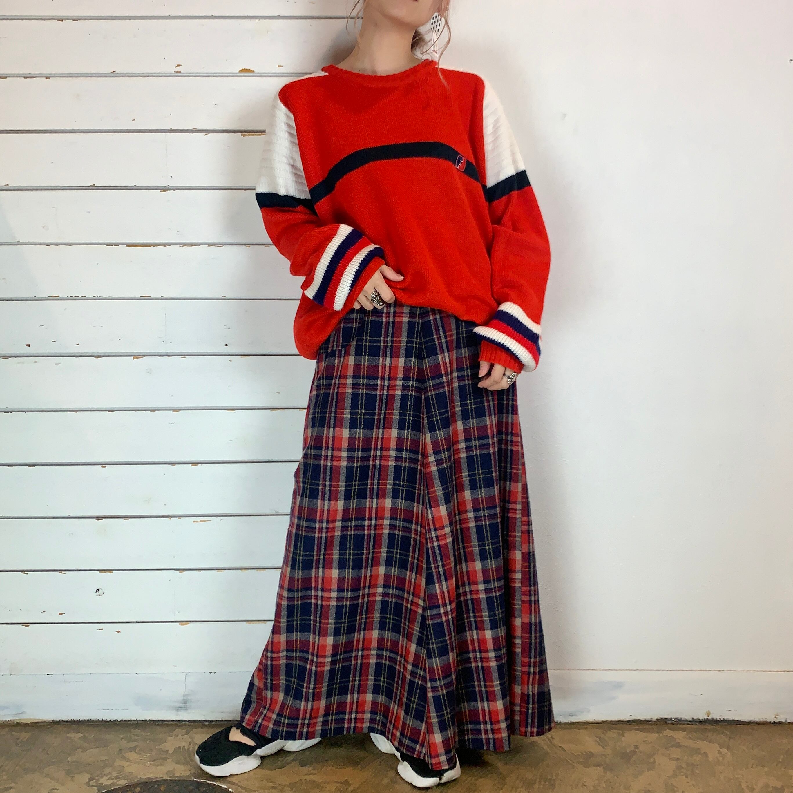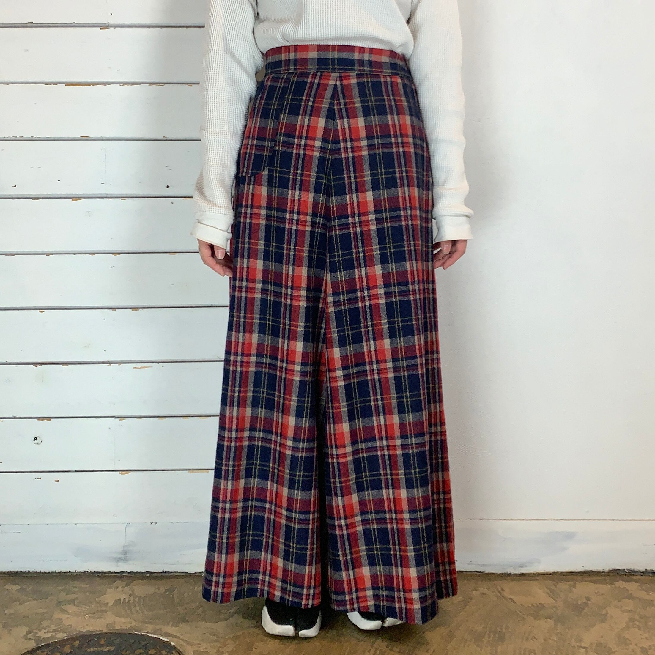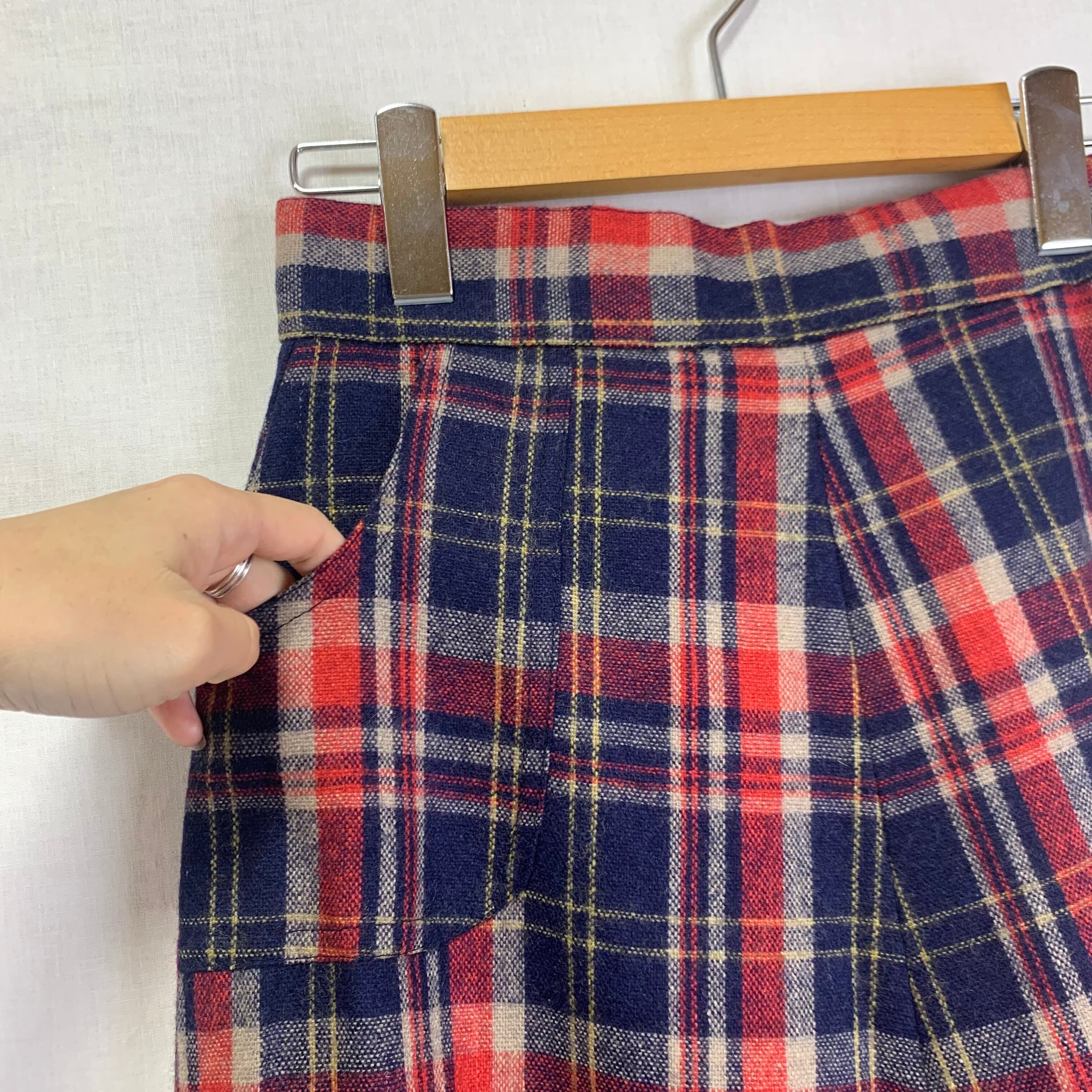 plaid A-line wool maxi skirt