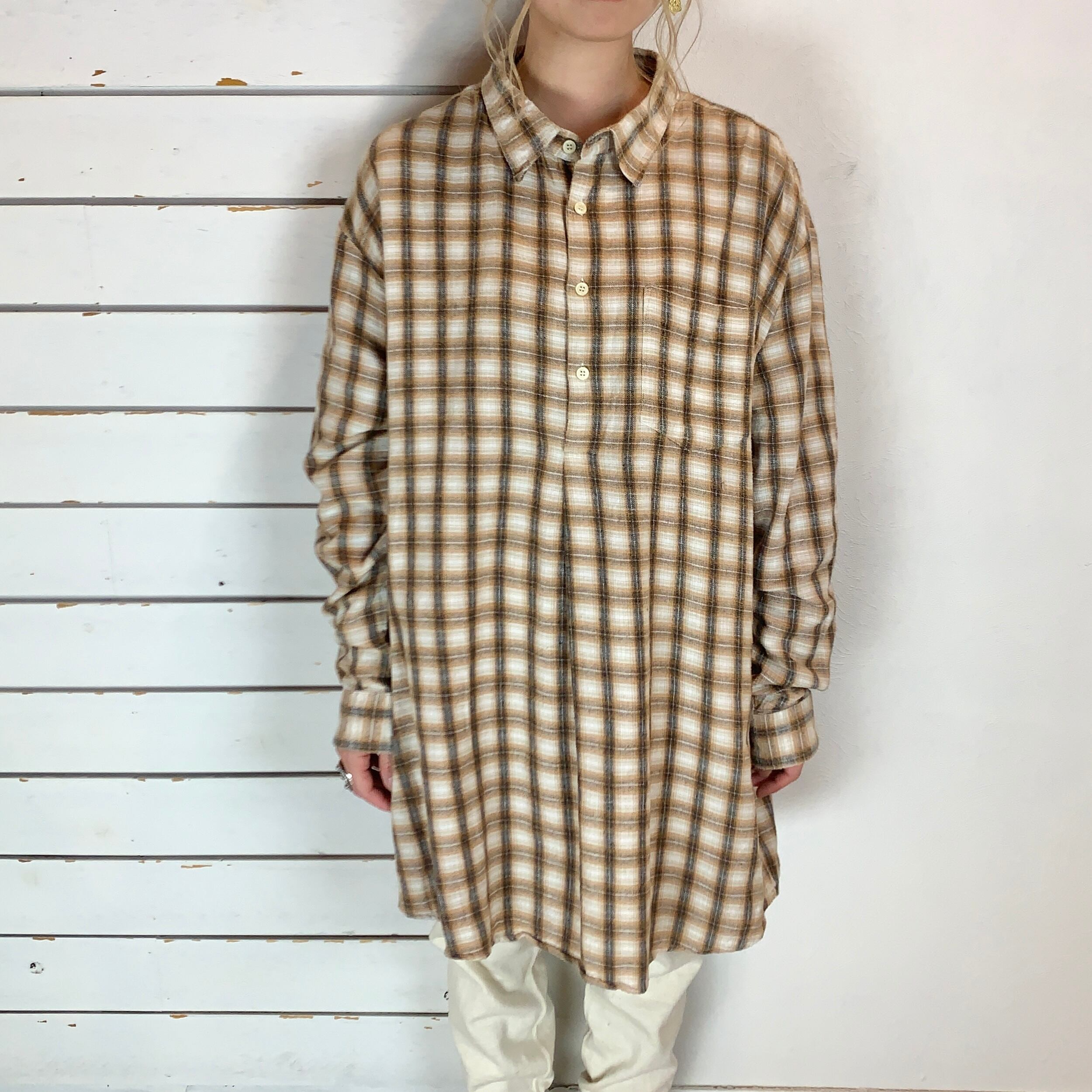 ゆったりめのプルオーバーでリラクシングなネルシャツです