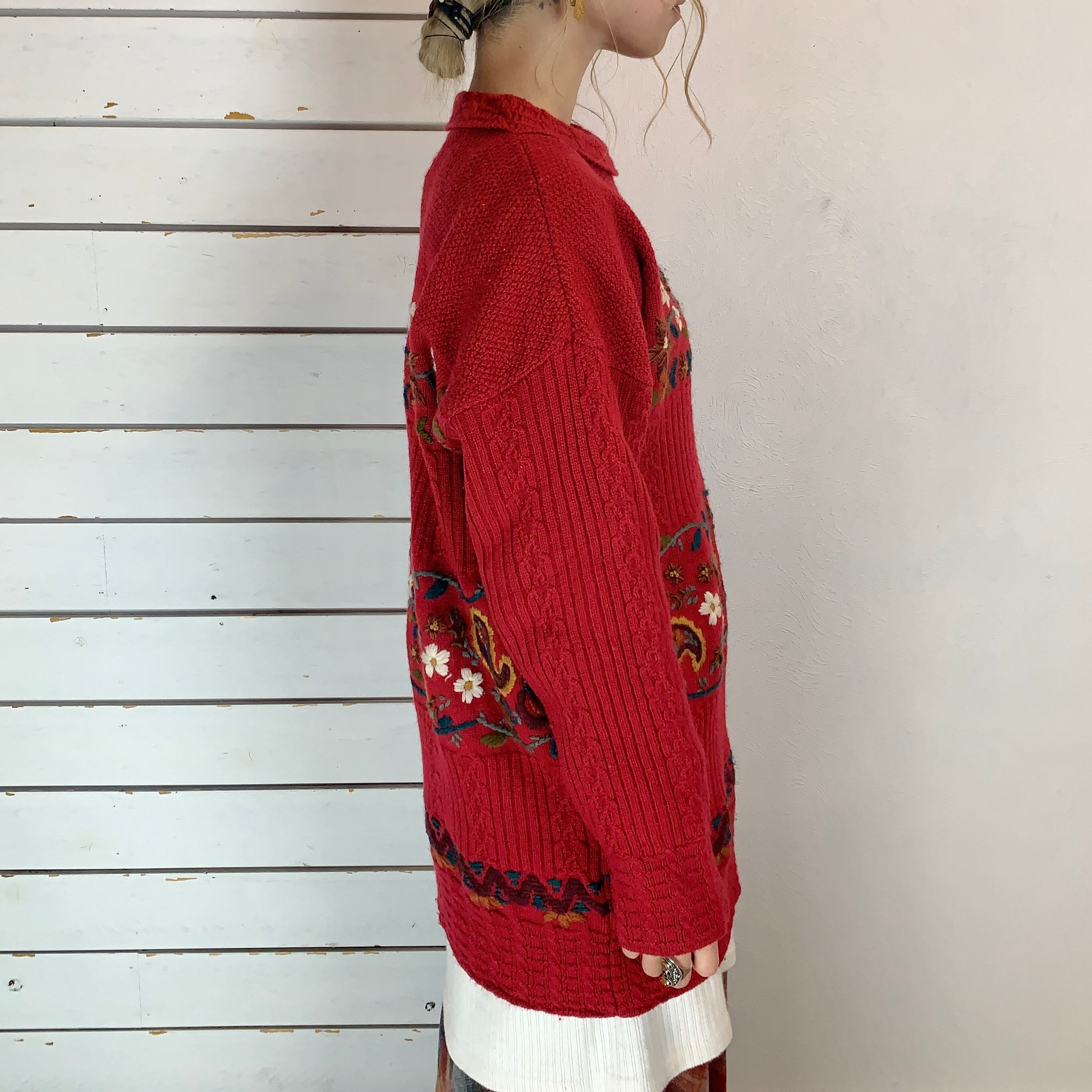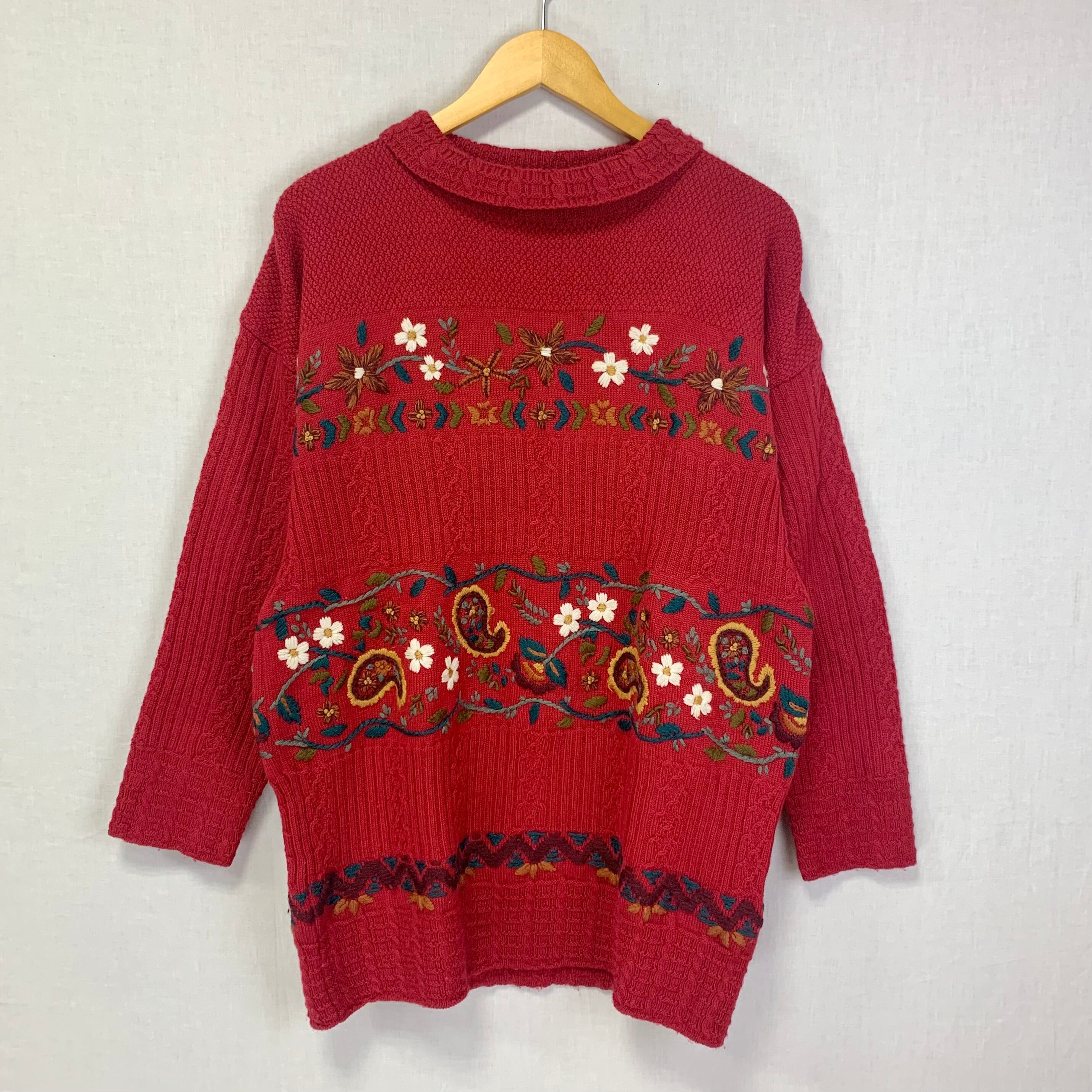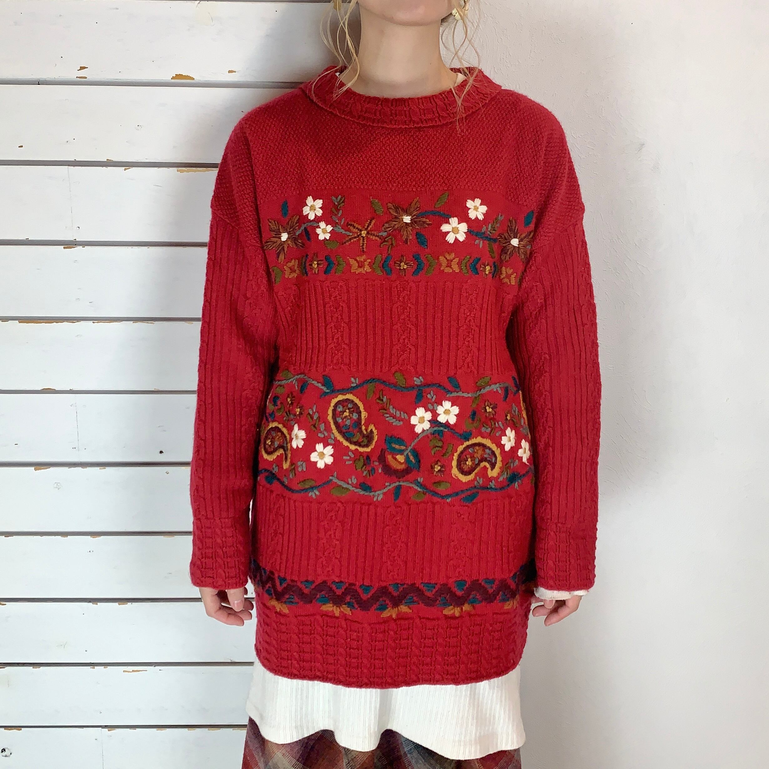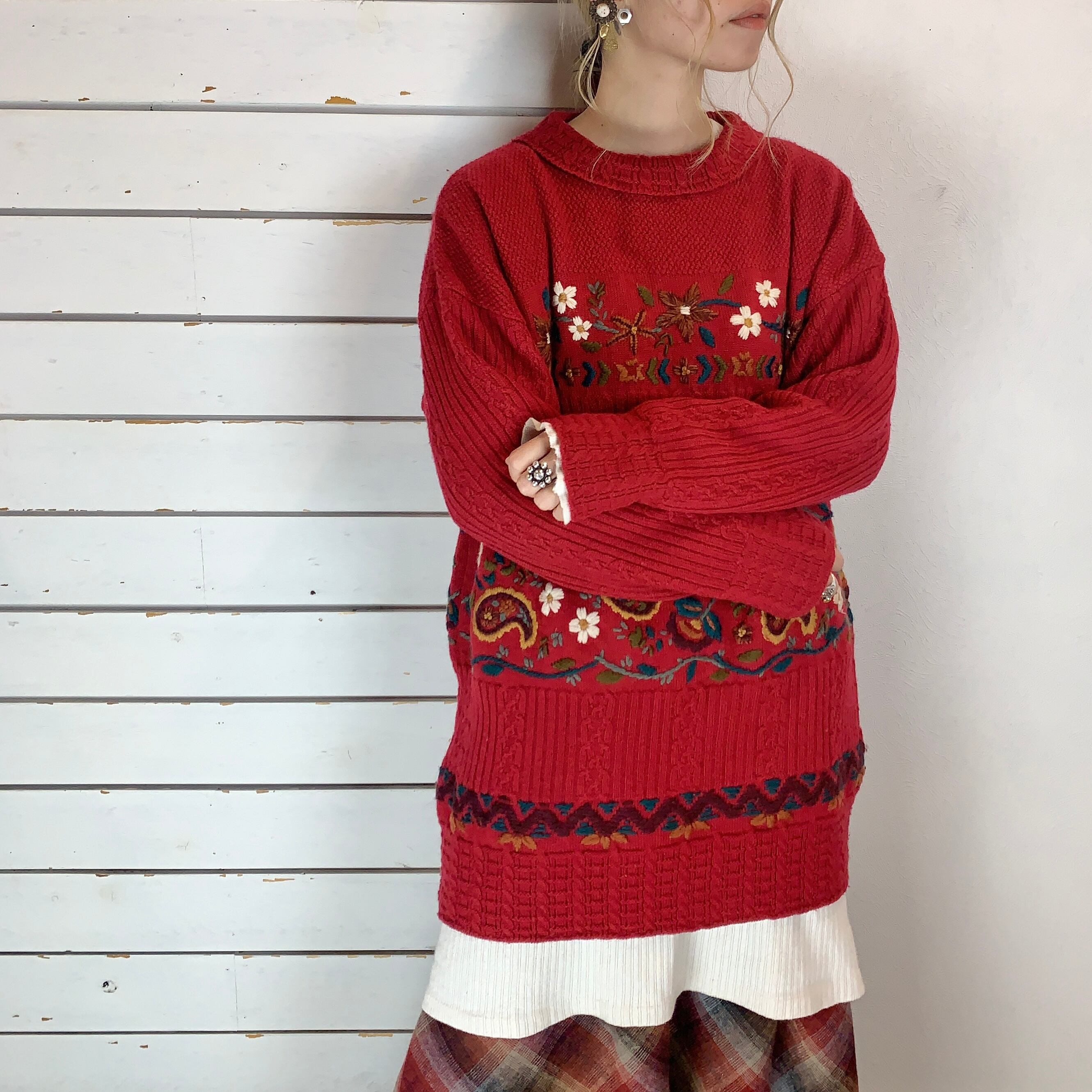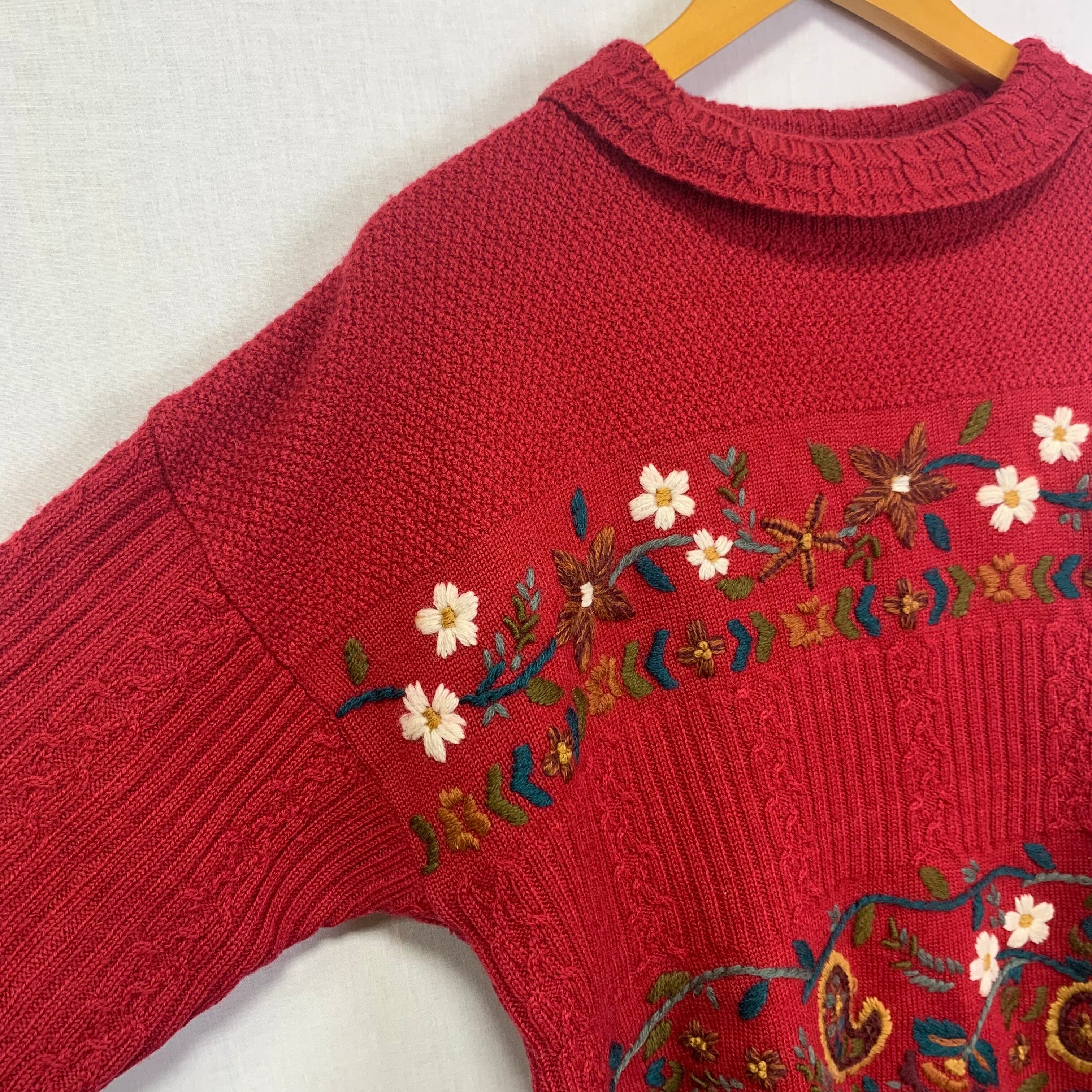 立体的なお花の刺繍が施されたガーリーなlaura ashleyニット