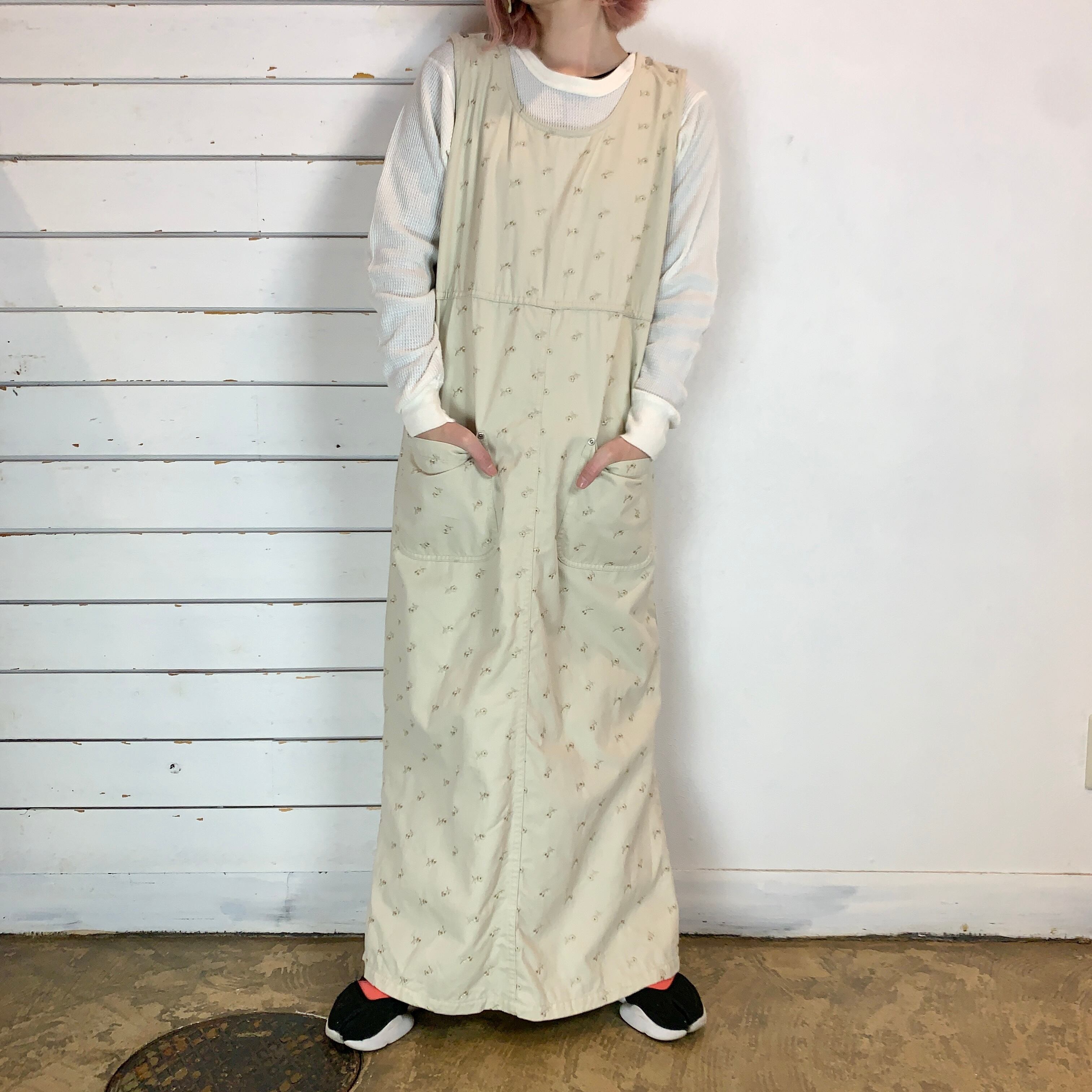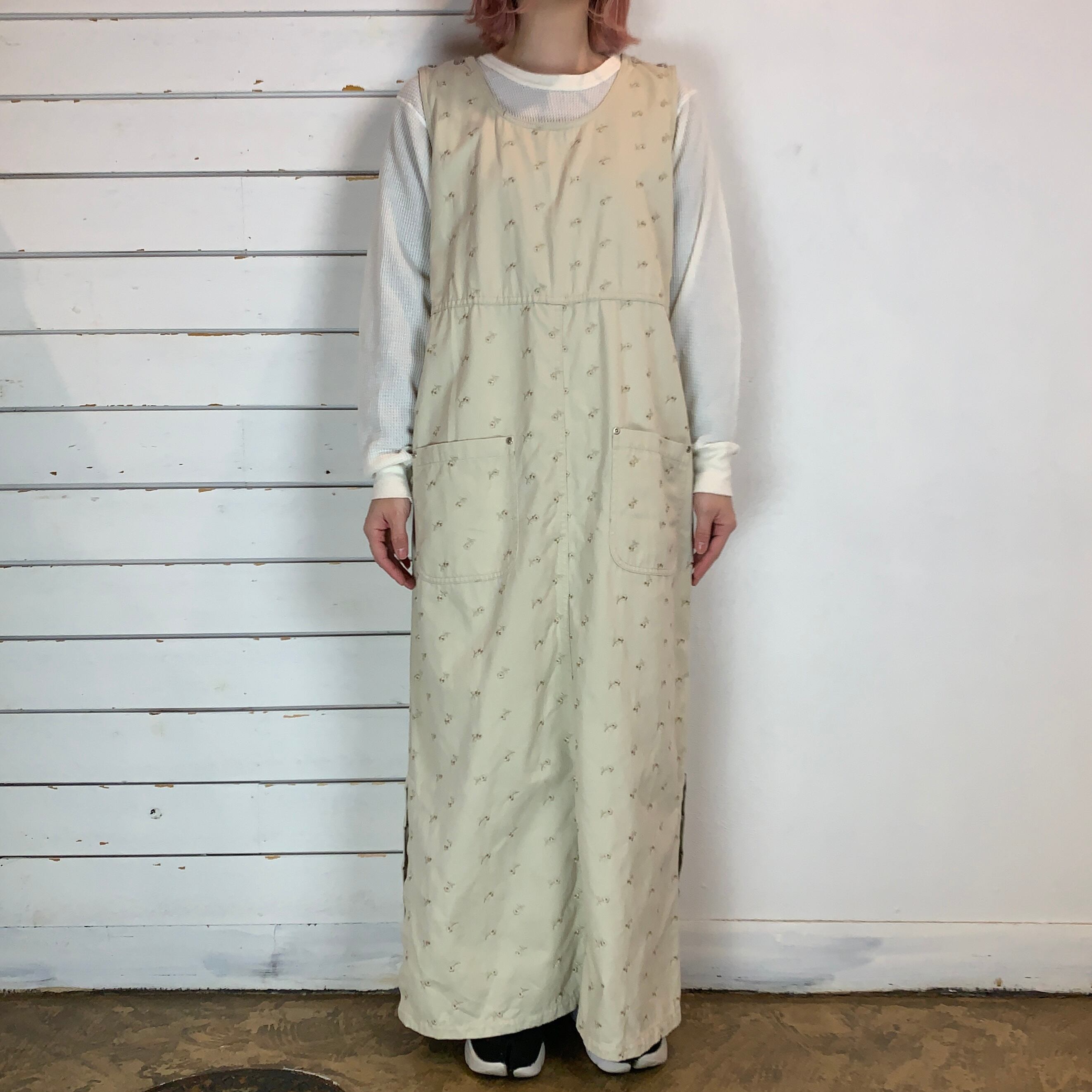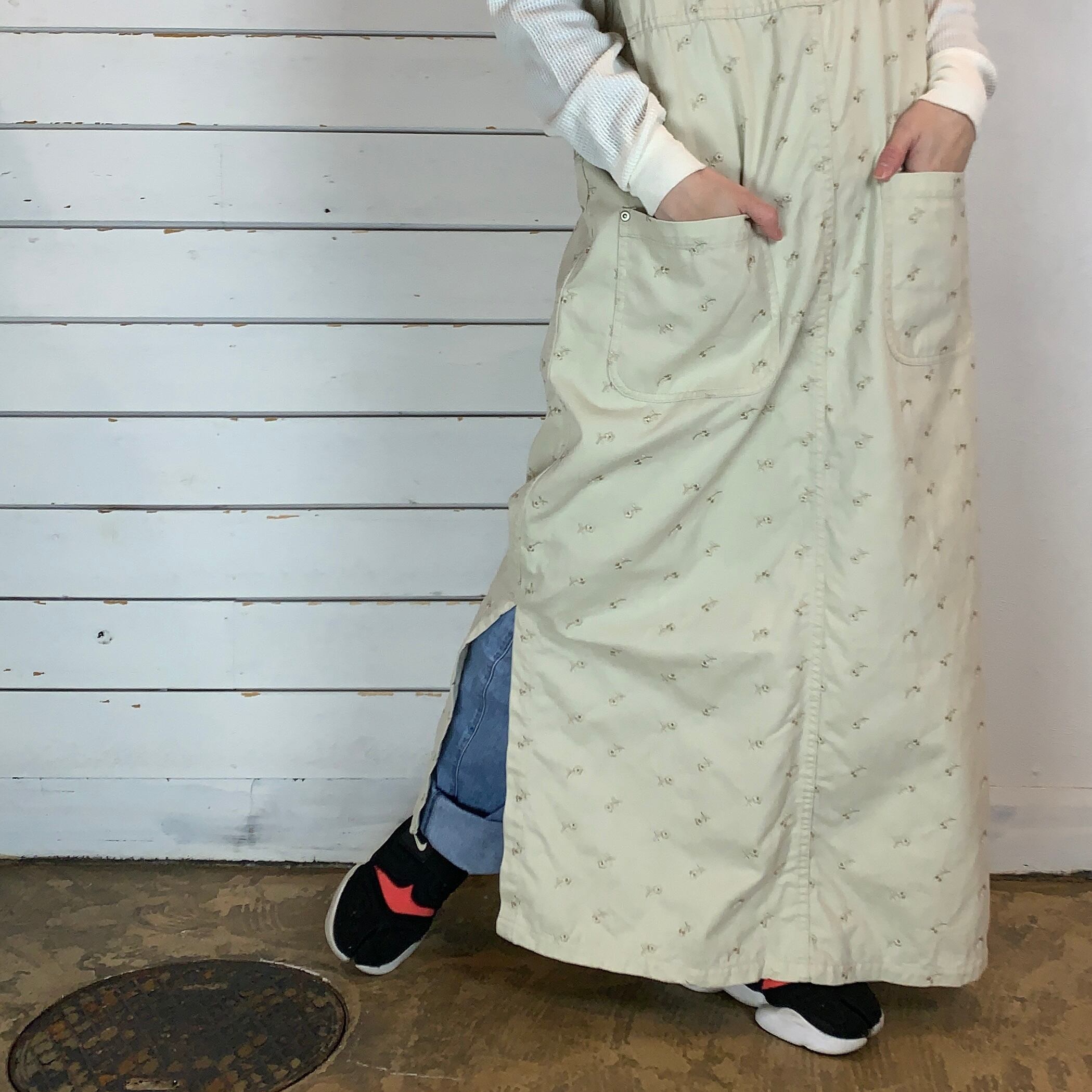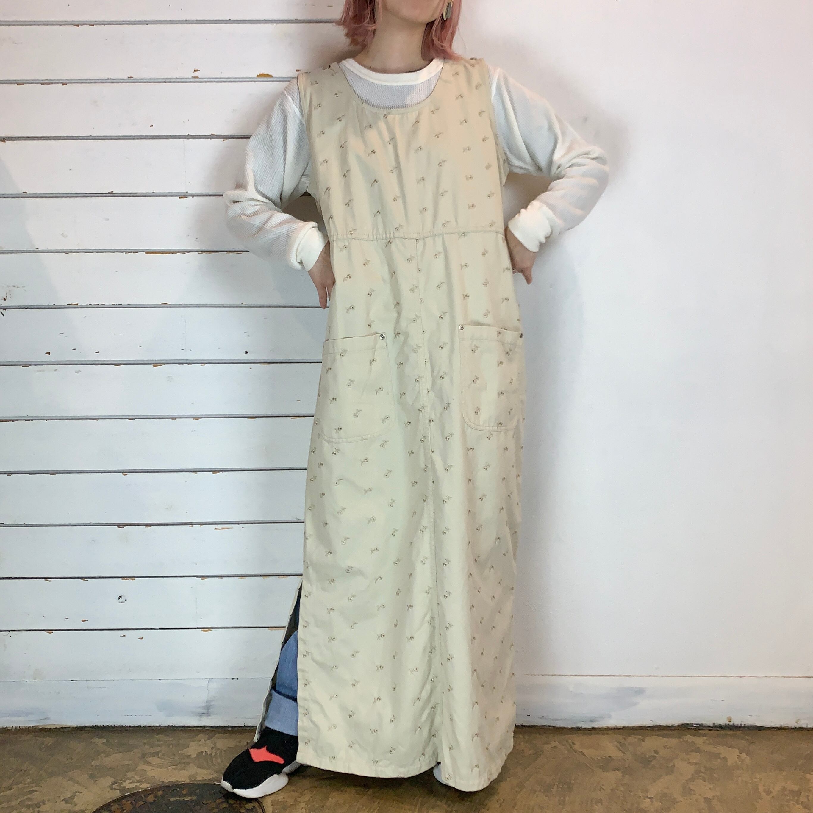 大きめのポケット、両サイドにスリット入りで動きやすくリラクシングなワンピース