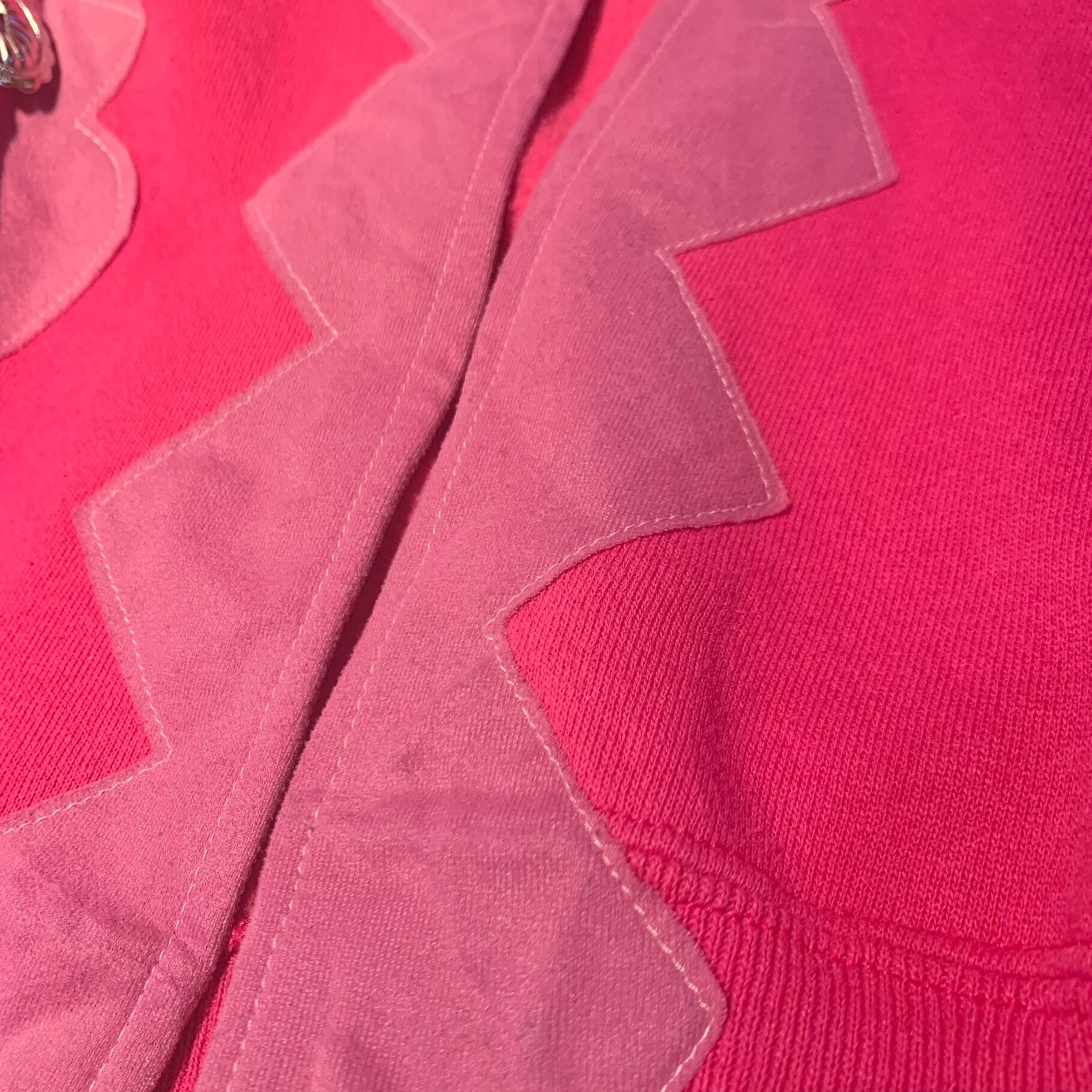 ビビッドピンクのスウェットをリメイクされたスウェットカーディガン
