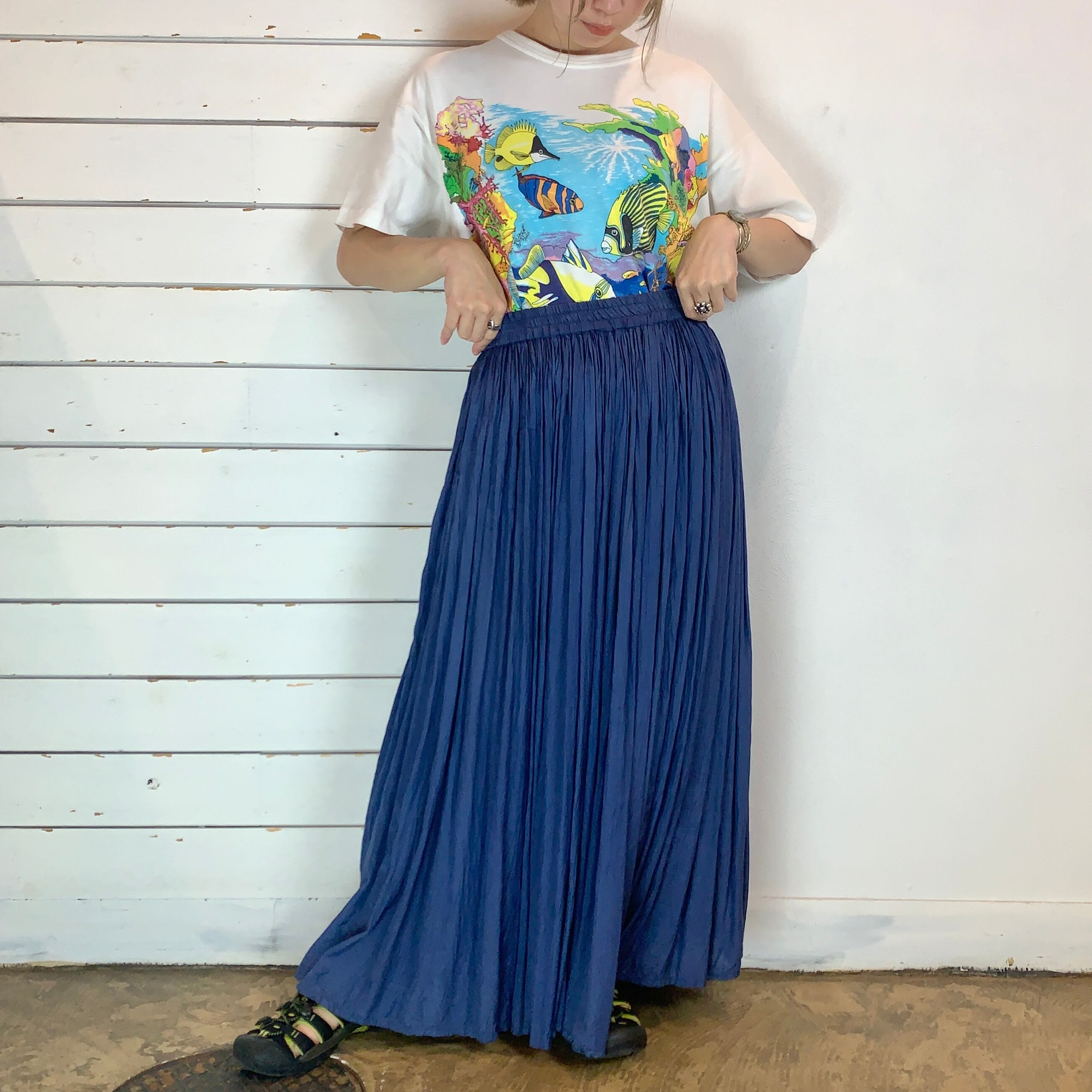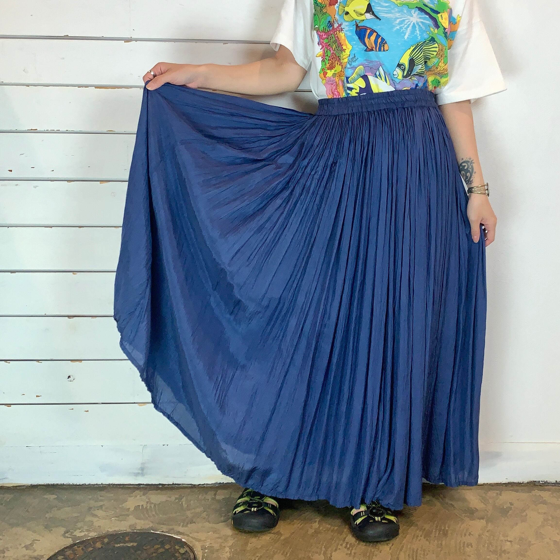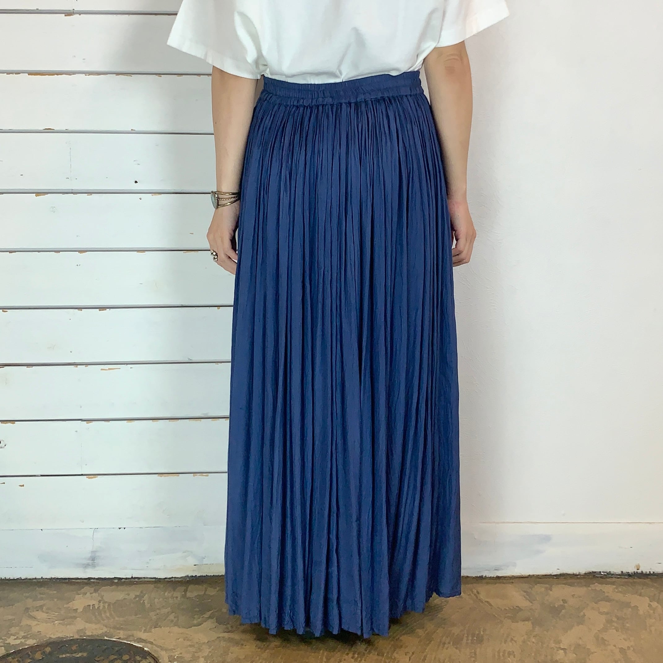 くすんだブルーのワッシャースカート
