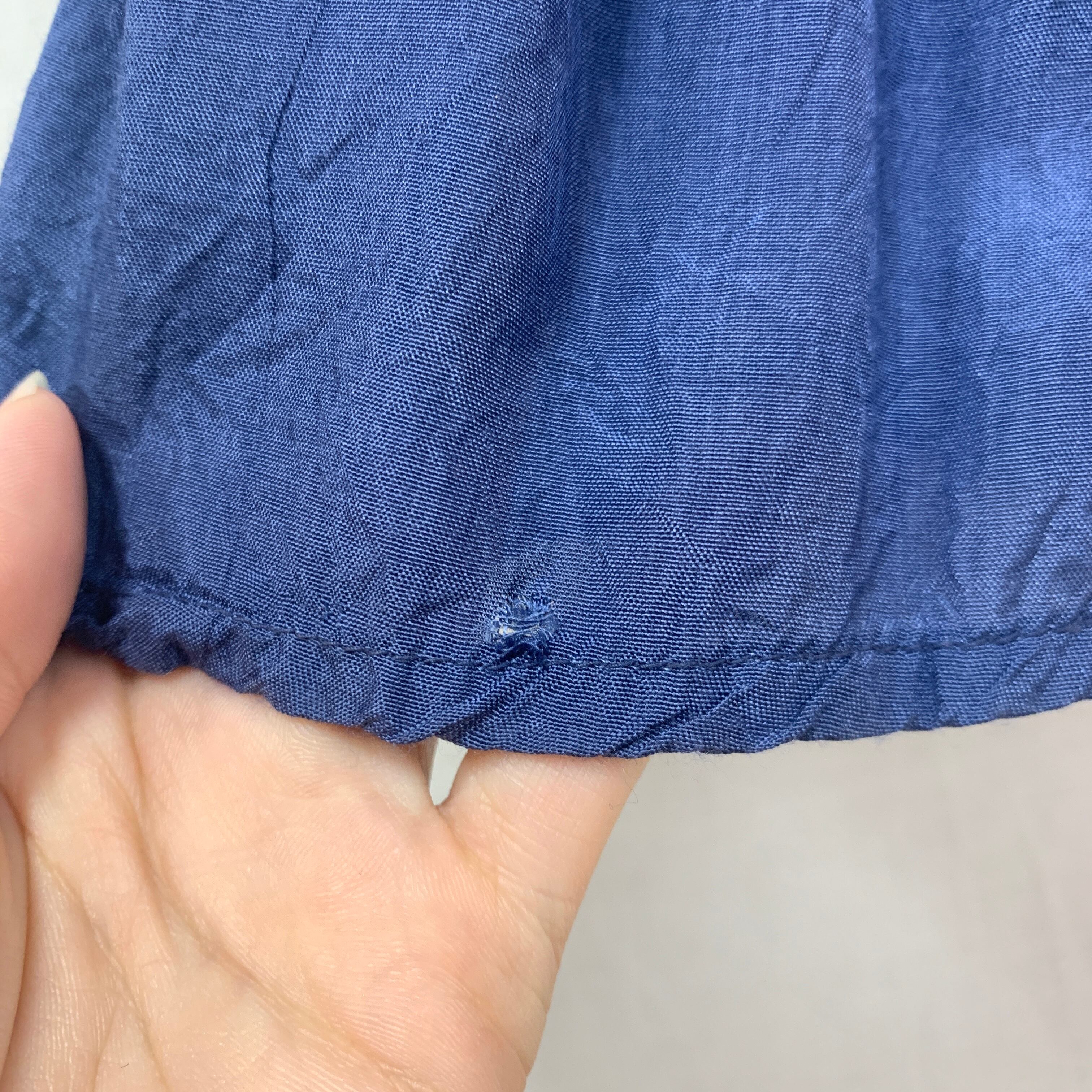 前中央の裾、右サイド縫い目あたりにダメージがございます。(写真13枚目〜)
