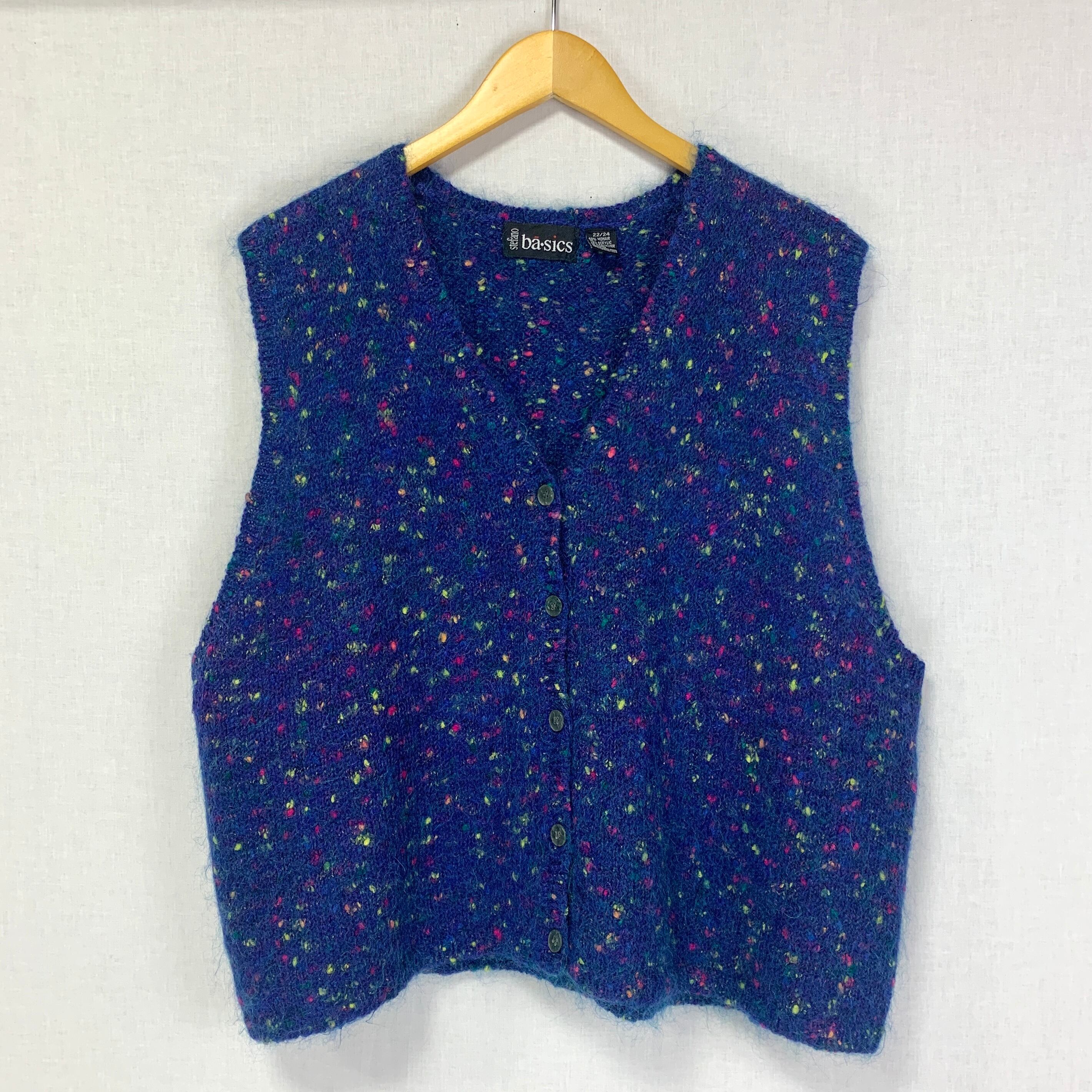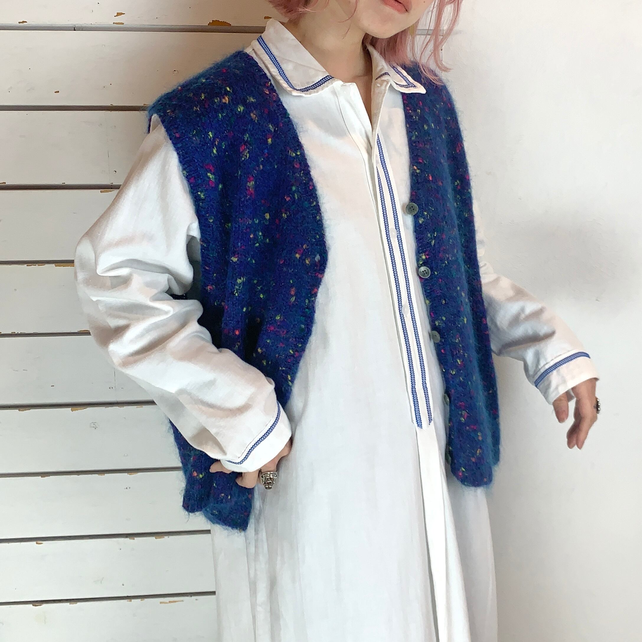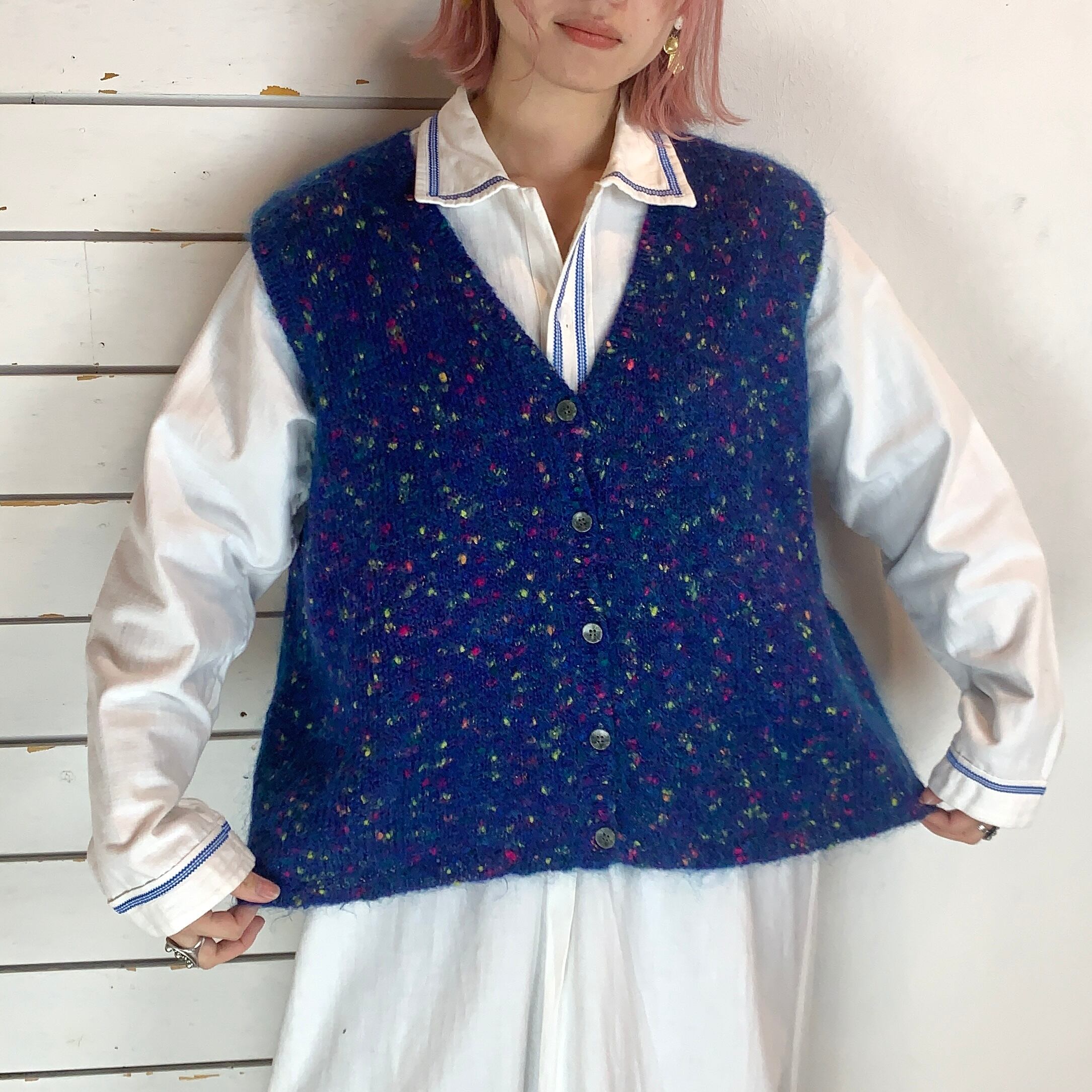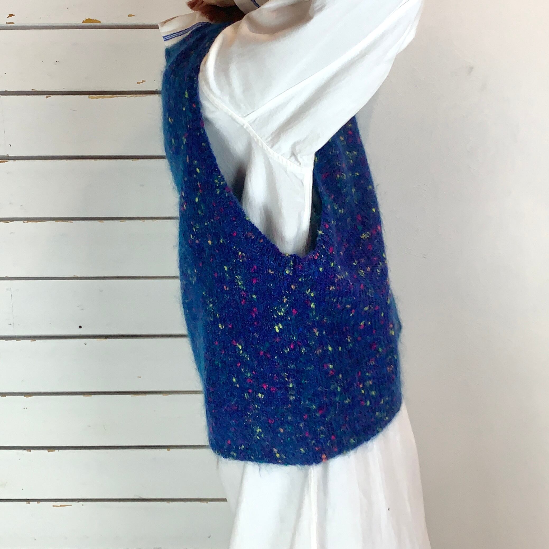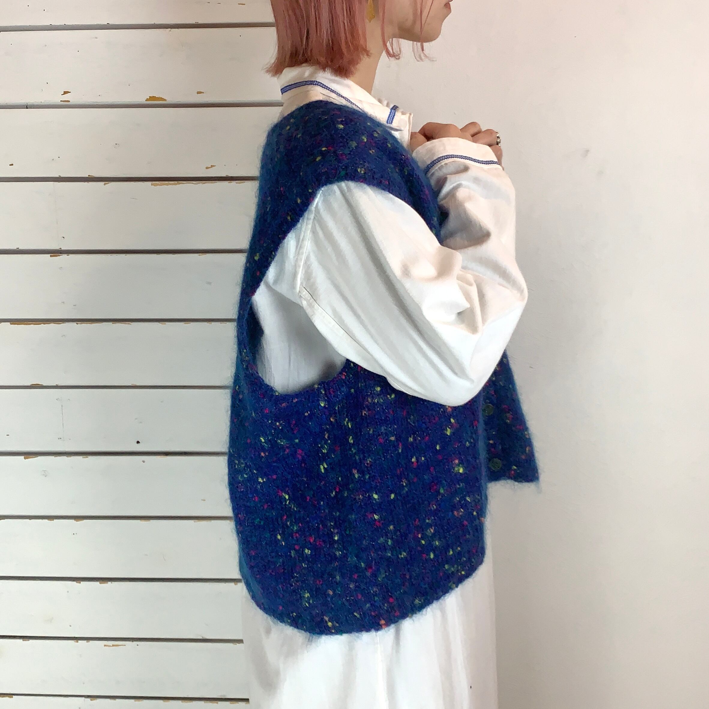鮮やかなロイヤルブルーにカラフルなネップが入ったニットベスト