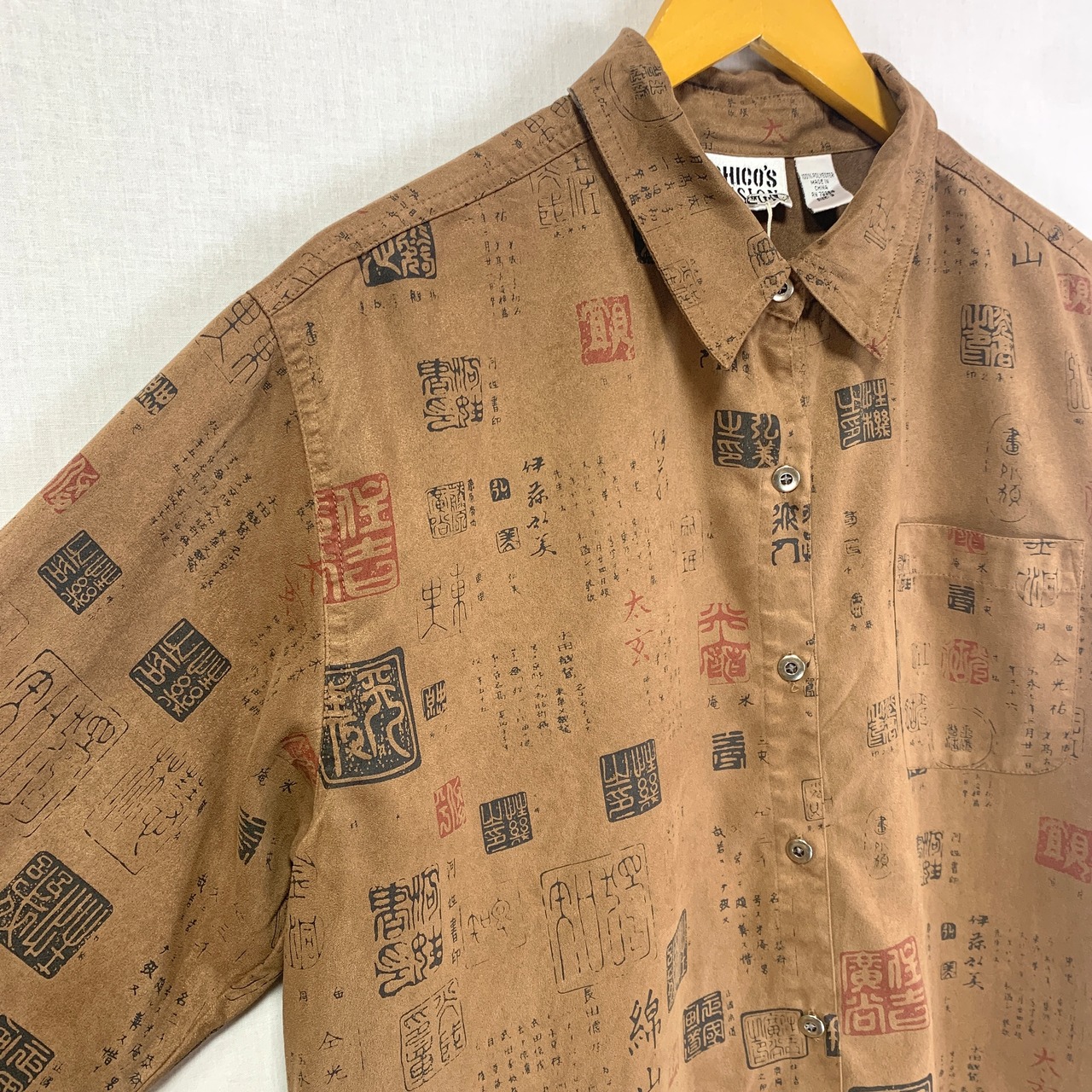 90s / kanji print fake suède shirt