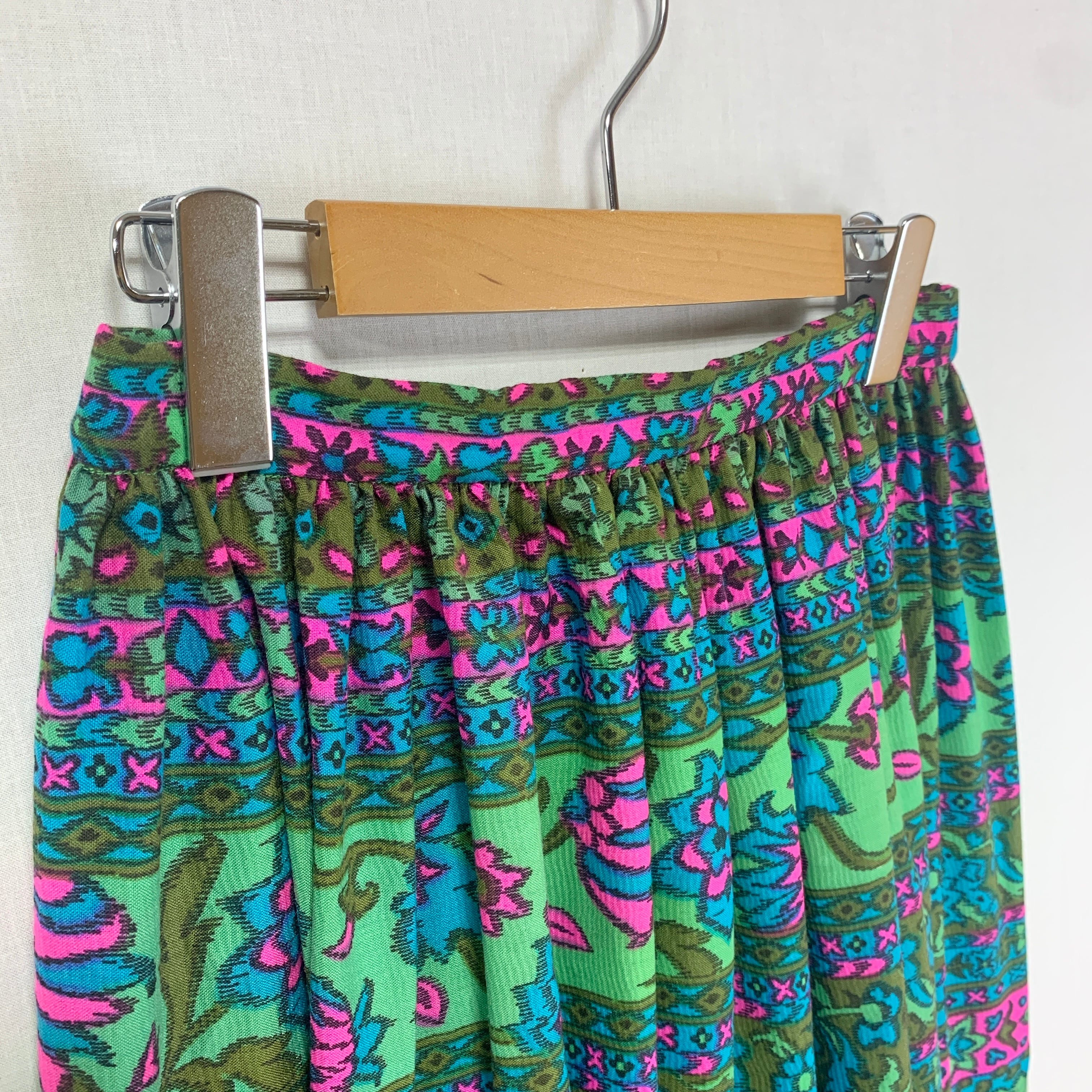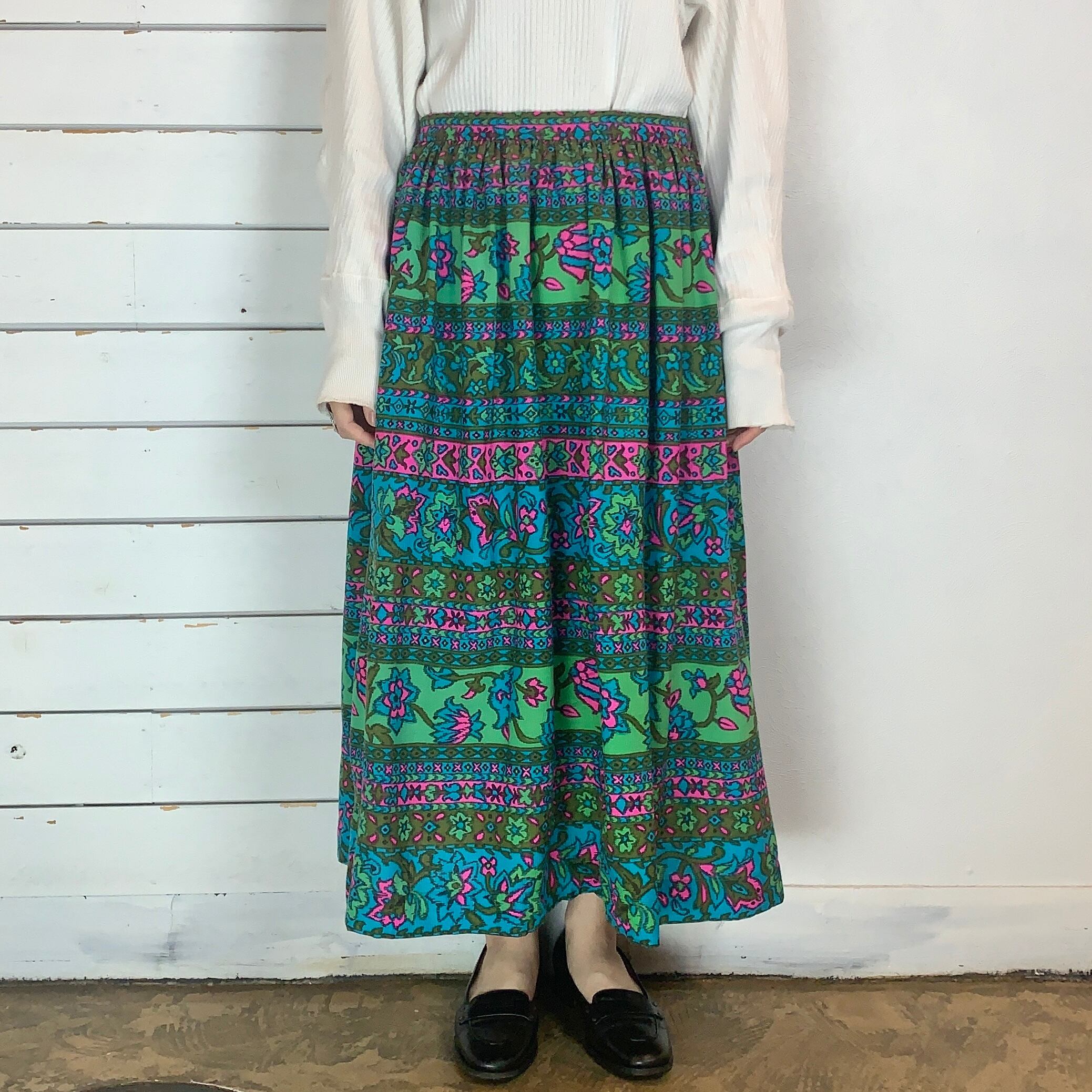 USA / 70-80s art print gather skirt
