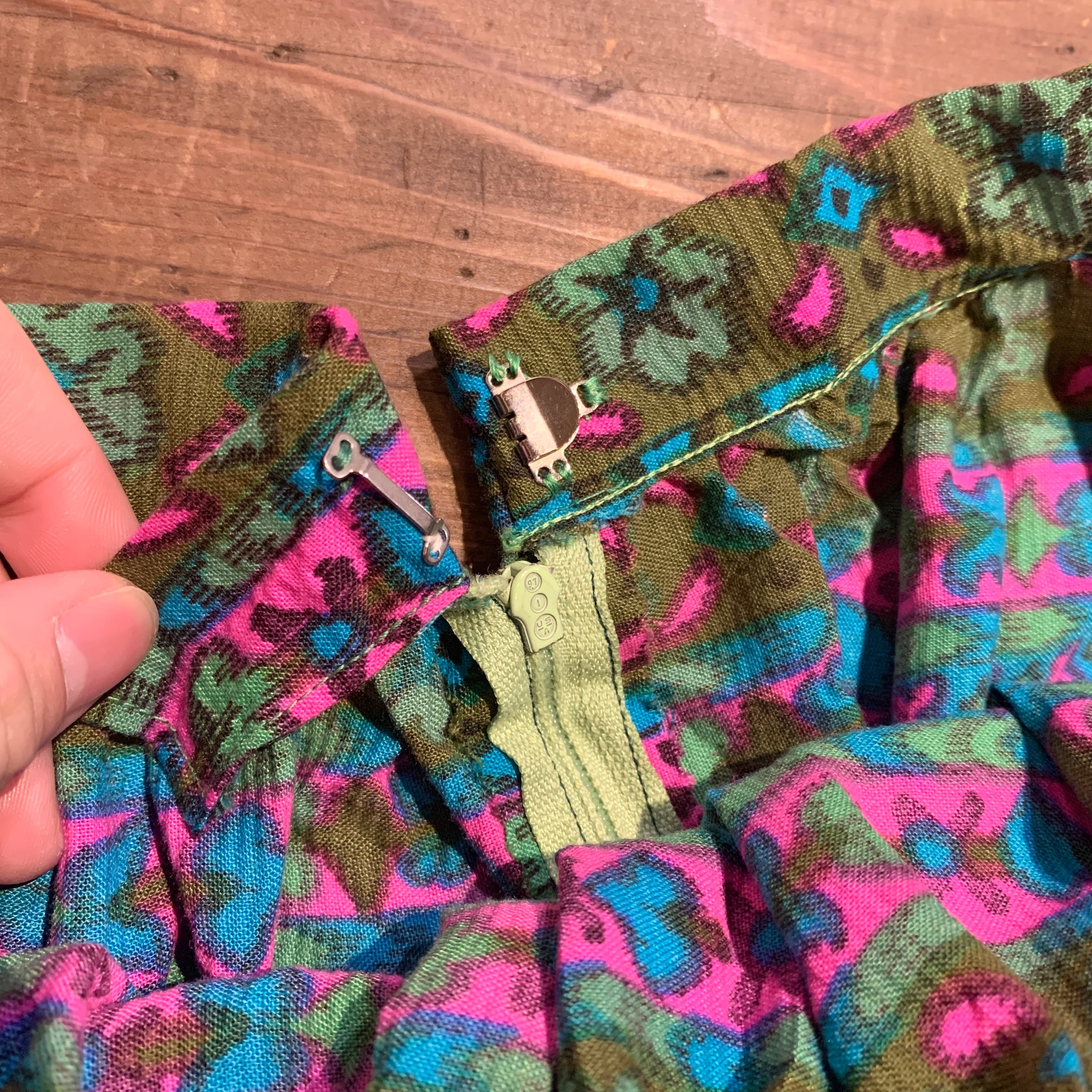 サイケデリックな配色にレトロなお花アートが素敵なギャザースカート