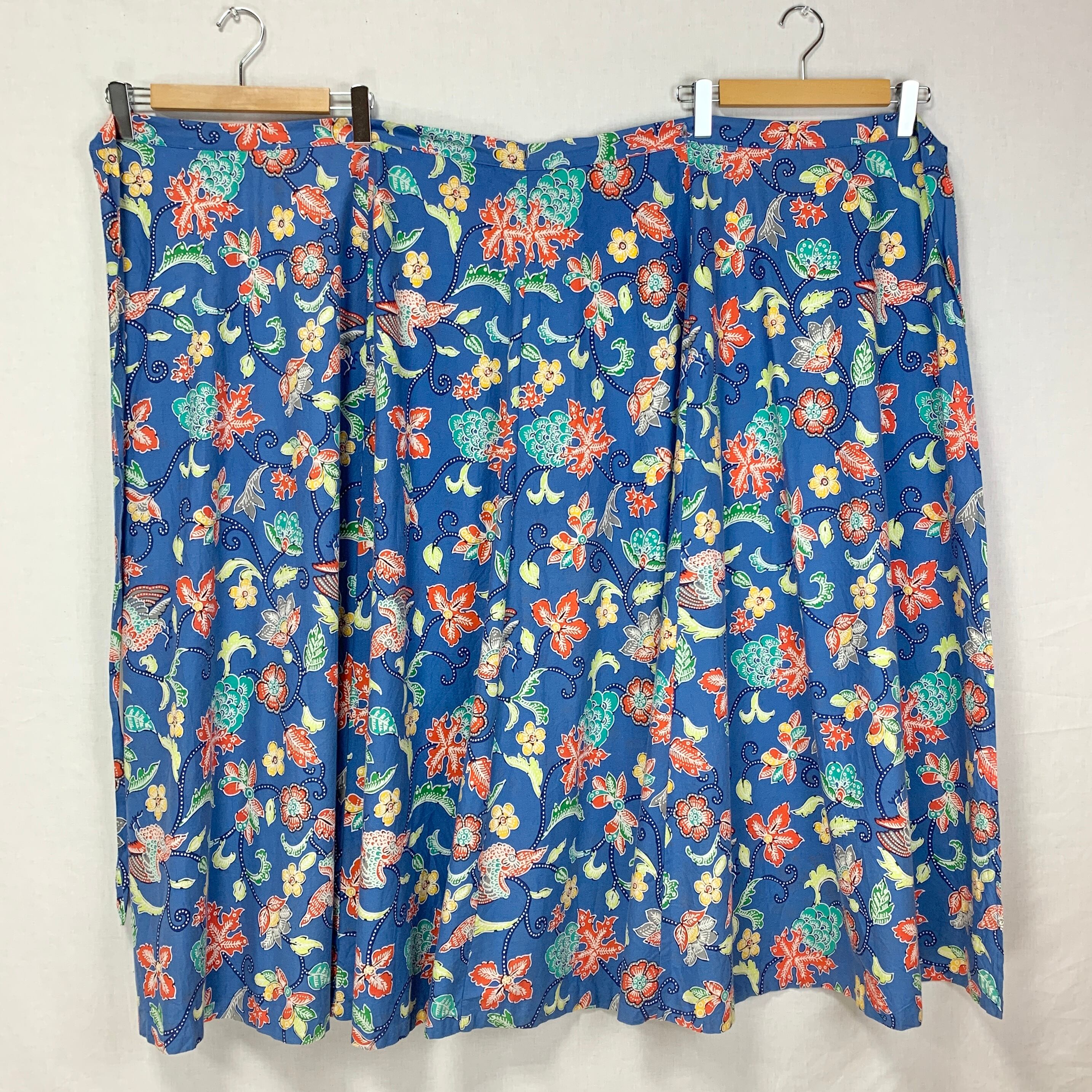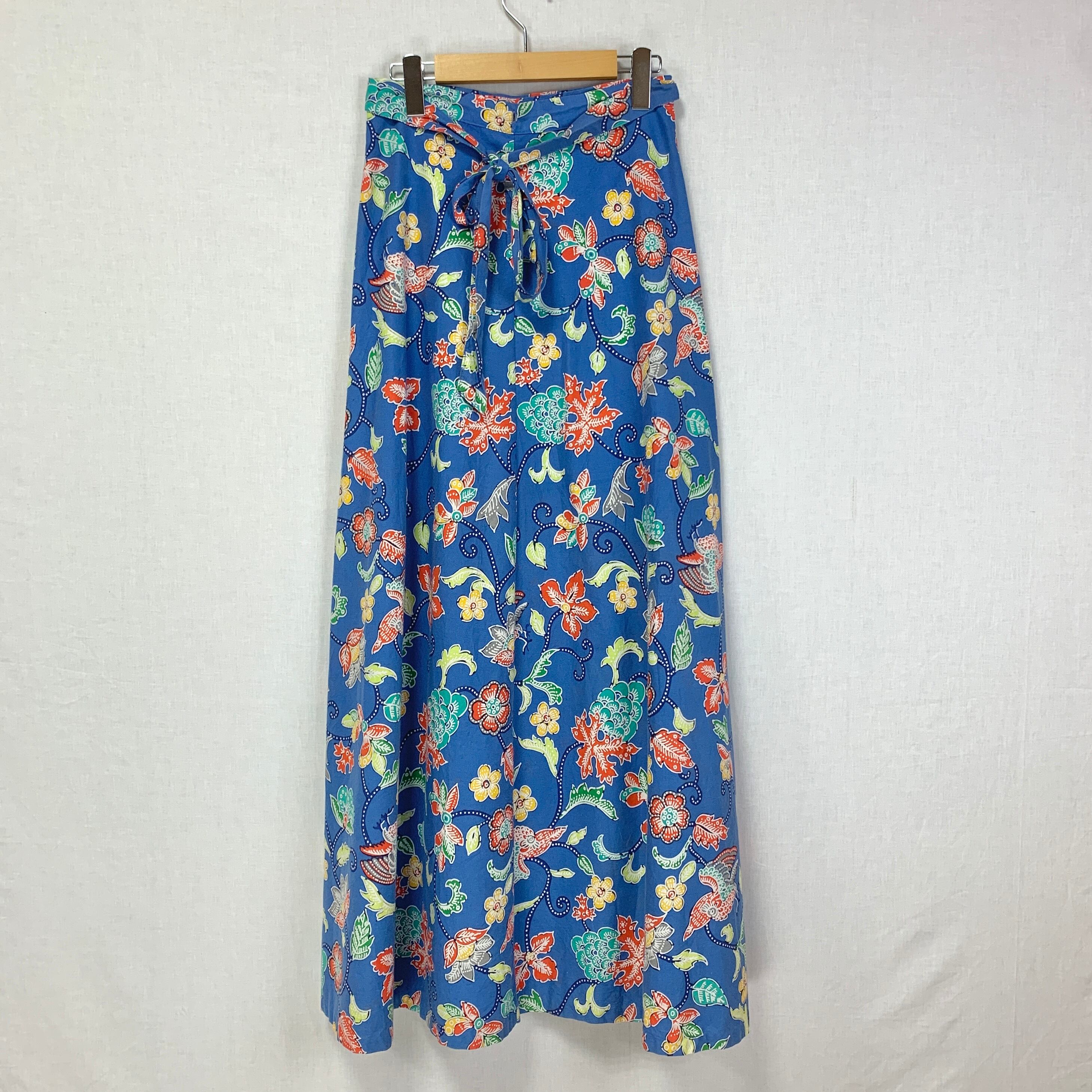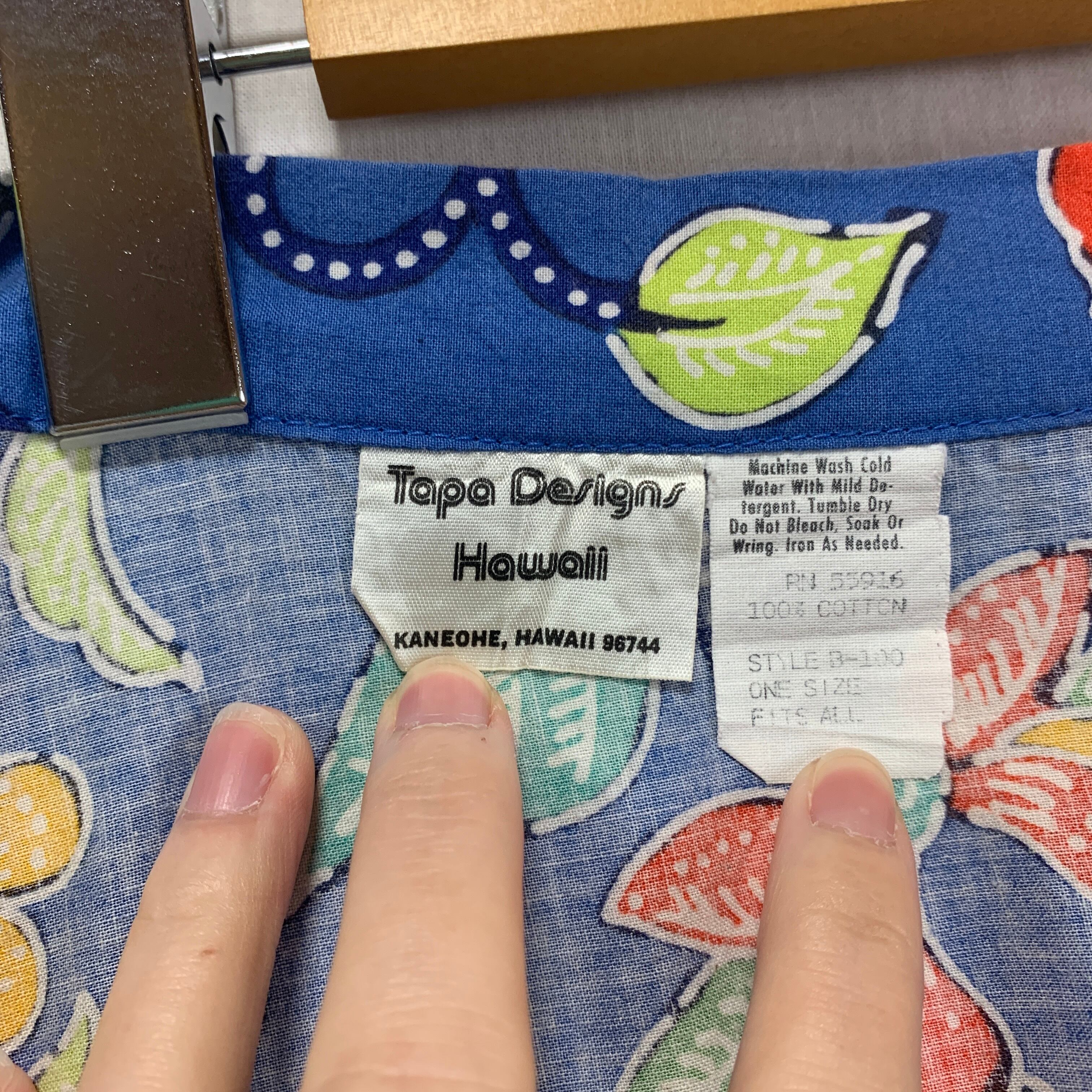 くすんだブルーに大判バティック柄のハワイアンスカート