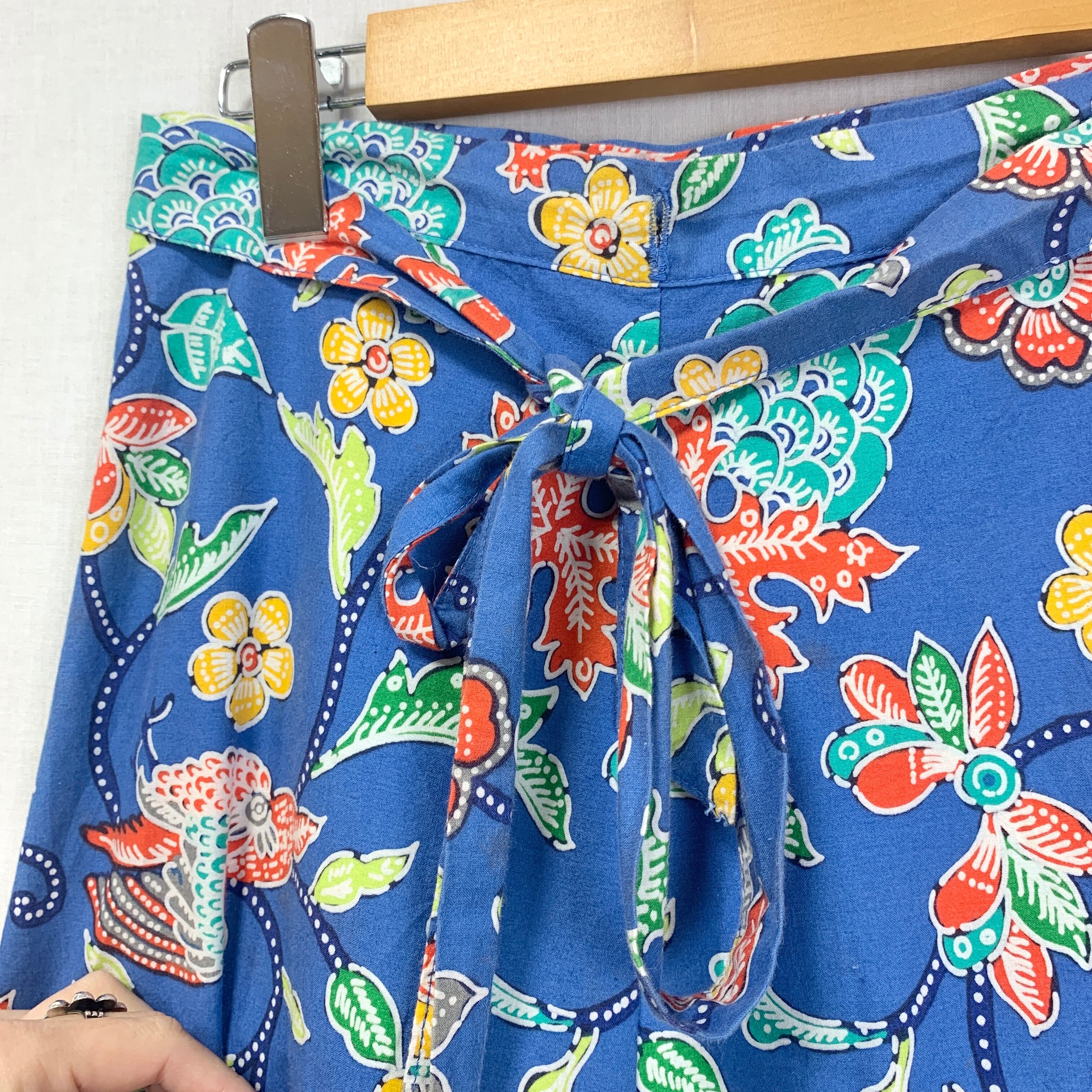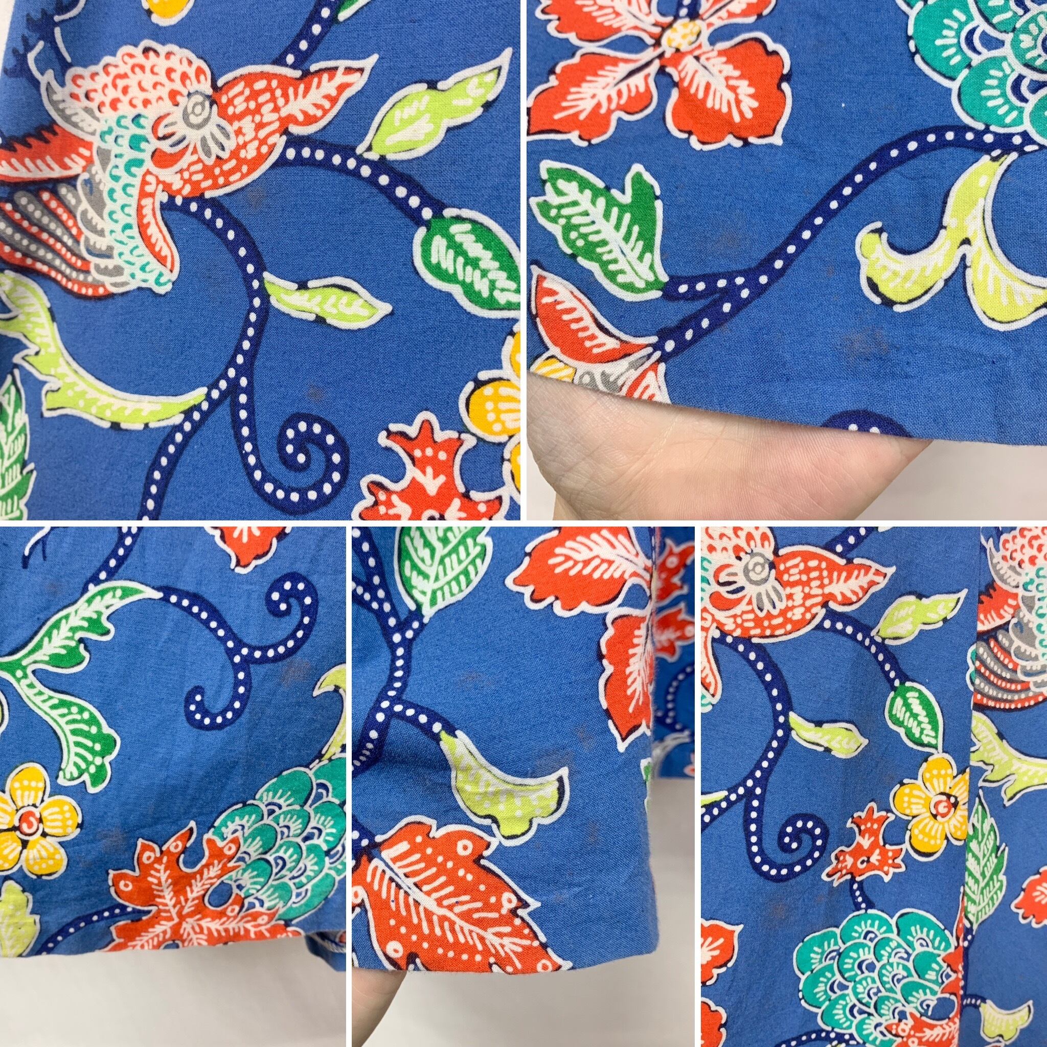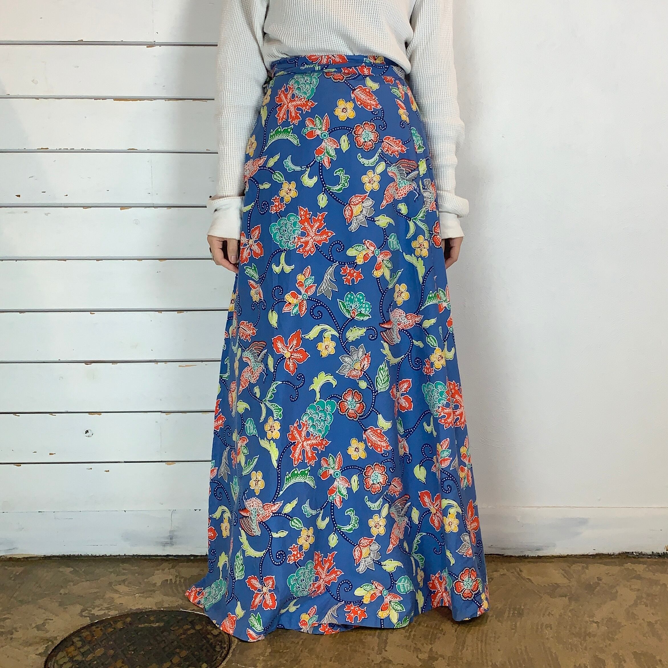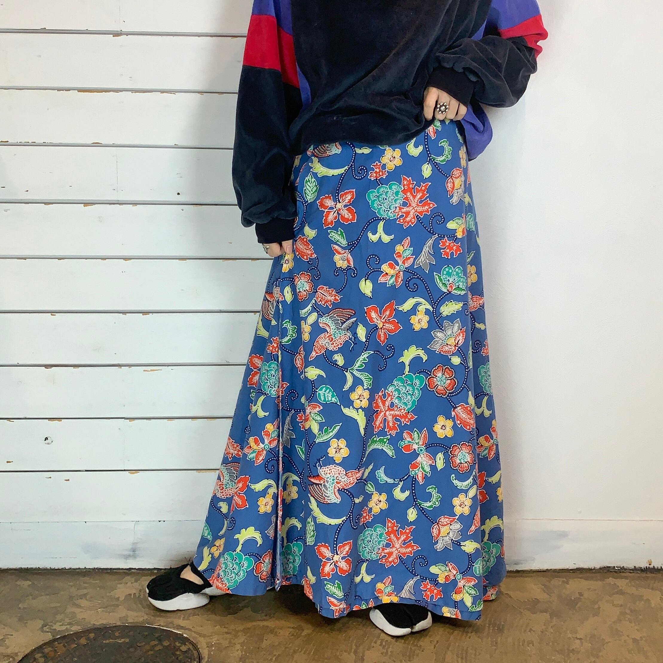 くすんだブルーに大判バティック柄のハワイアンスカート