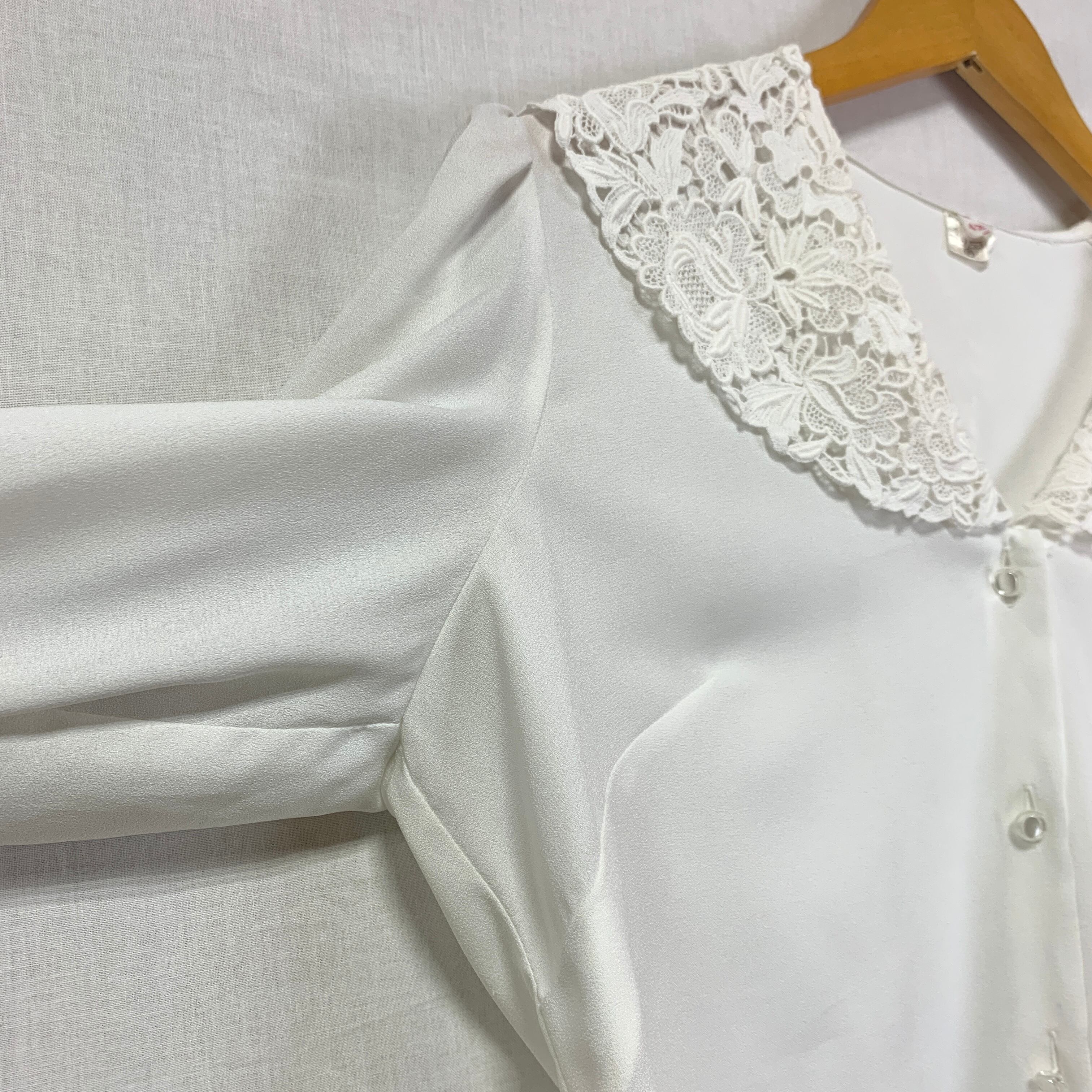 Euro / lace collar white blouse