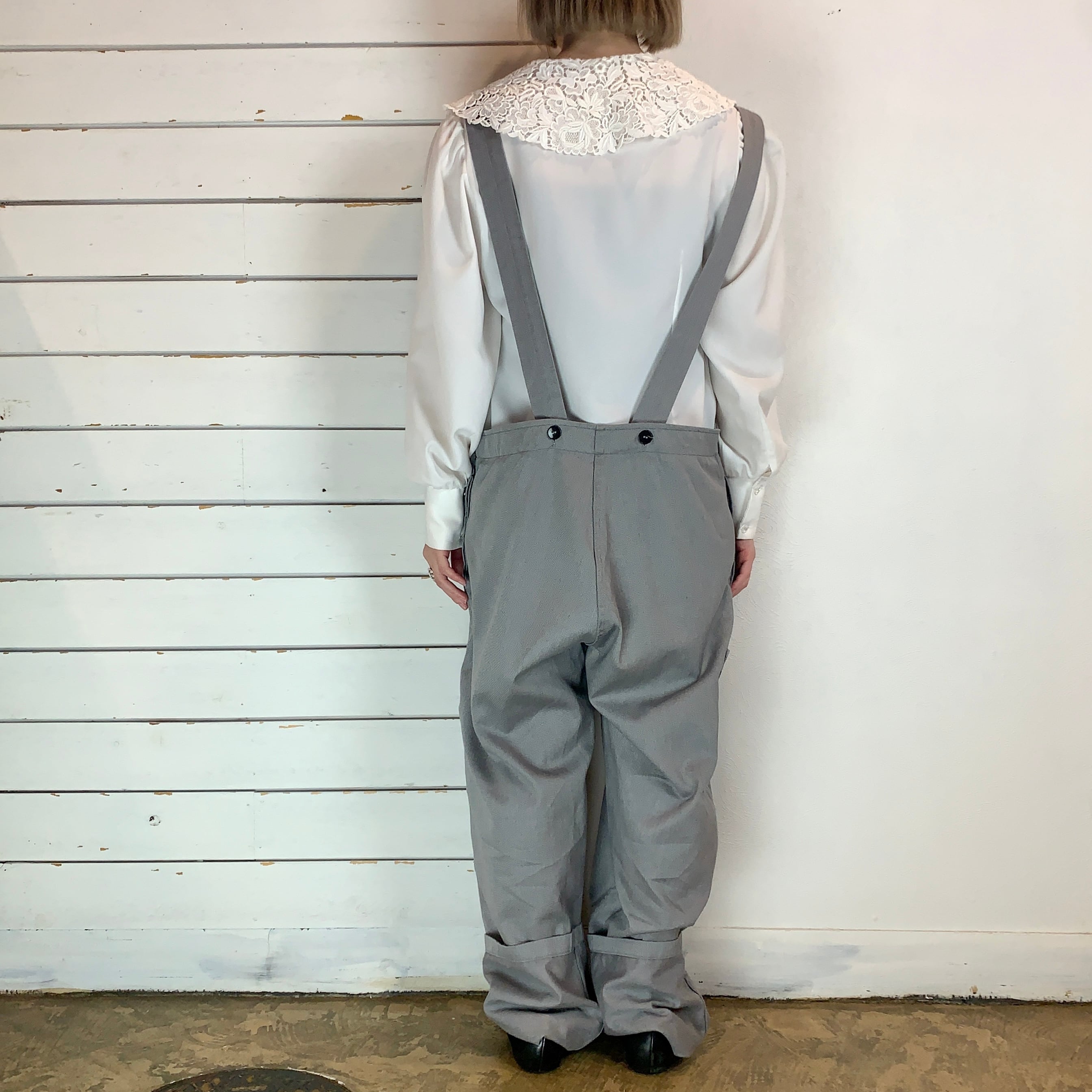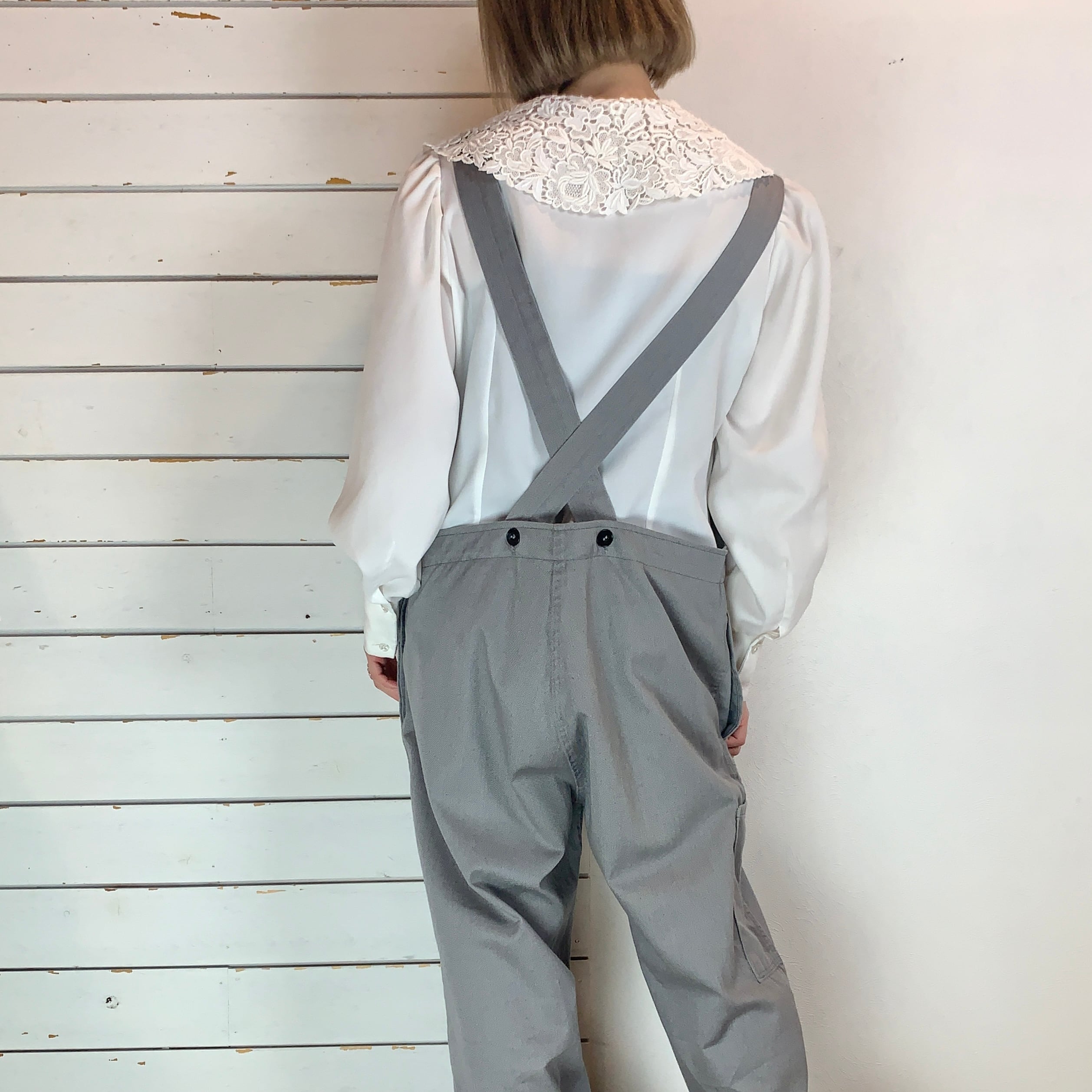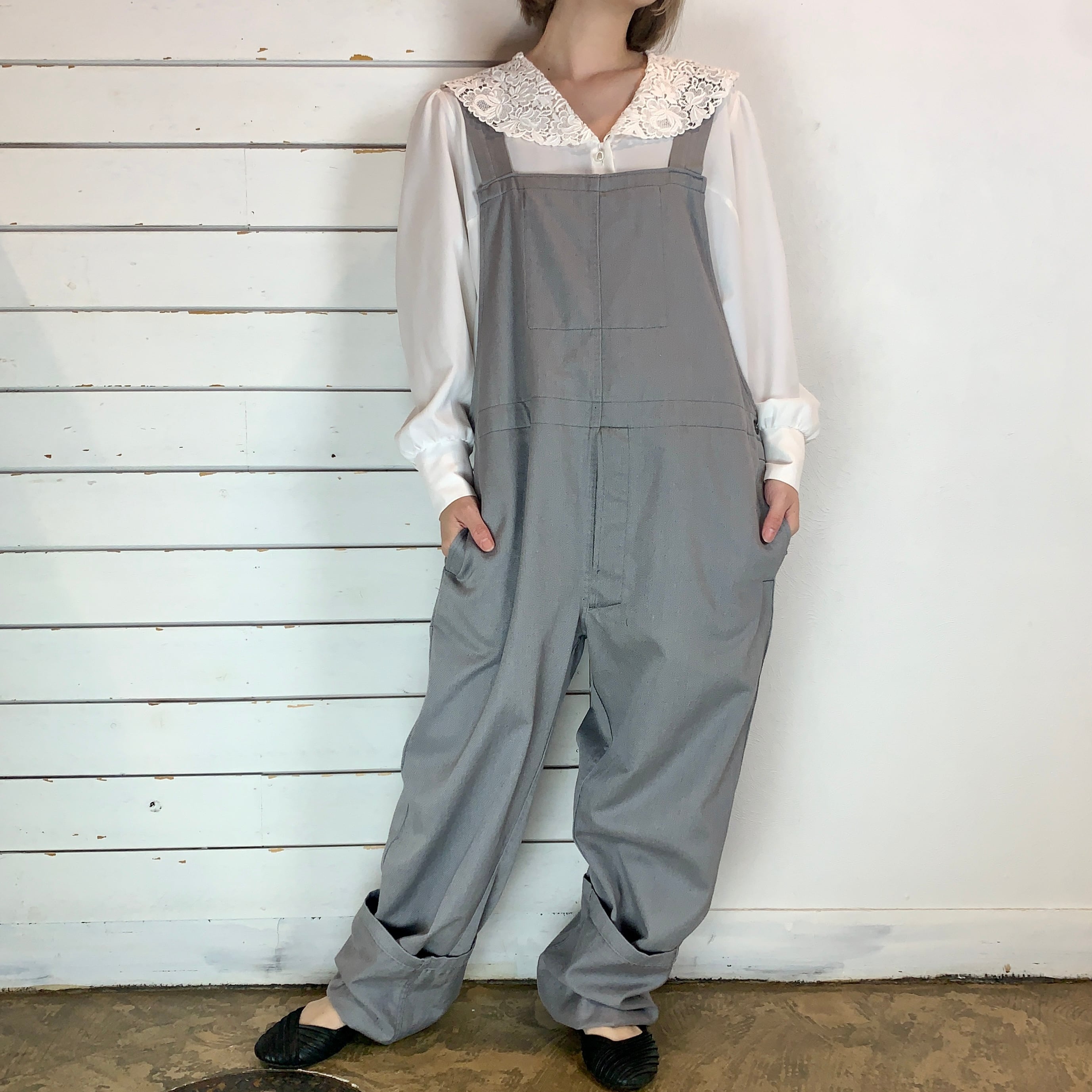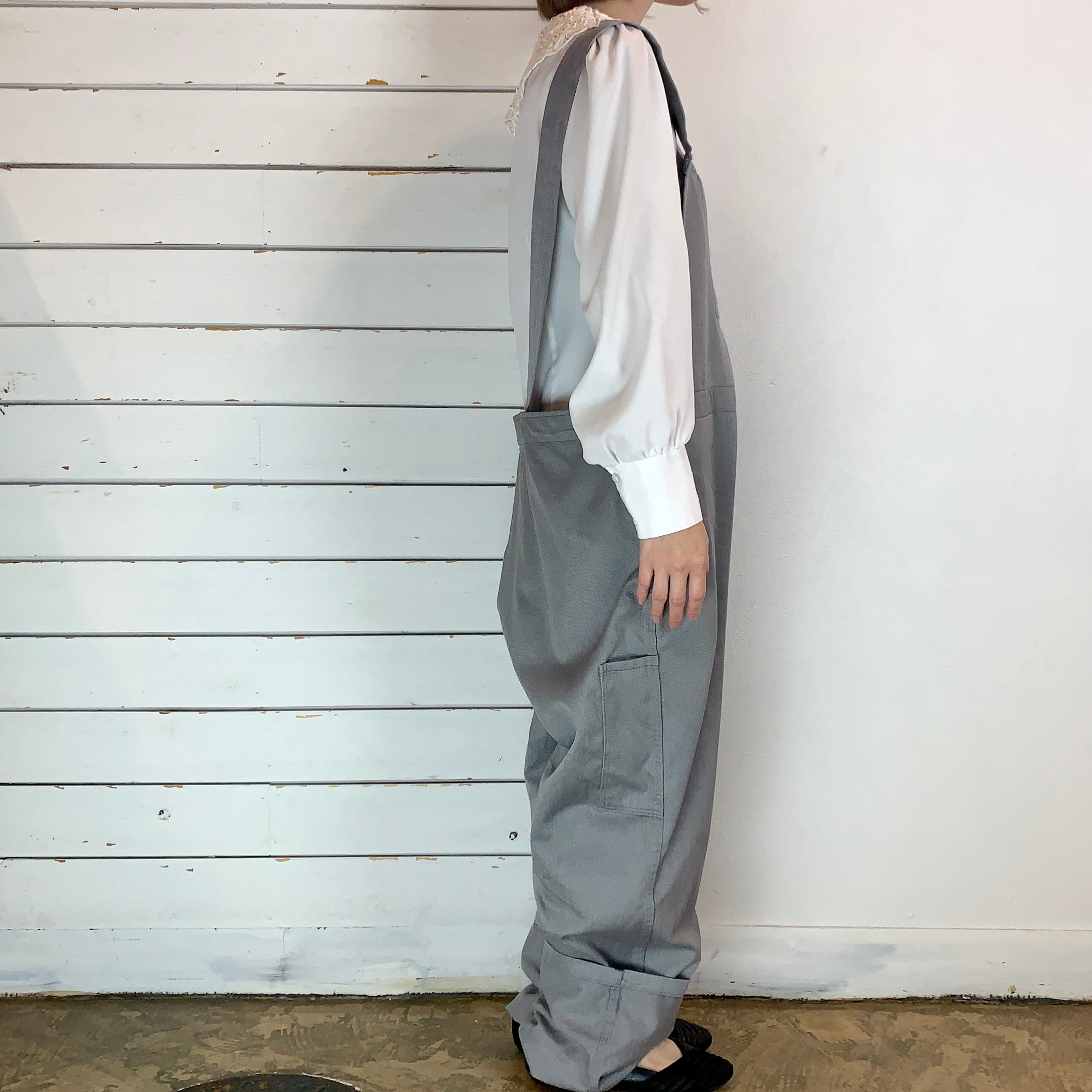 淡めグレーのユーロワークのオーバーオール
