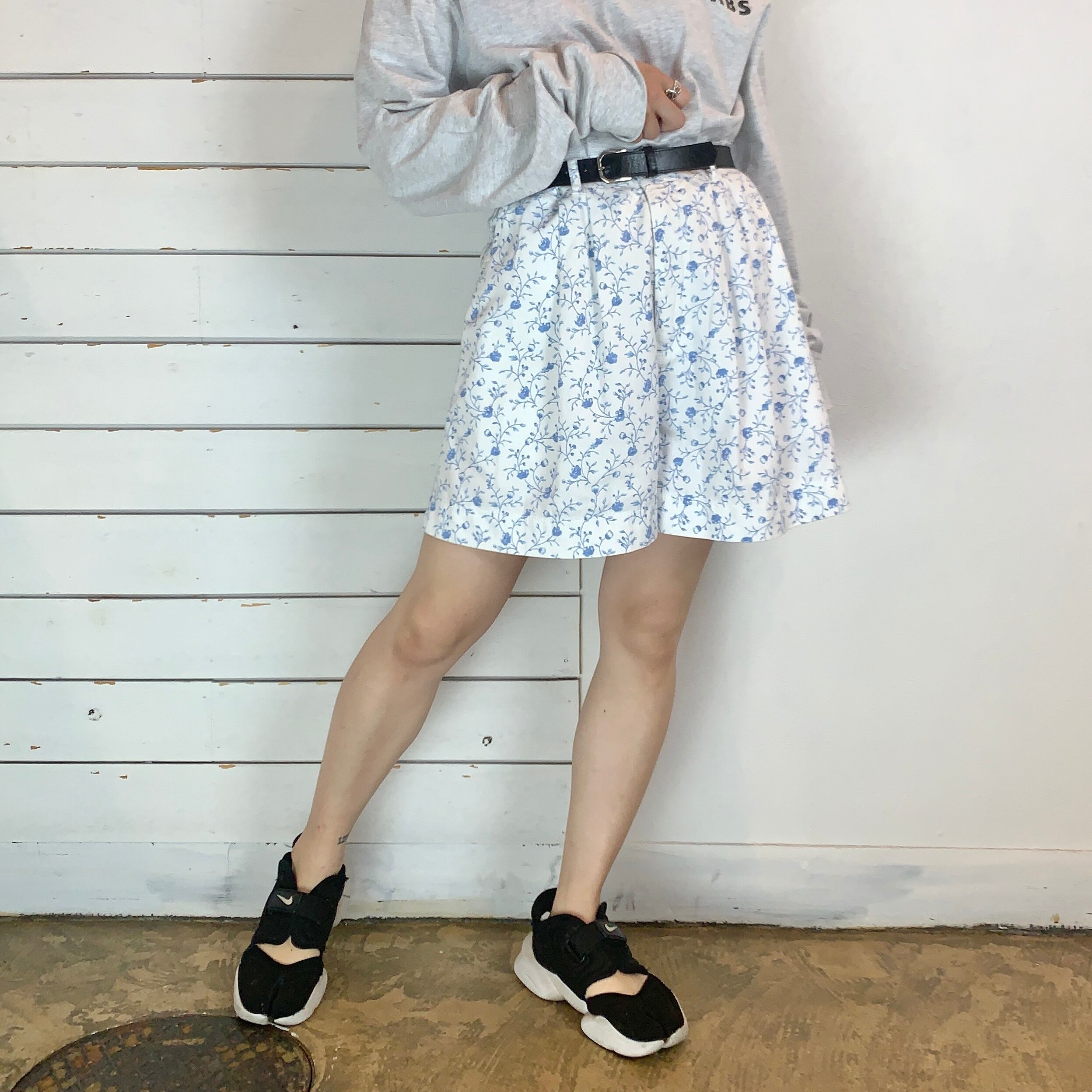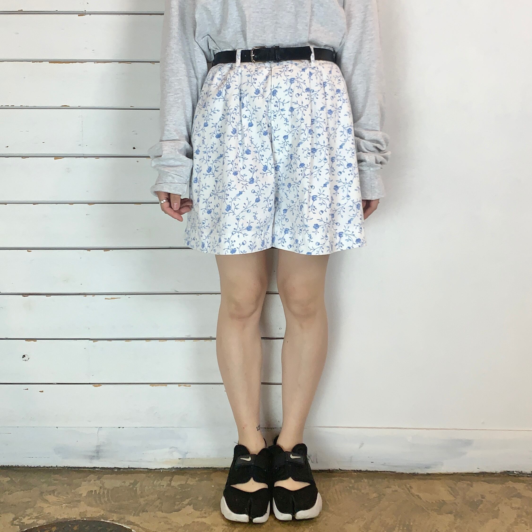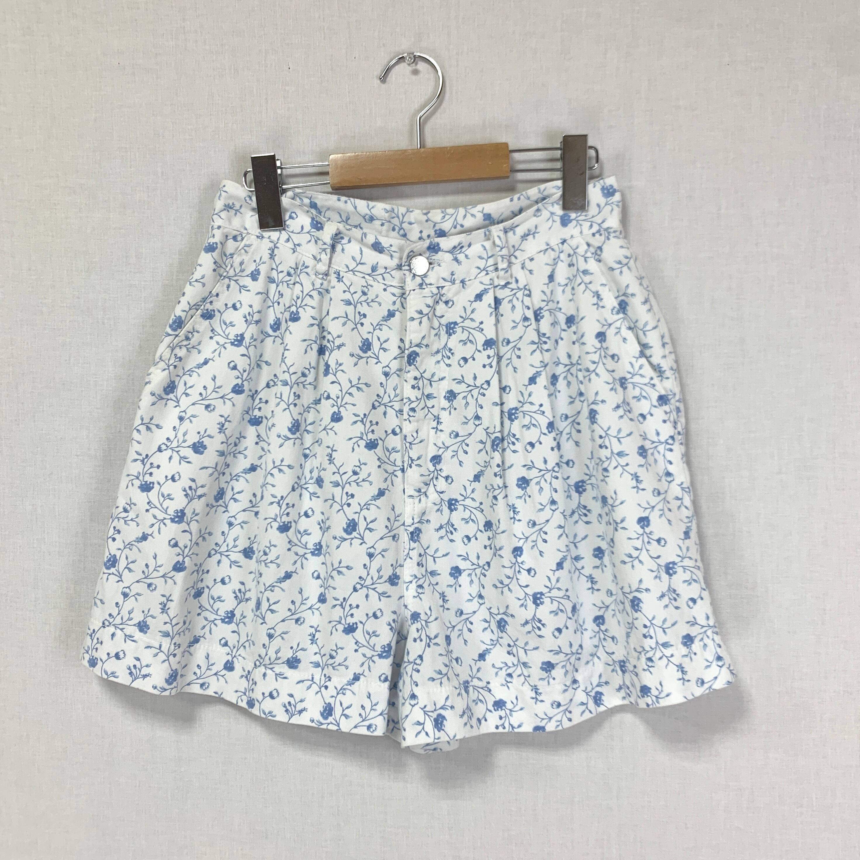 白ベースでカジュアルに着用しやすい大人めボタニカル柄ショーツ
