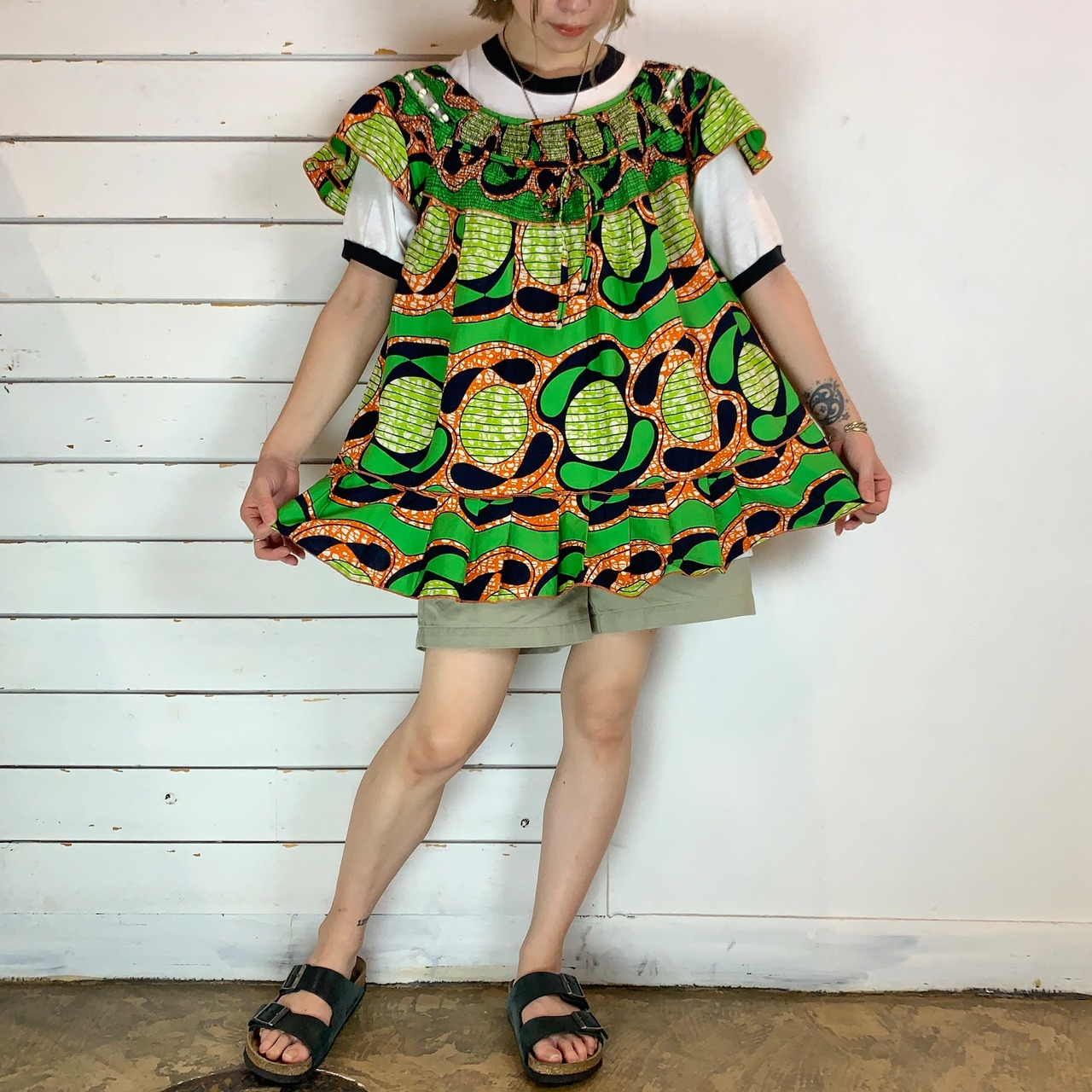 キミドリ×オレンジでアフリカンバティックらしい配色のトップス