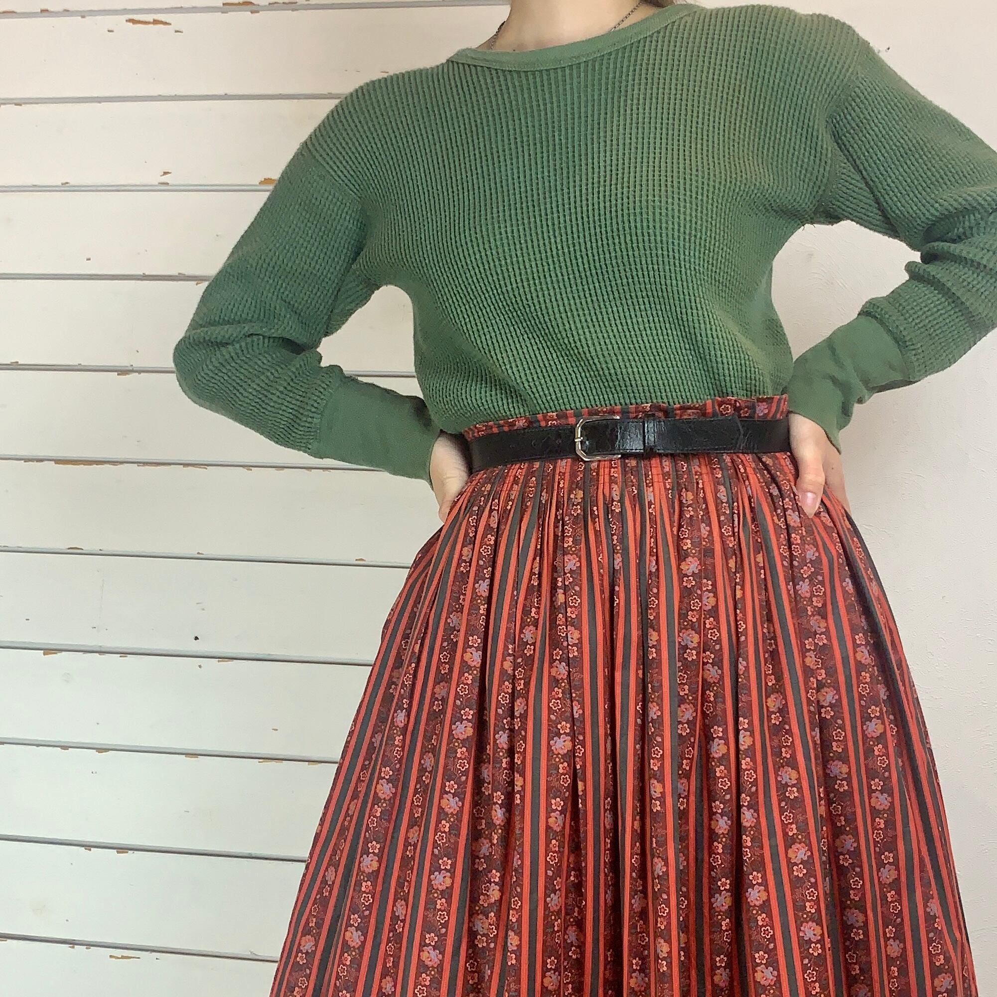 くすんだテラコッタ・オレンジ・抹茶カラーで秋冬全開なチロリアンスカート