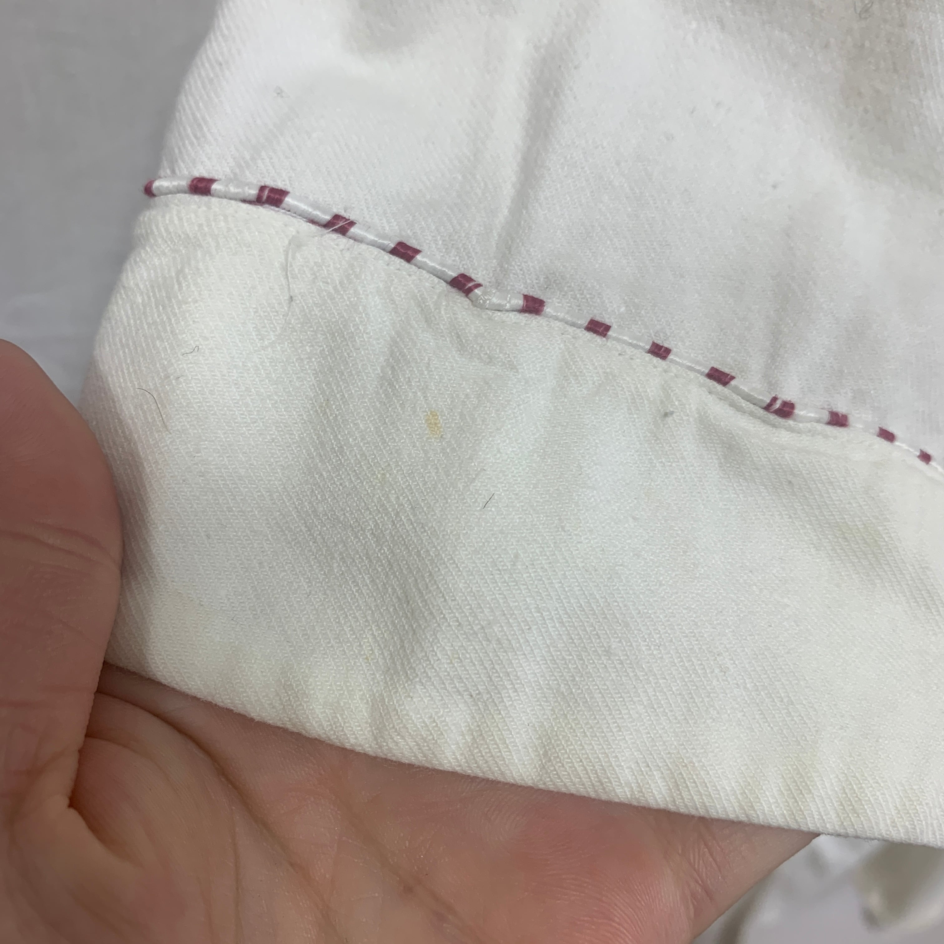 襟や袖にレッドステッチ、取り替えられたものもありますがボタンもかわいいのです❤︎