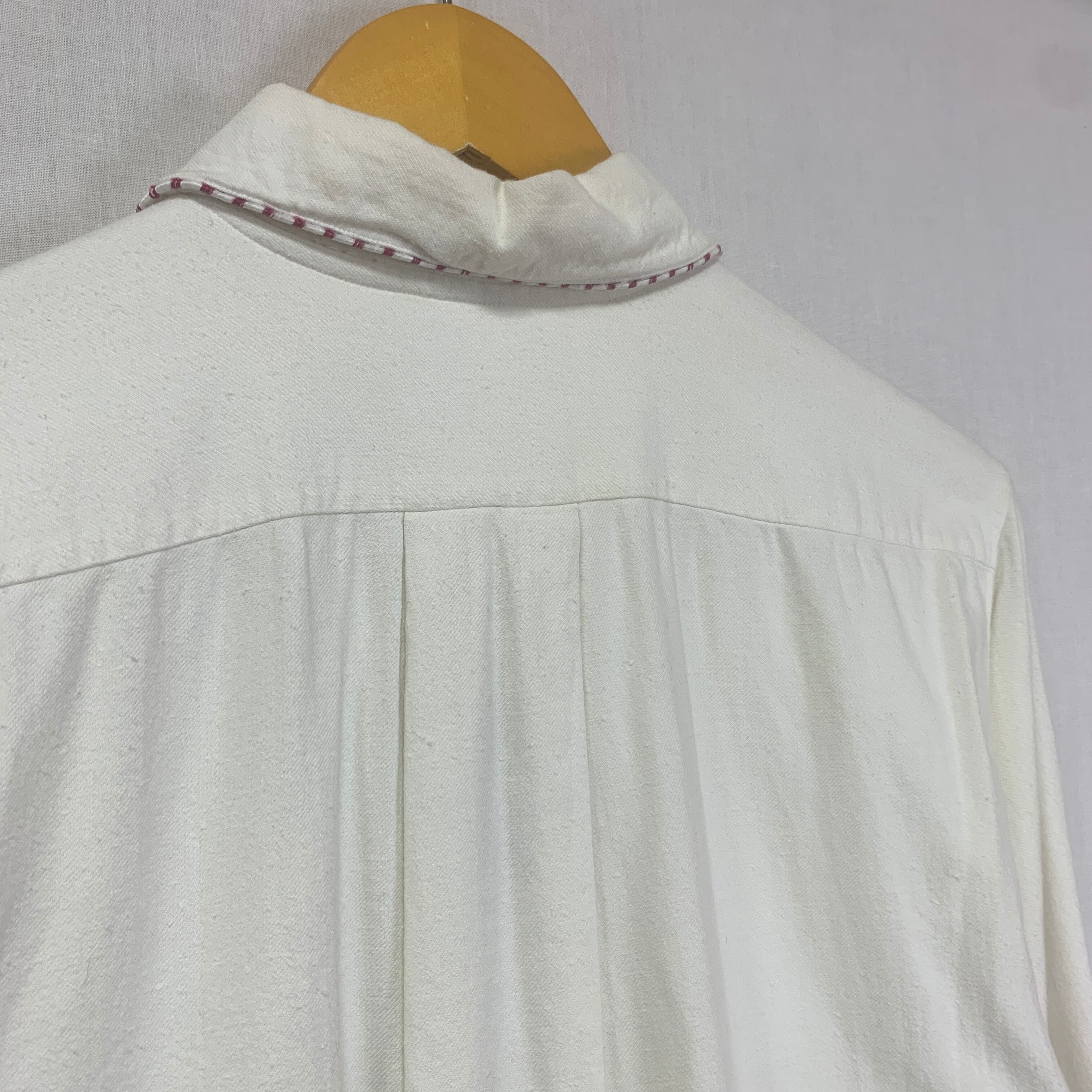 白ベースのシャツ型なのでカジュアルなスタイルに取り入れやすい◉