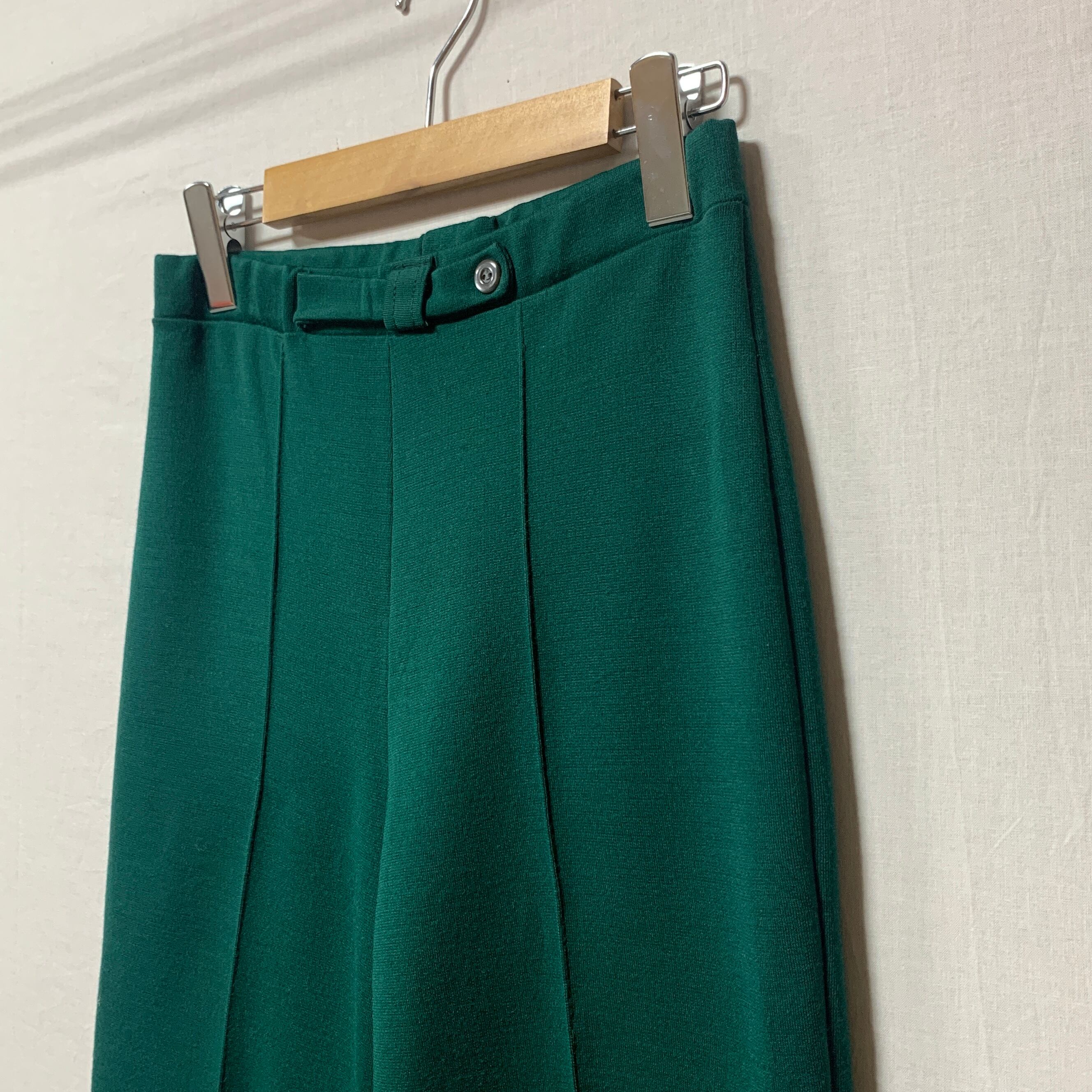 深めのグリーンカラーのポリパンツ