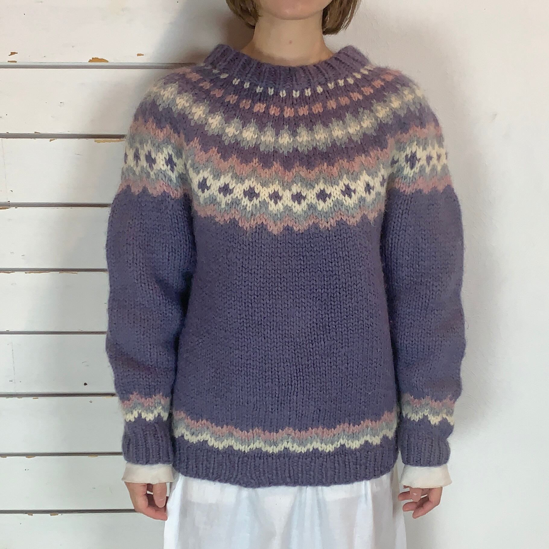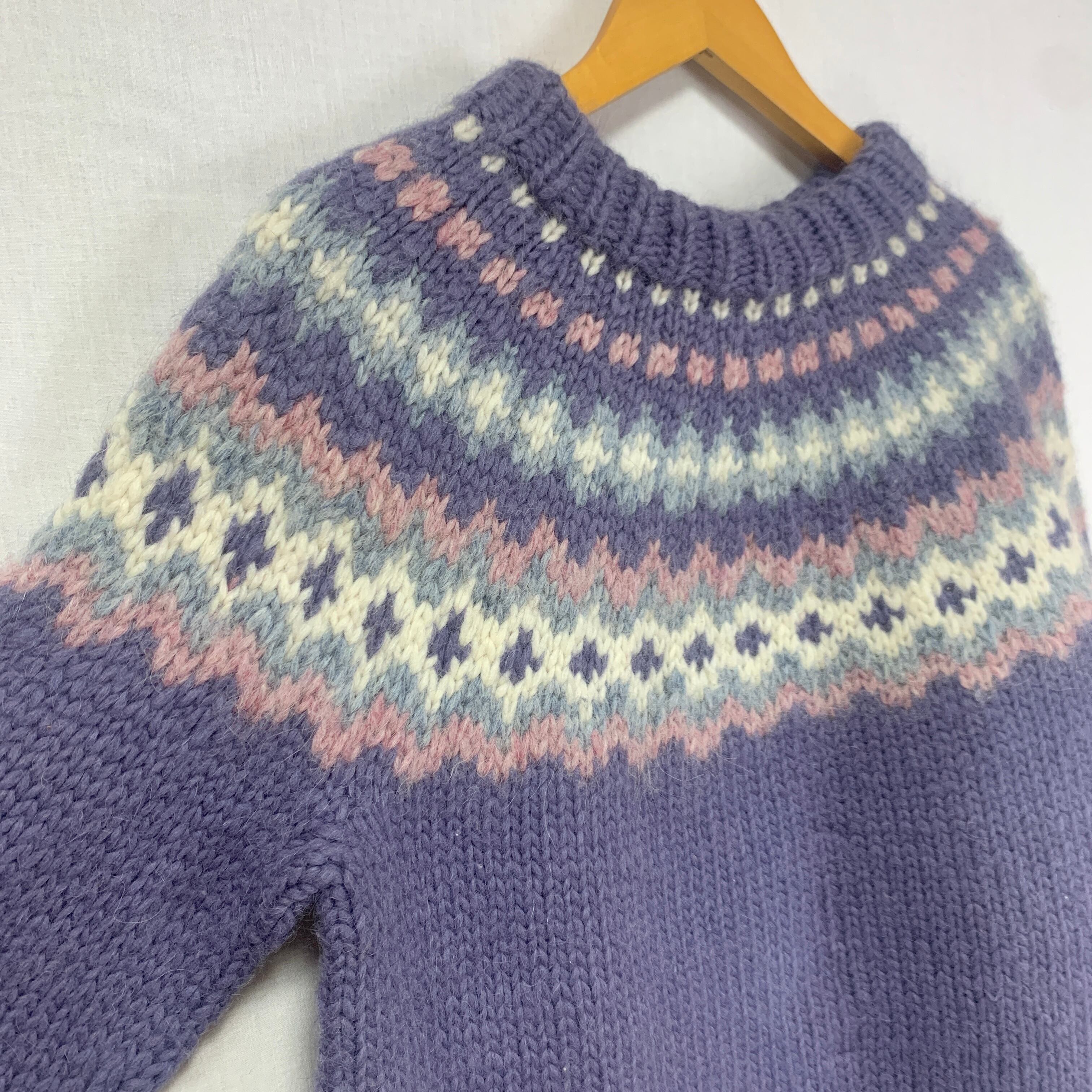 やさしいラベンダーカラーのフェアアイル柄ニット