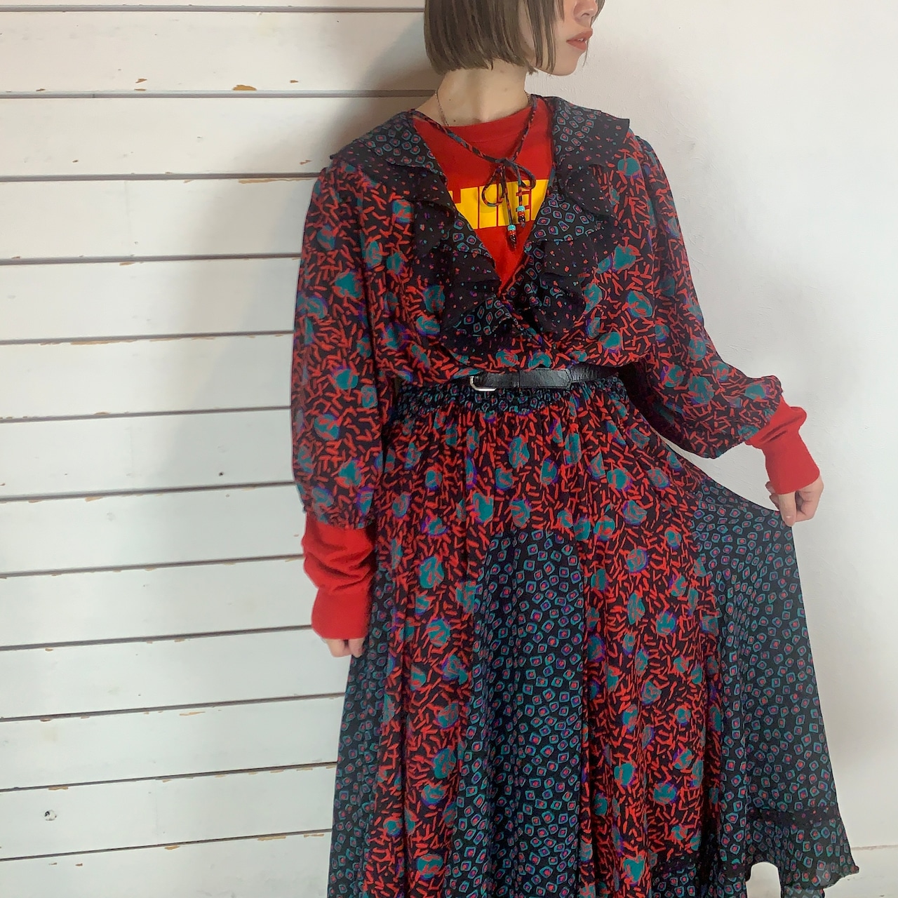 赤×黒をベースに様々なテキスタイルが素敵なsusan freisのワンピース